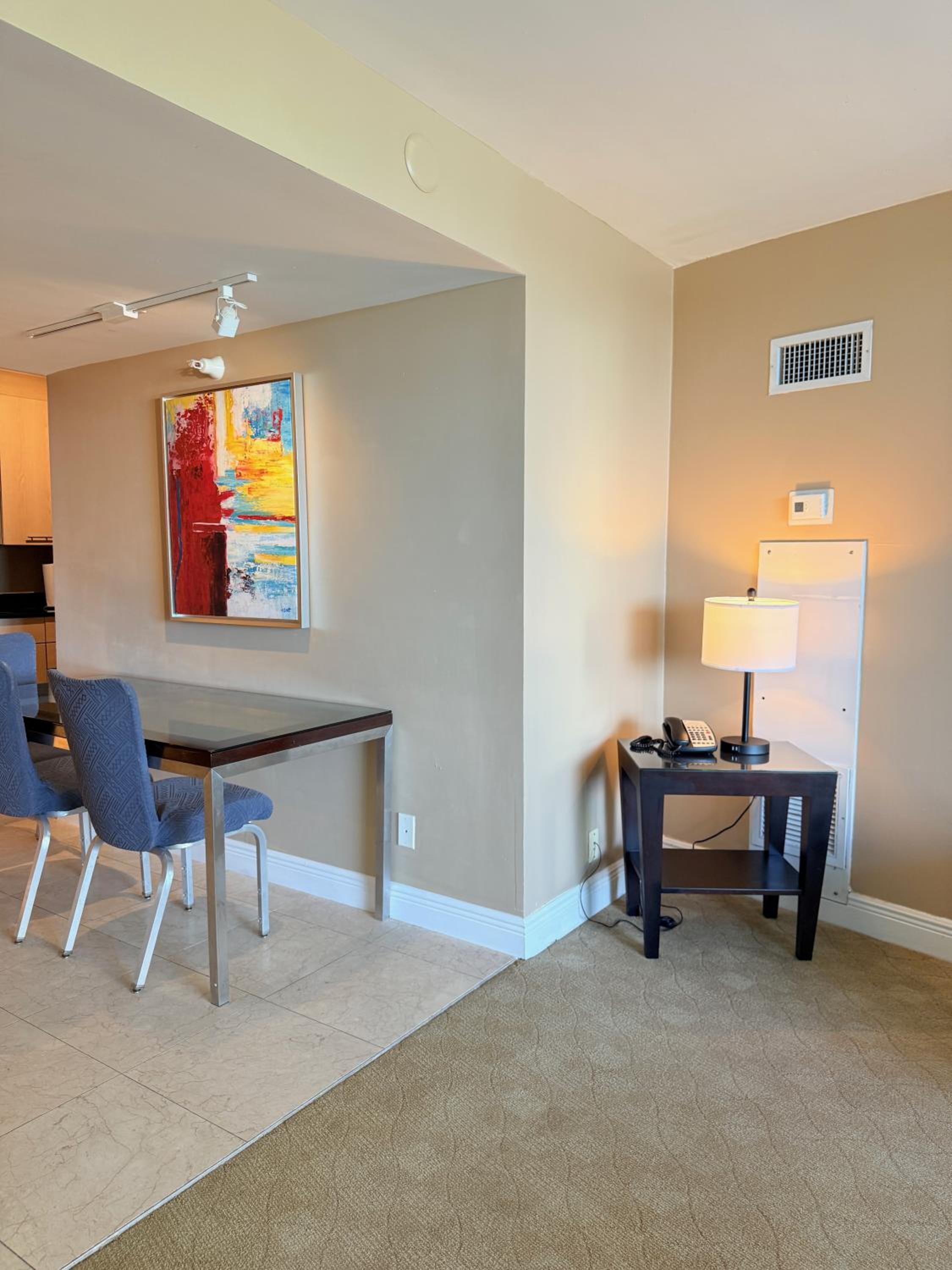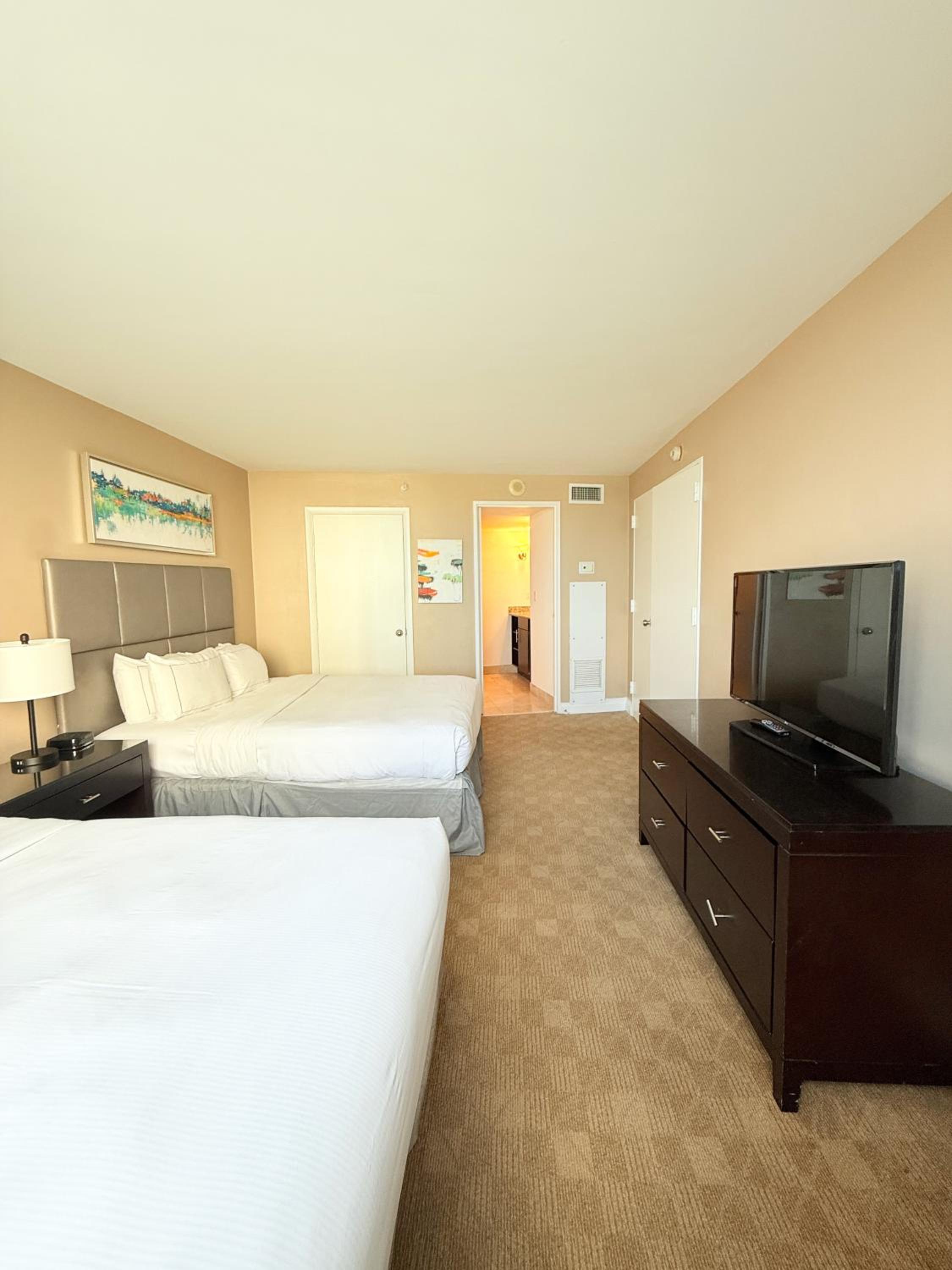 Our spacious, air-conditioned condos offer a perfect getaway with one bedroom, a modern bathroom, and a cozy dining area. Meals are a breeze with a fully equipped kitchenette featuring a microwave, fridge, and stovetop.