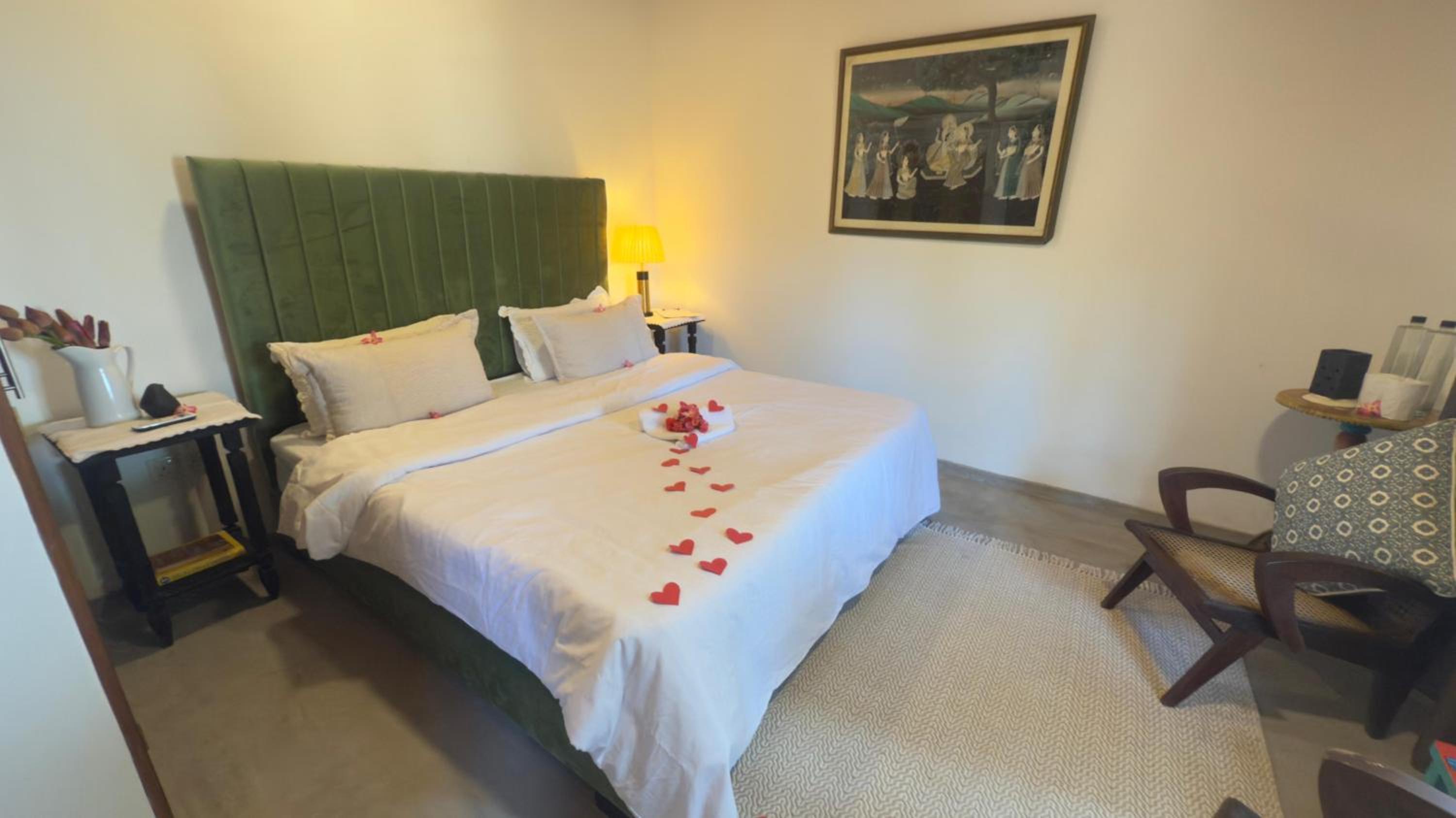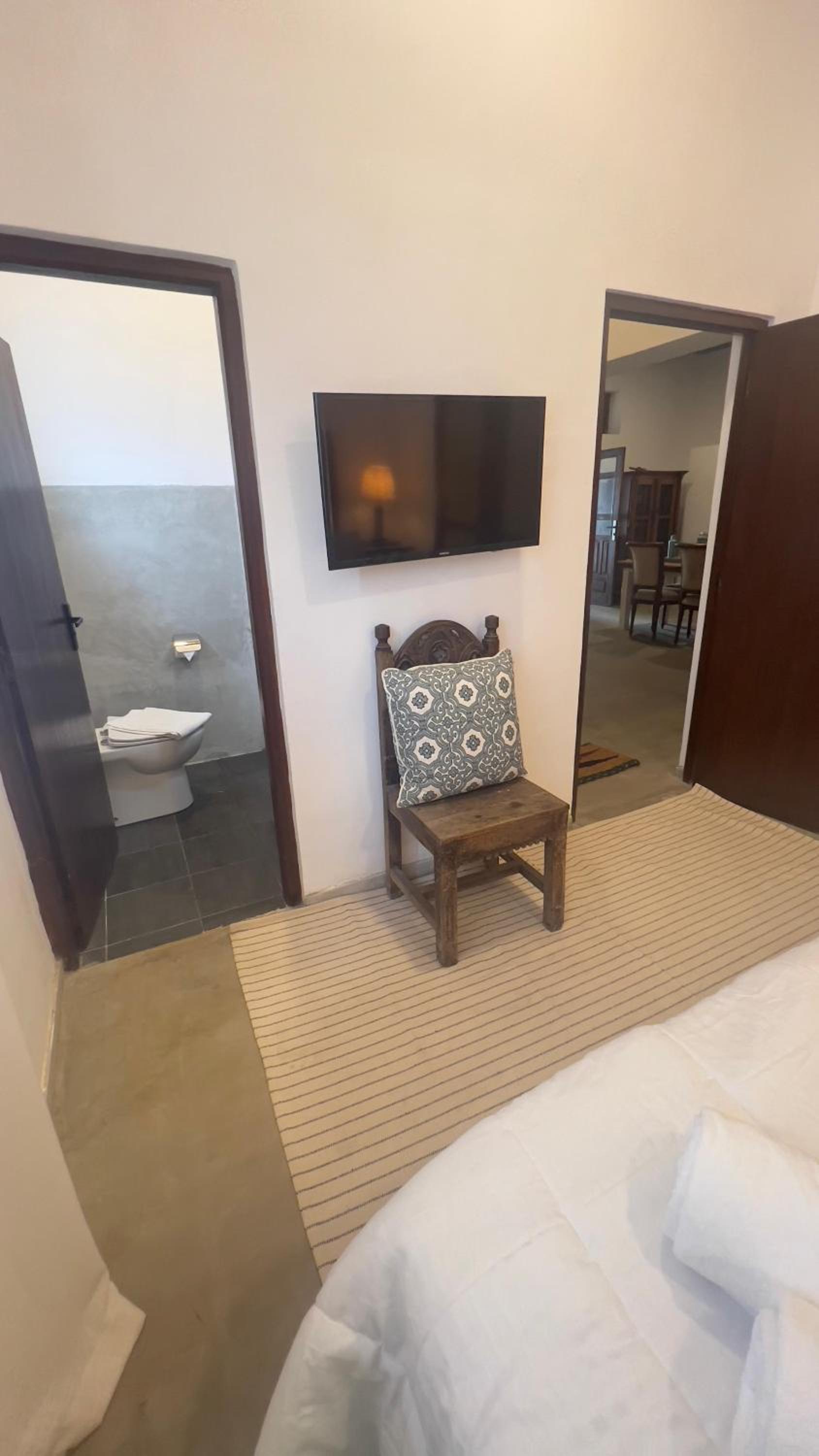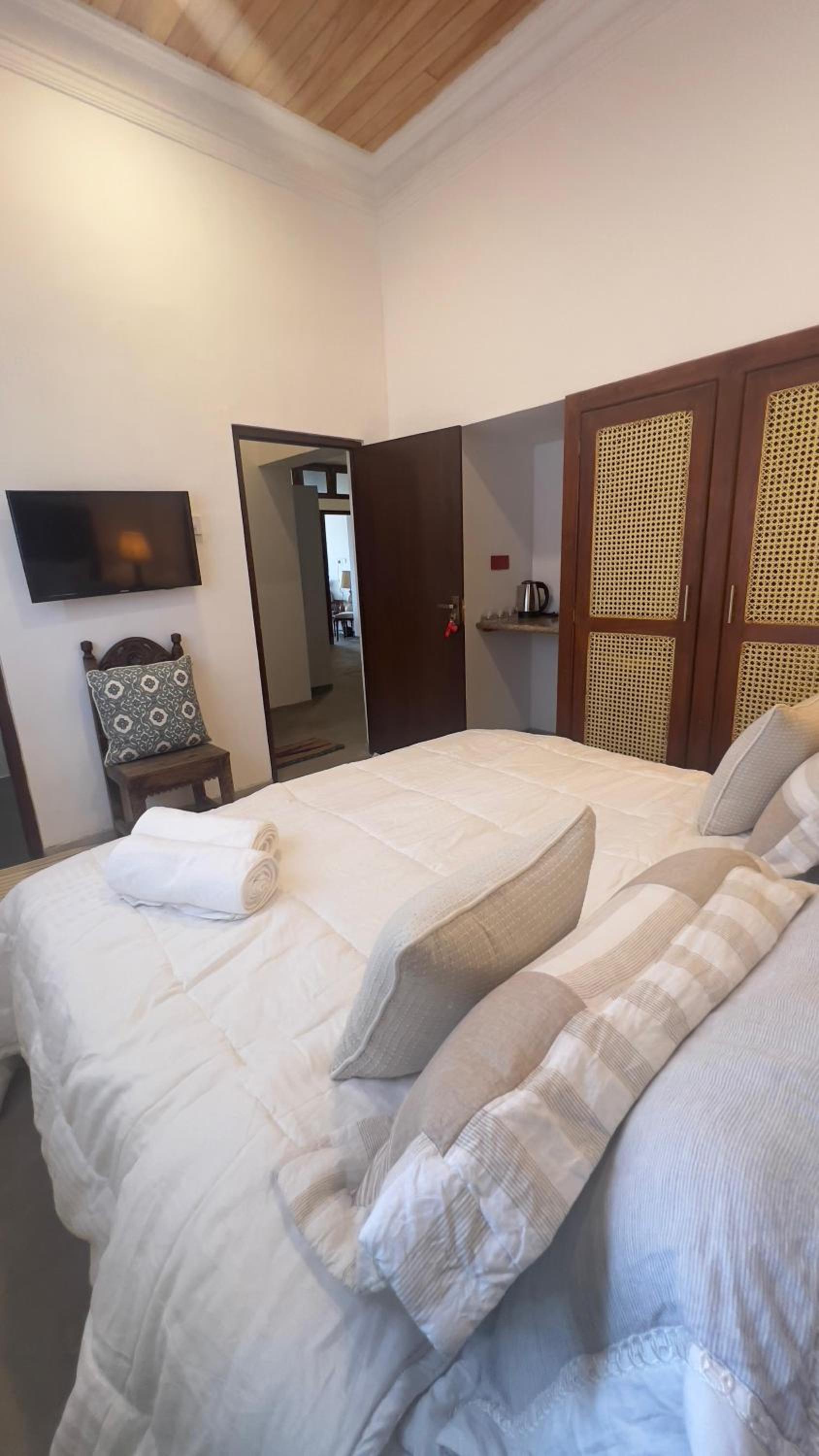Aircon in our bedroom, comfortable bed, good wardrobe space and lots of hot water in the en suite shower. Kettle. Meals delicious and with 5-star service (thank you Robert!). Manager Sharna collected us from the station and made our stay a pleasure.