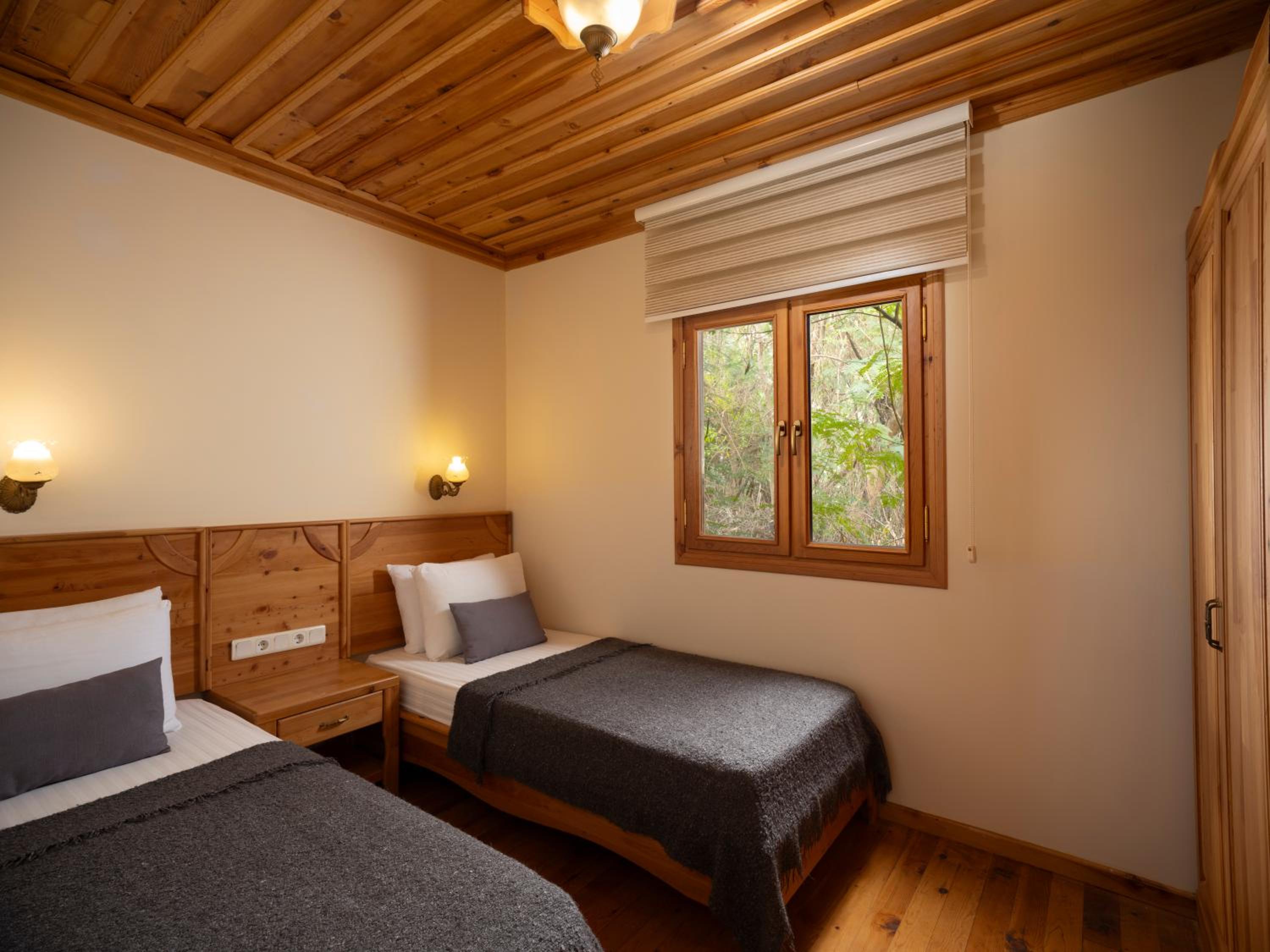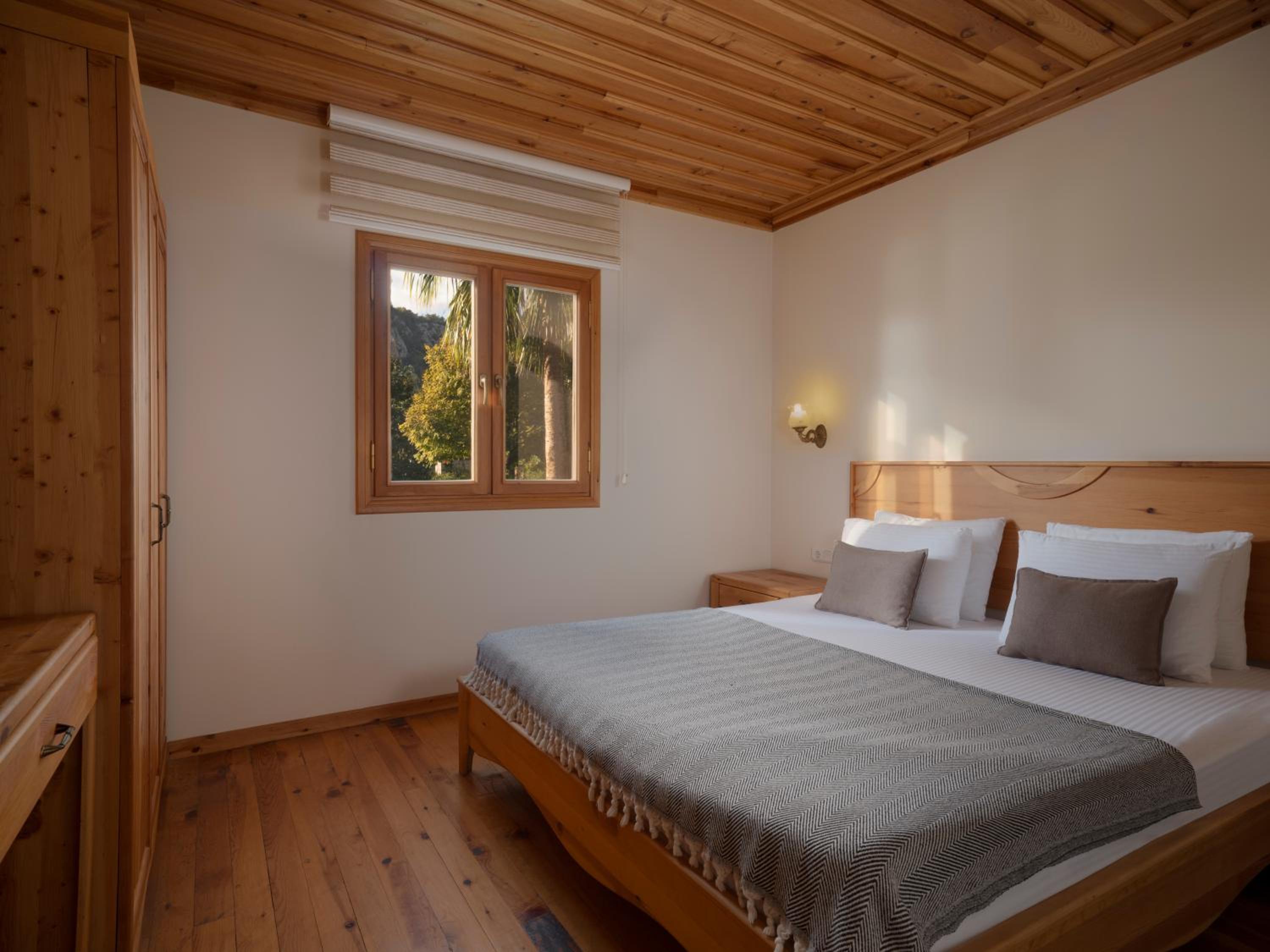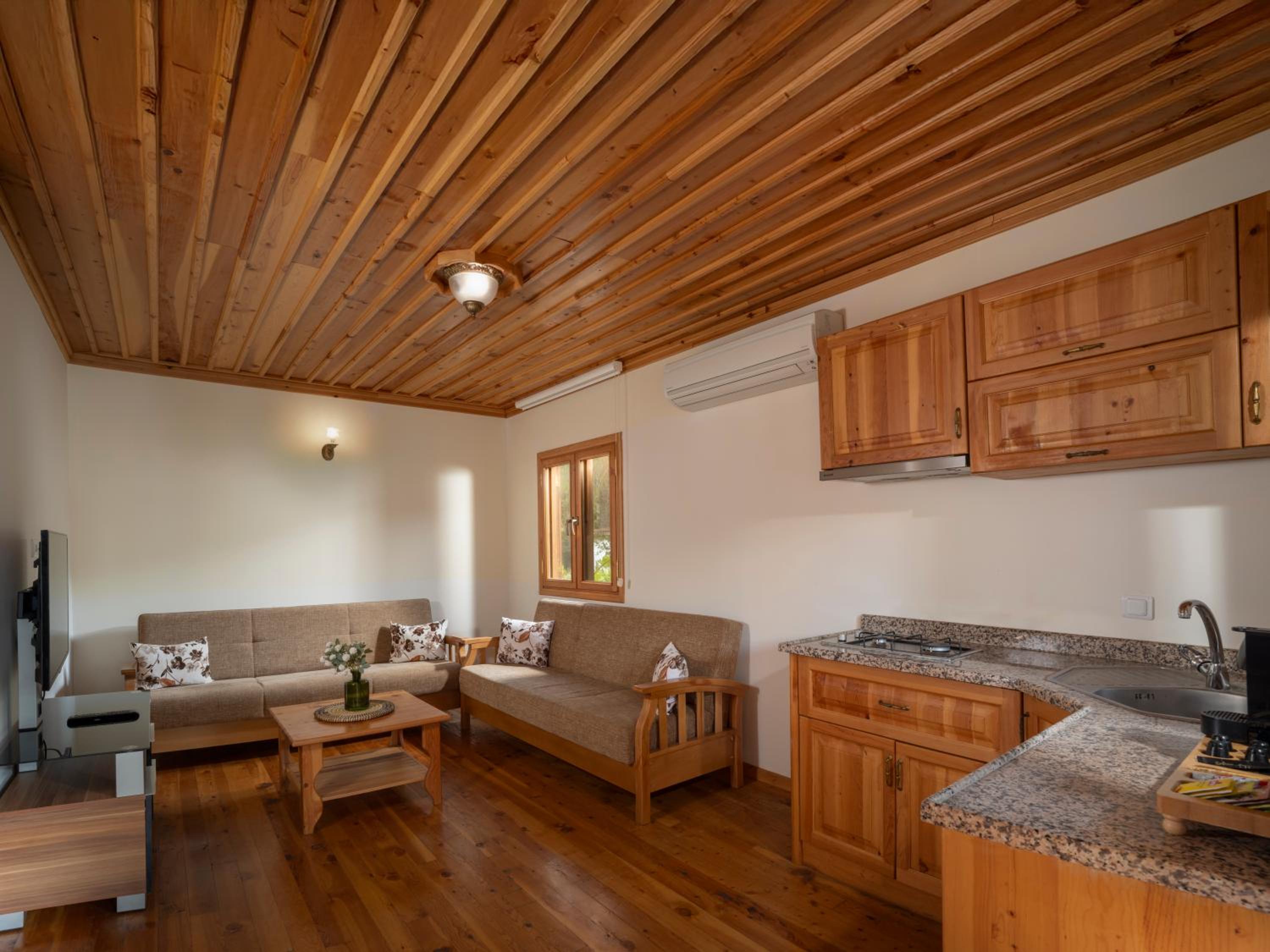 We found this hotel on a hike on the lykian way. We were very lucky to get an upgrade to one of the 2 Bedroom houses/ huts, with small kitchen, fridge and good tea/coffee faculities, sofa, and picnic-table to sit outside.