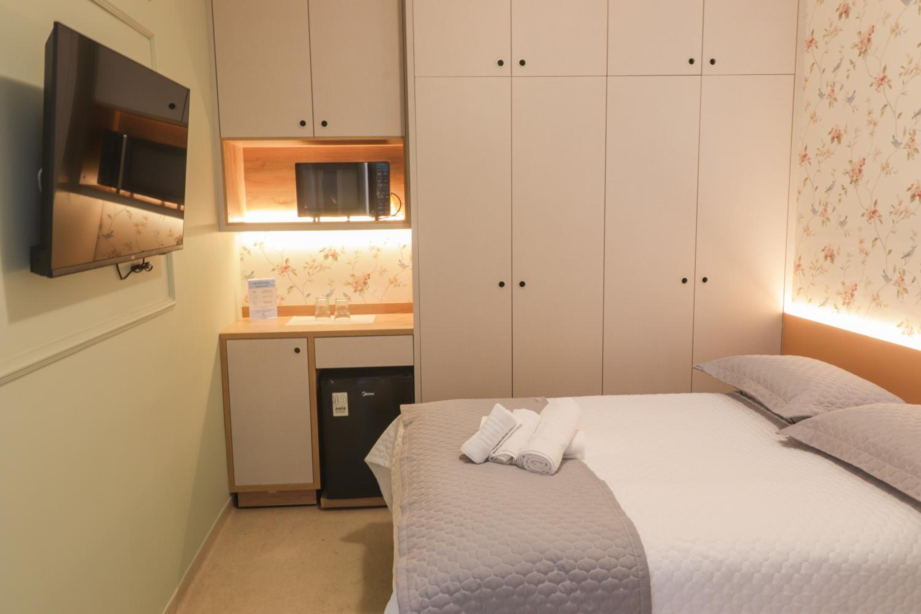 Não tem estacionamento. A TV pegou apenas a TV aberta. Não há serviço de refeições no quarto.