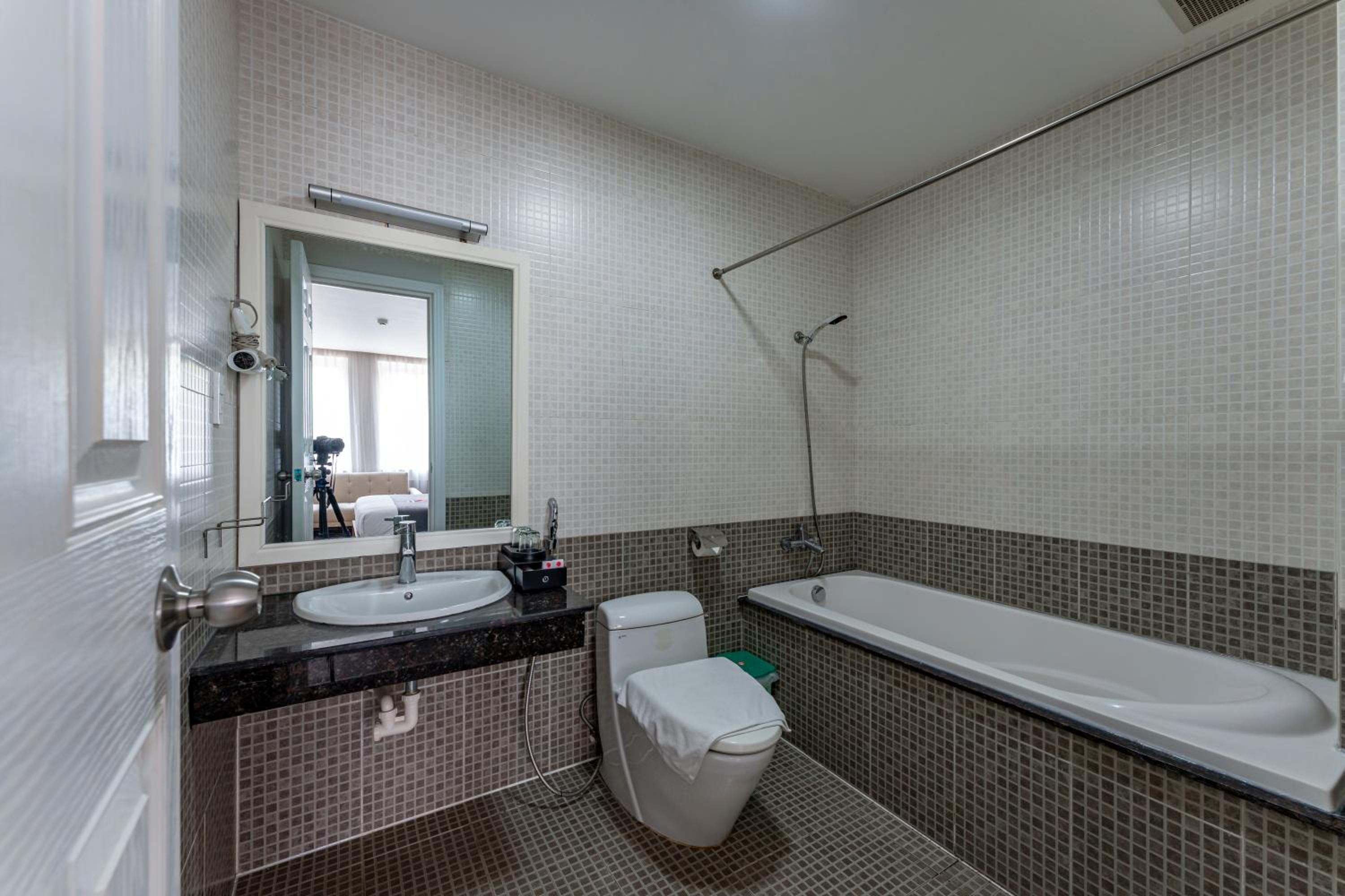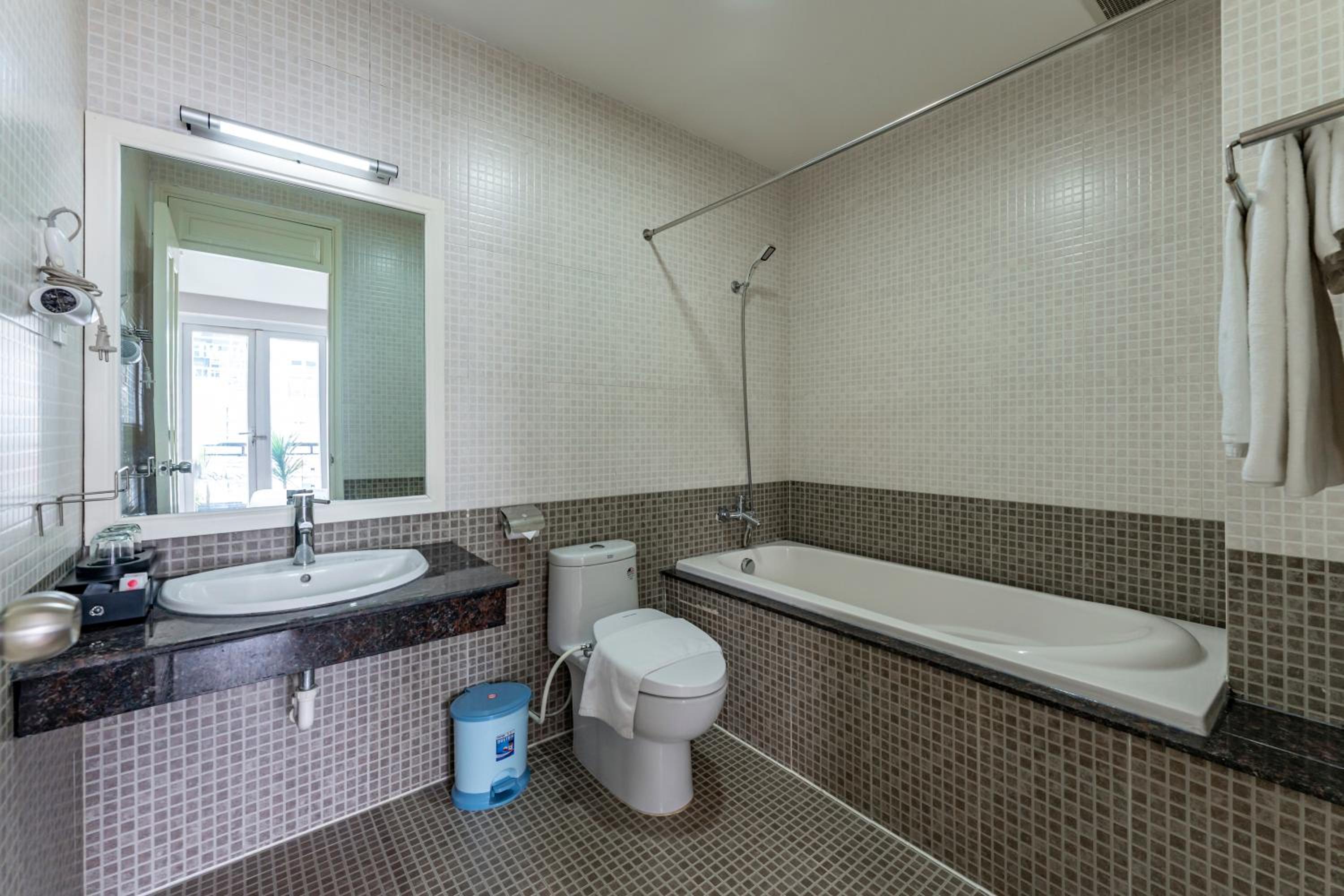 Giá phòng không tương xứng với dịch vụ. Không có nhân viên vảo vệ. Khăn tăm cũ và rách một mảng to mà họ vẫn cho khách sử dụng. Tôi còn thấy họ để khăn tắm trên sàn nhà. Gối quá cao. Ấm siêu tốc kêu rất to.