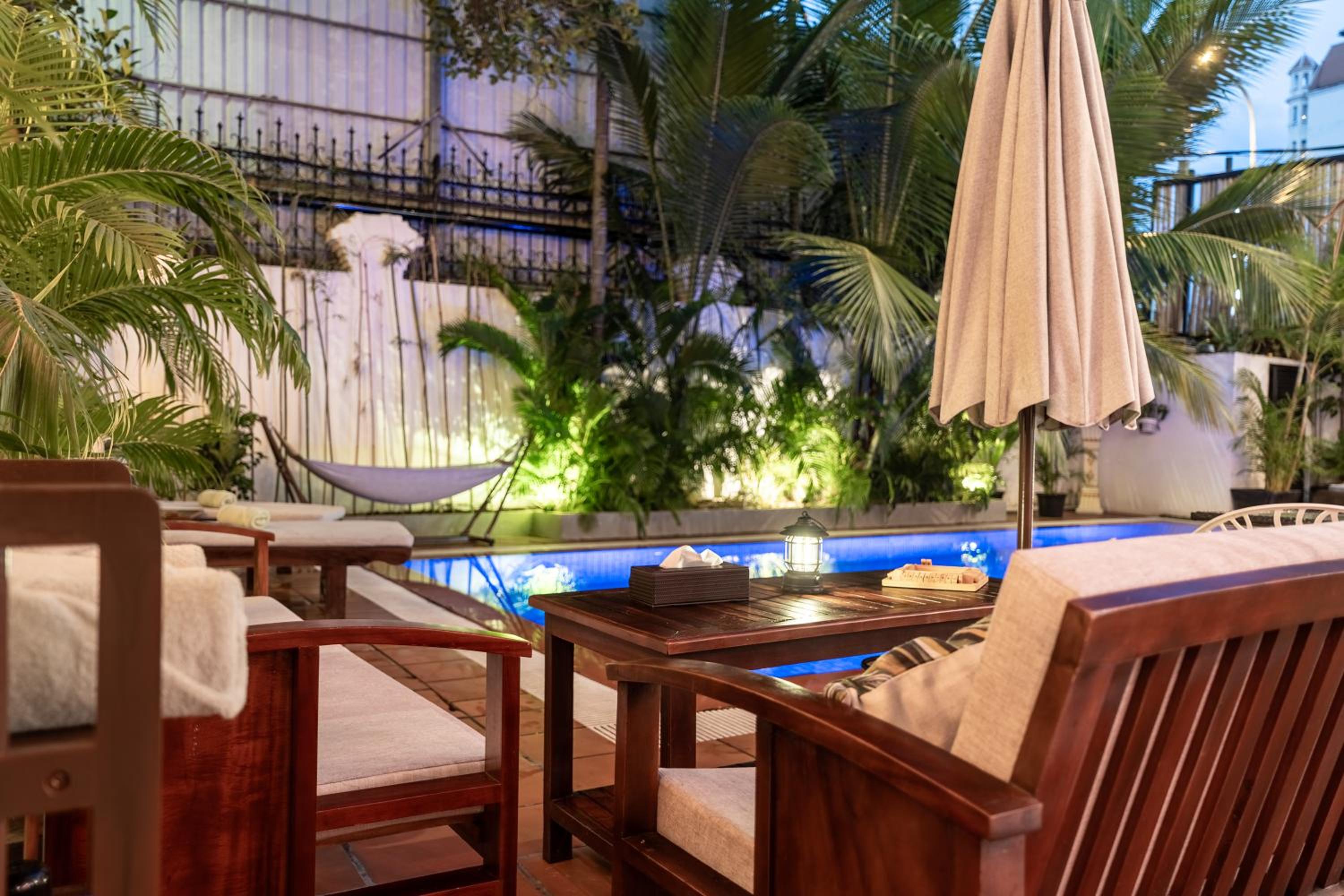 Charmant hotel en plein coeur de Phnom Penh, à deux pas du Palais Royal, un accueil attentif et une cuisine délicieuse au bord de la piscine. Nous recommandons chaleureusement !