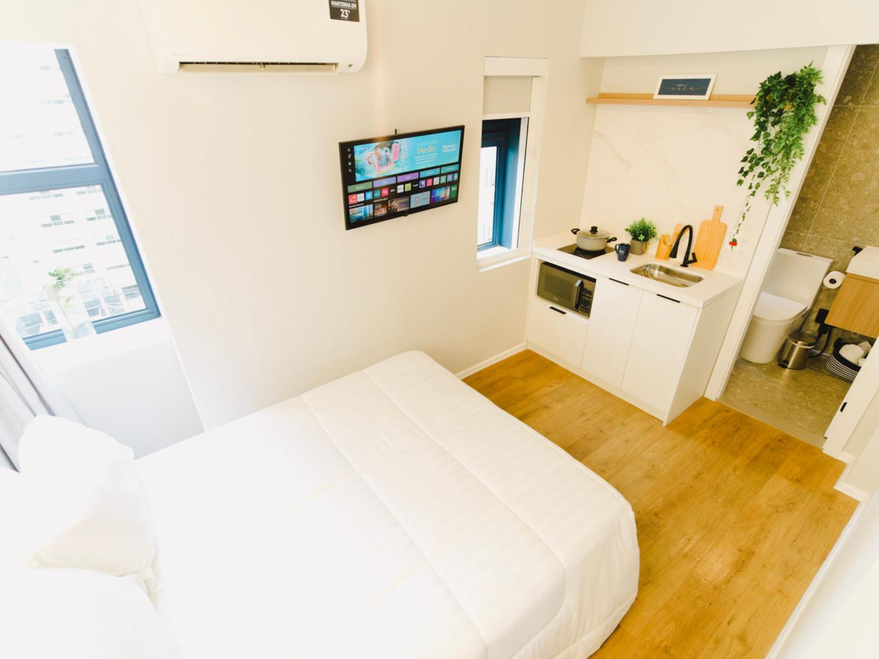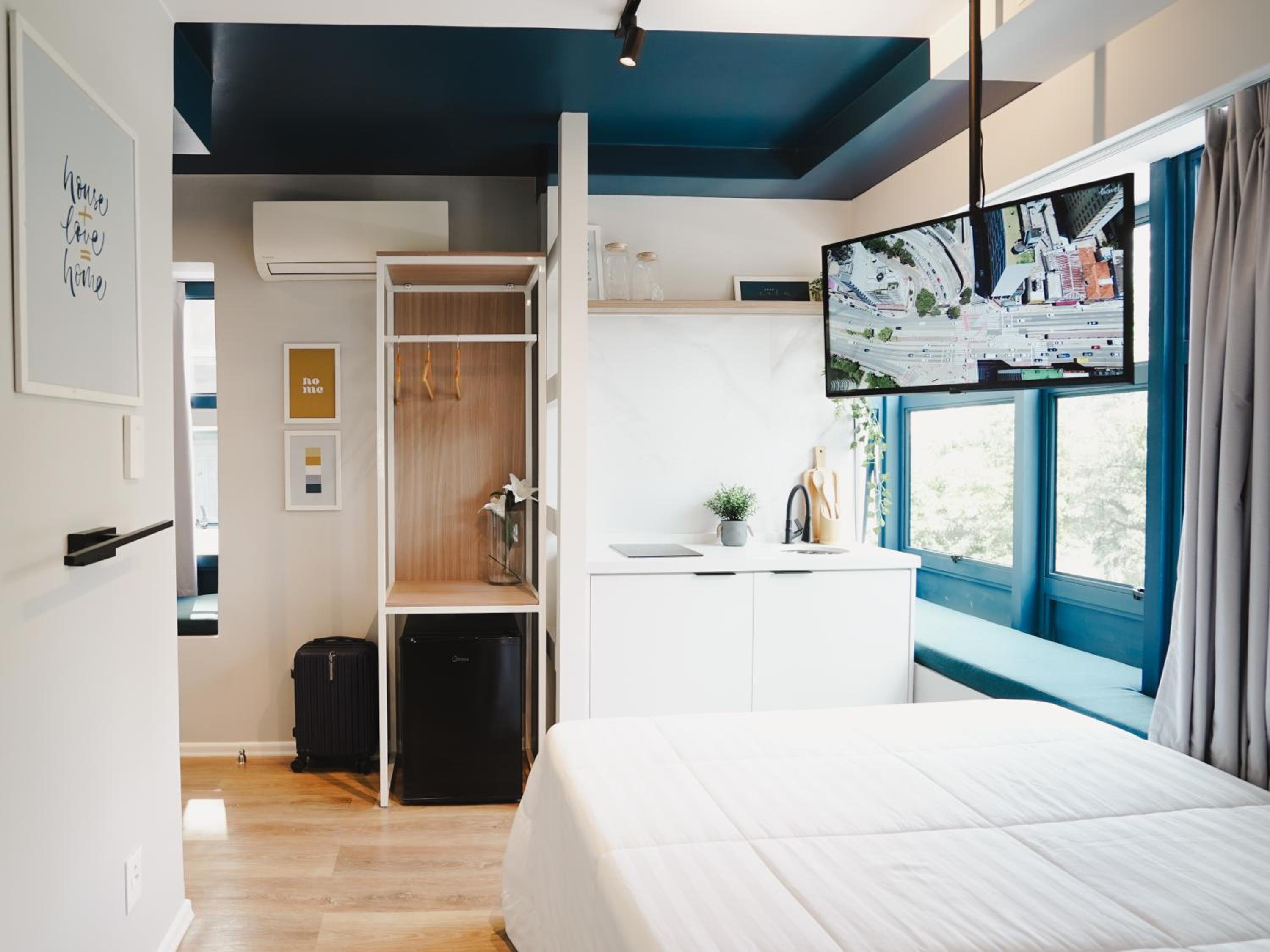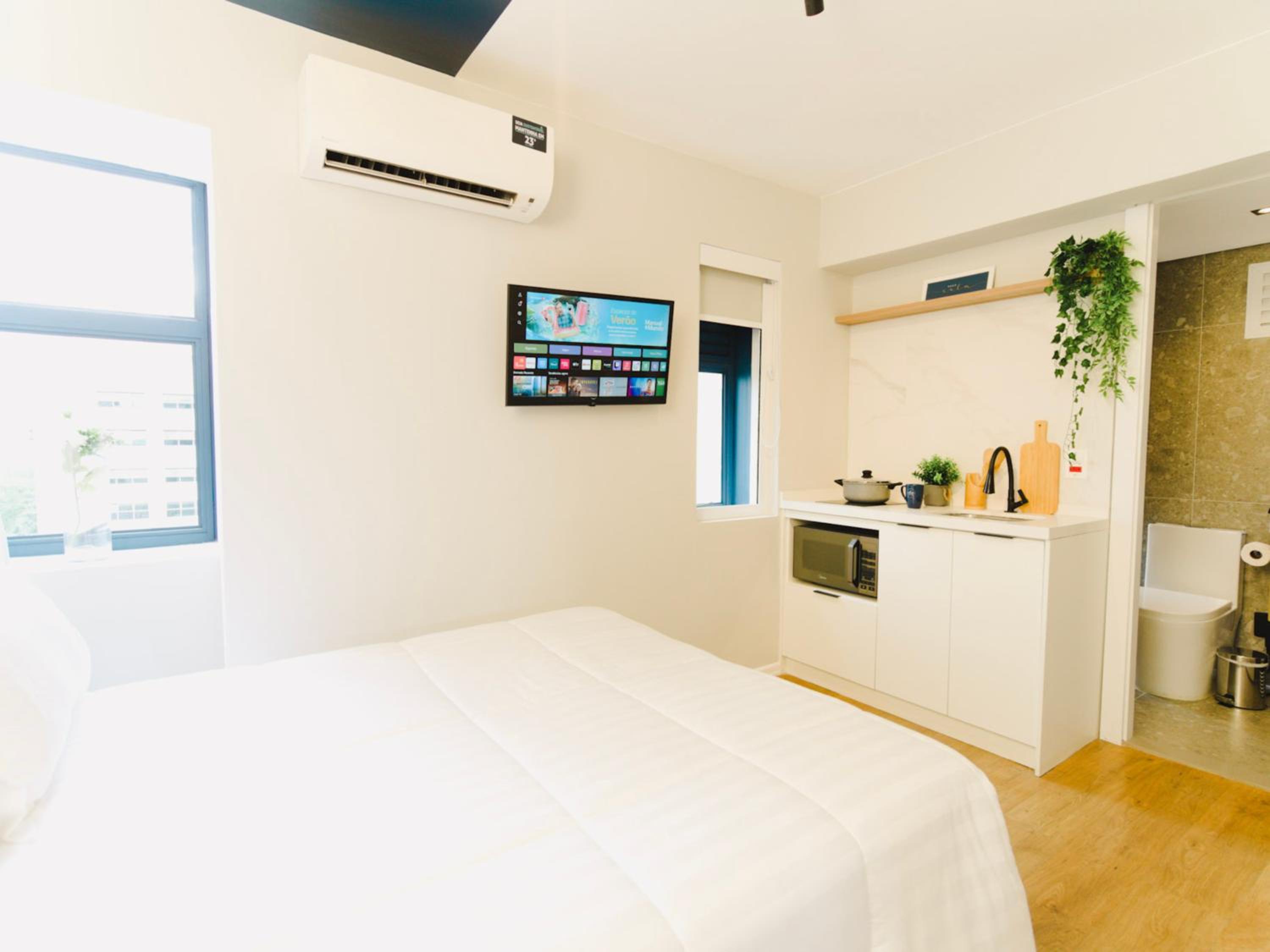 Modern Comfort: Each room is equipped with necessary amenities including air conditioning, a flat-screen TV, and a fully-equipped kitchenette for a home-like stay.