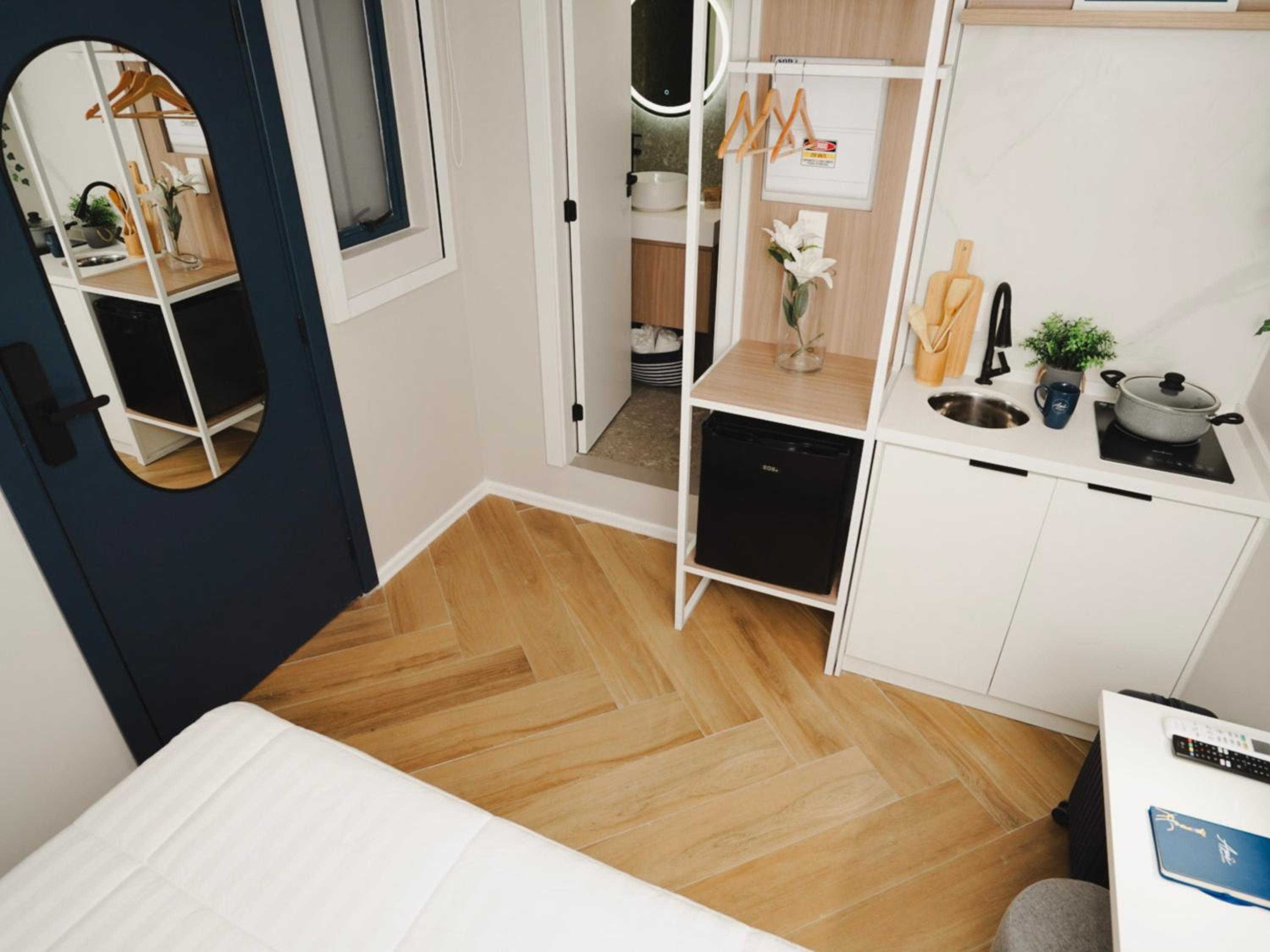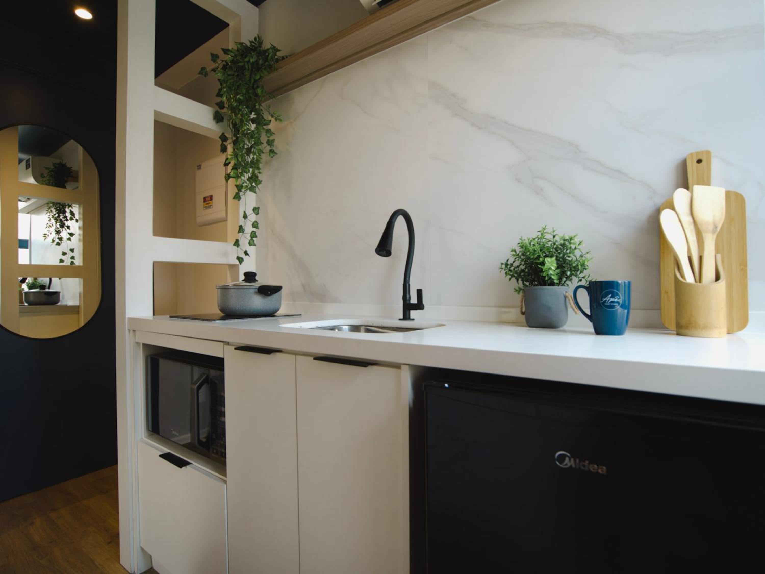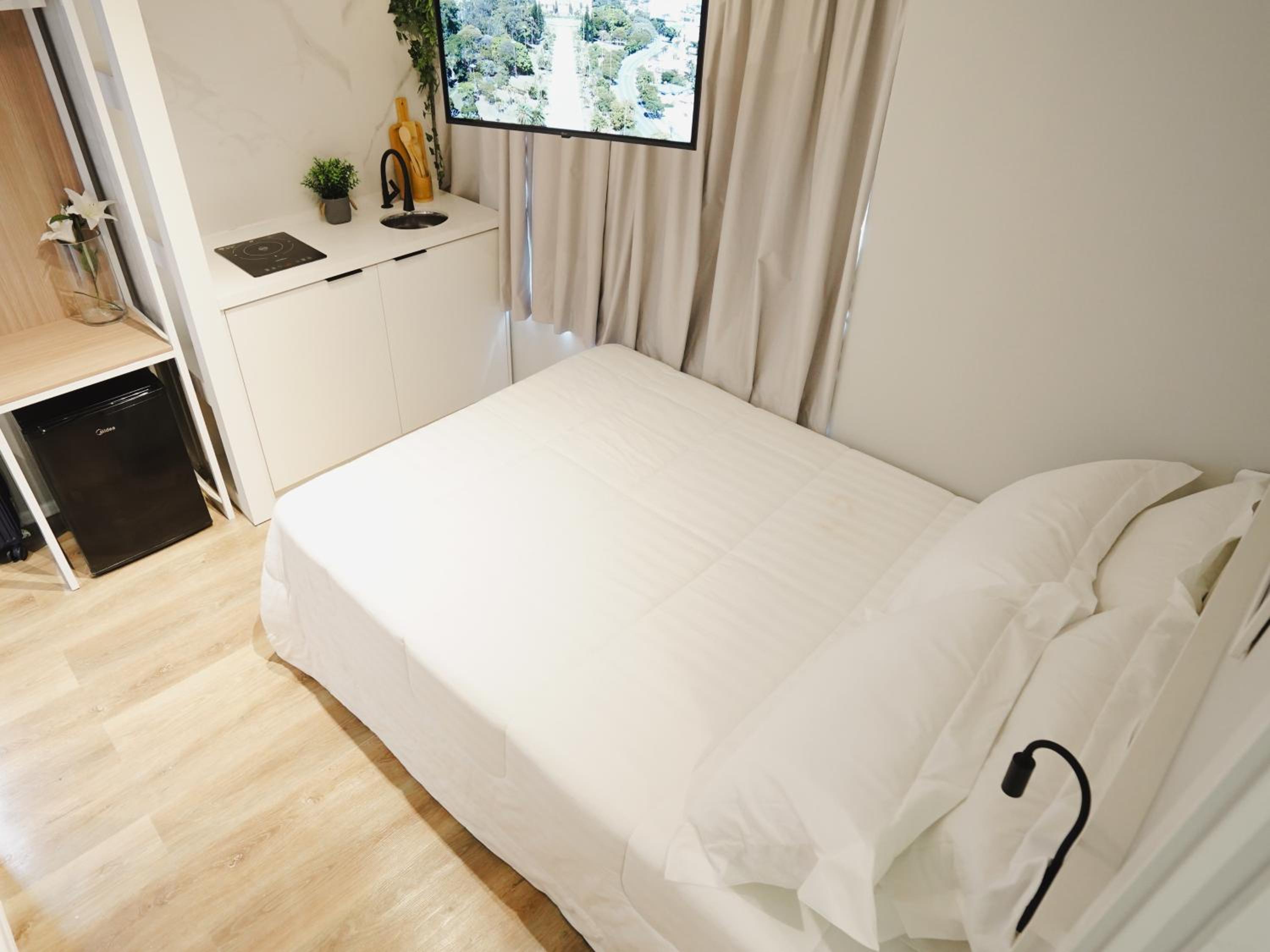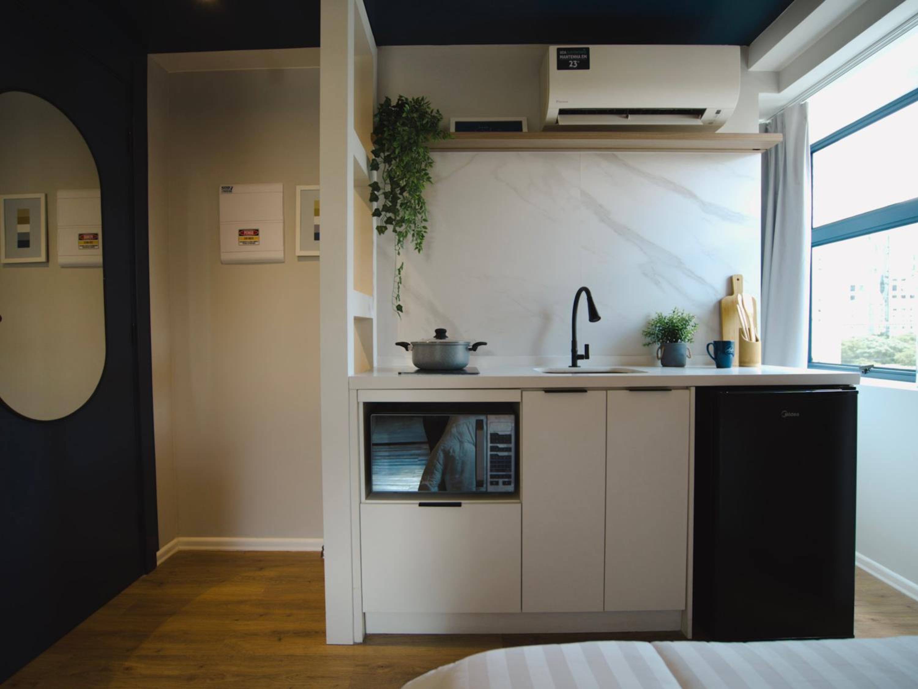 Modern Comfort: Each room is equipped with necessary amenities including air conditioning, a flat-screen TV, and a fully-equipped kitchenette for a home-like stay.