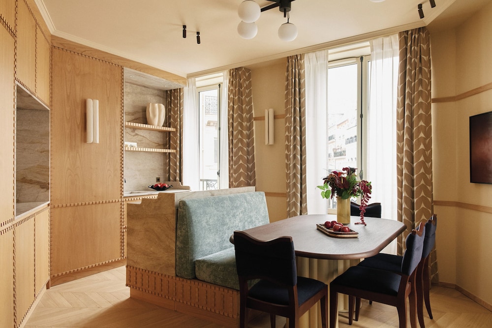 Indulge in one of our 13 uniquely decorated rooms, each featuring a cozy fireplace and Smart television. Sink into premium pillowtop beds, and take advantage of fully equipped kitchens with refrigerators and ovens for a homely touch in your Parisian getaway.