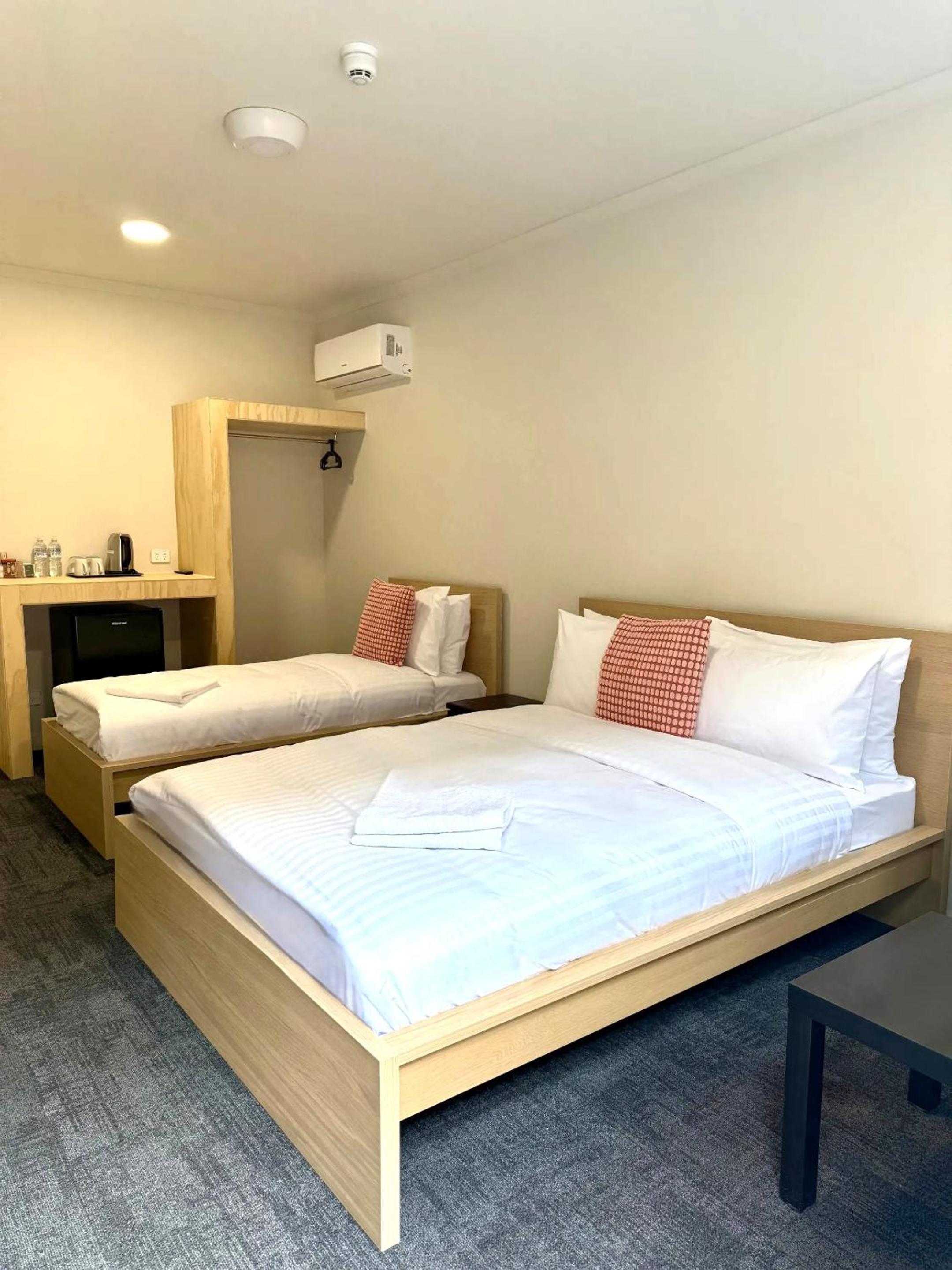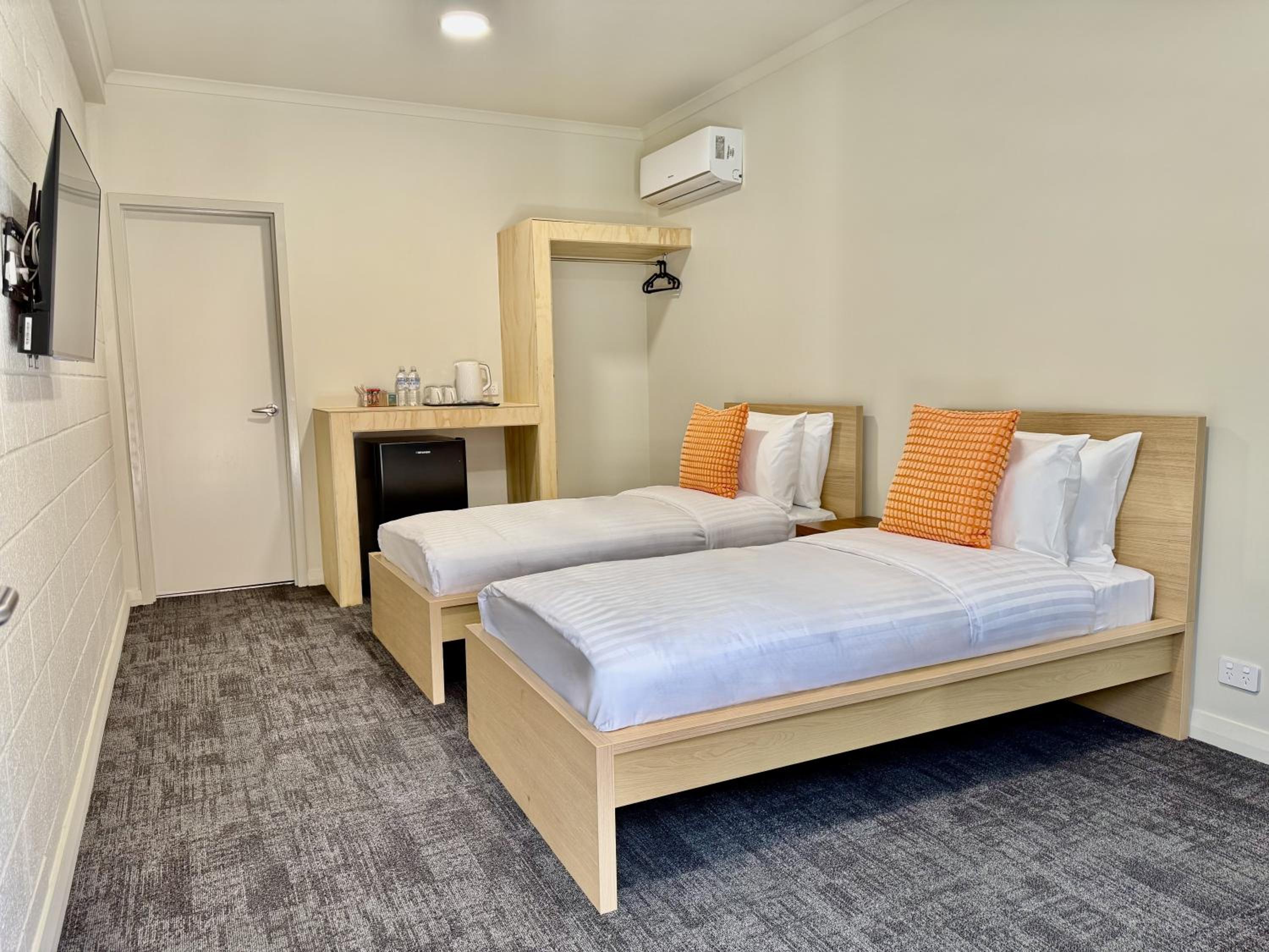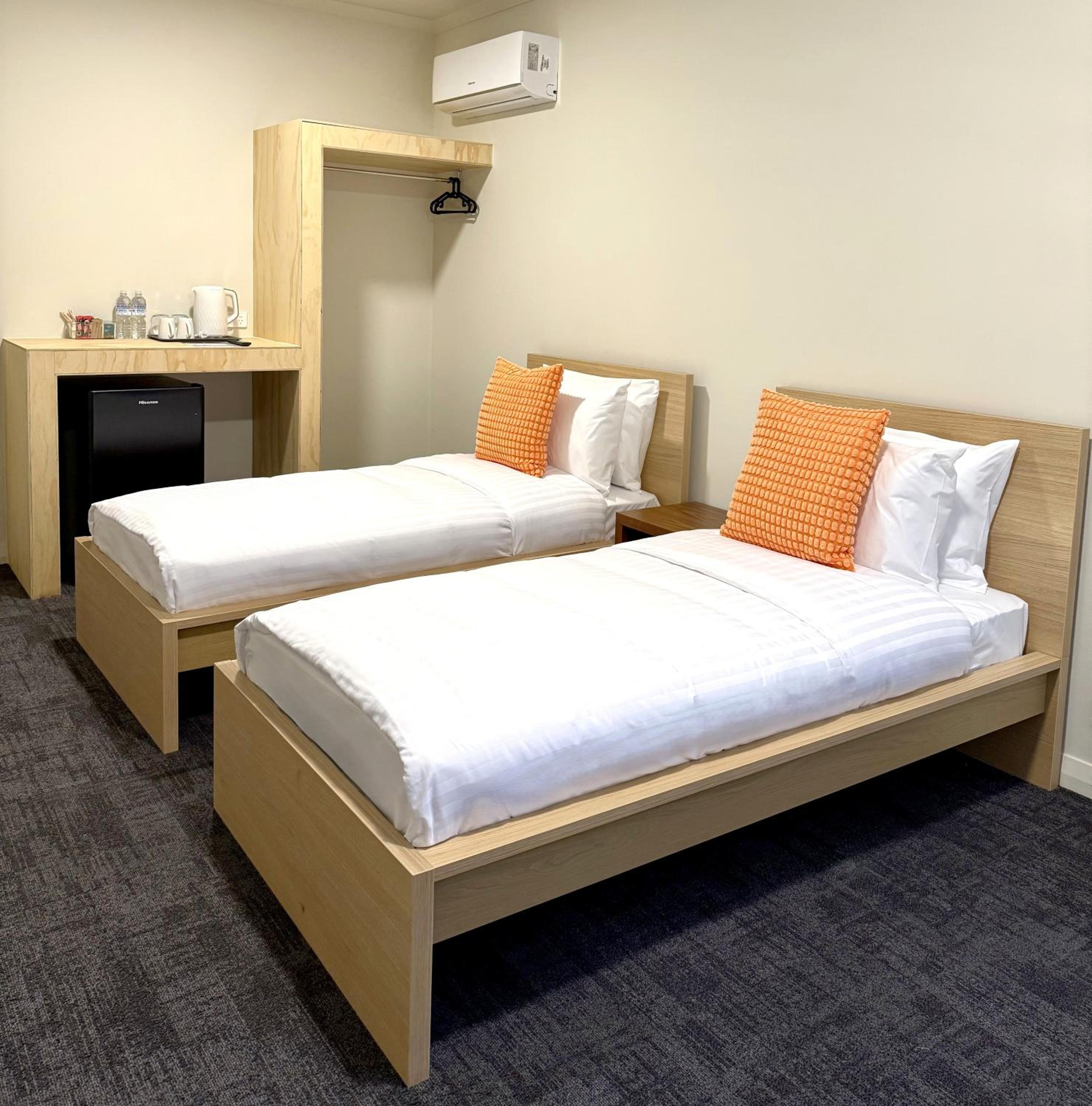 Our rooms feature contemporary decor, complete with air conditioning, flat-screen TVs, and private bathrooms stocked with essential amenities like hairdryers and electric tea pots to ensure you feel right at home.