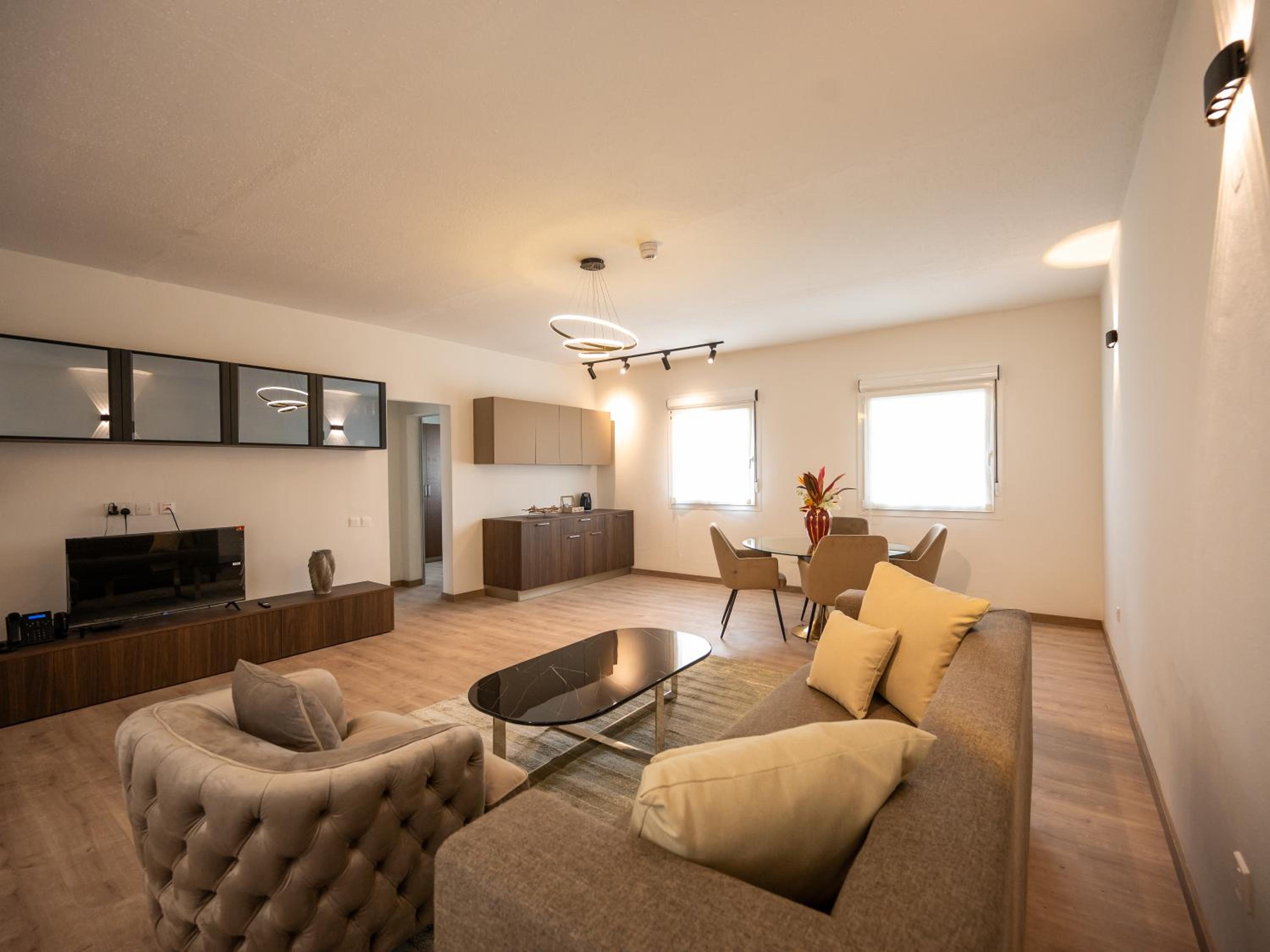 Indulgent Accommodations: Our air-conditioned rooms are designed for your comfort, featuring elegant decor, a flat-screen TV, and complimentary toiletries. Enjoy privacy and convenience with a personal bathroom and cozy closet space.