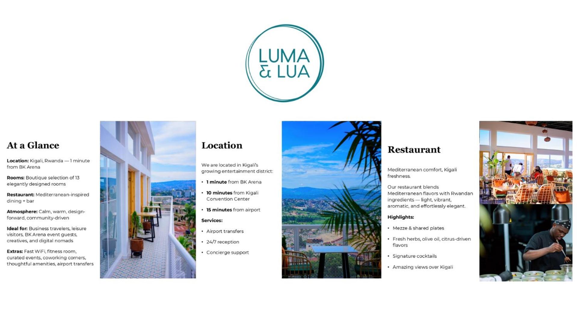 Discover the perfect blend of luxury and comfort at Luma & Lua Boutique Hotel in the heart of Kigali.