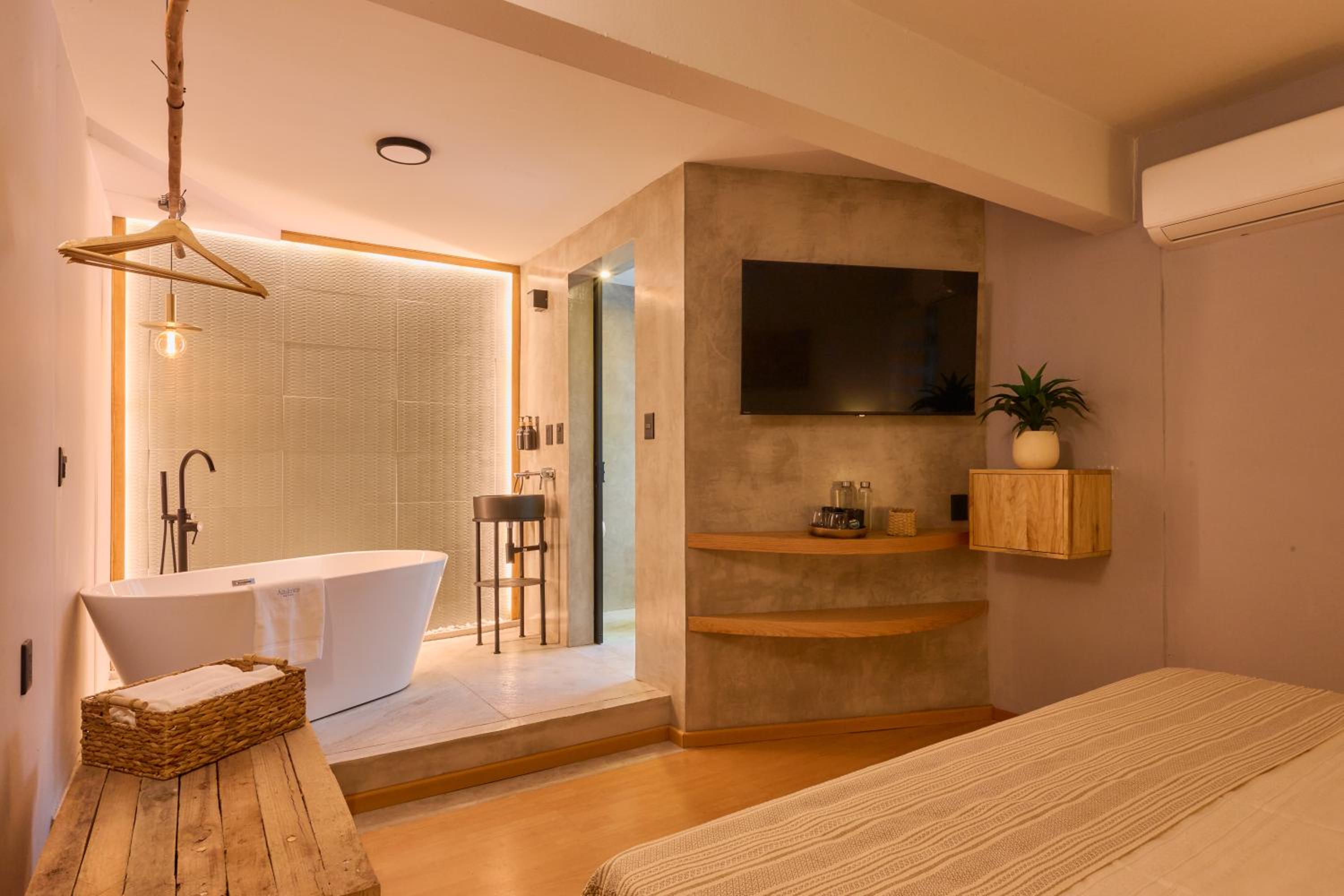 El personal muy amable, nos hicieron sentir muy bien desde que llegamos. La ubicación es perfecta, en el centro, ideal para pasear y descubrir la ciudad. El tamaño de la habitación está muy bien. La habitación complementaria viene genial para dejar maletas o trabajar sin molestar a quien esté durmiendo. El baño me encantó, la iluminación invita a la relajación. La nota escrita a mano con recomendaciones me pareció un detallazo, así como los bombones que dejan en la entrada. Lo recomiendo 100 € si se visita Oaxaca.