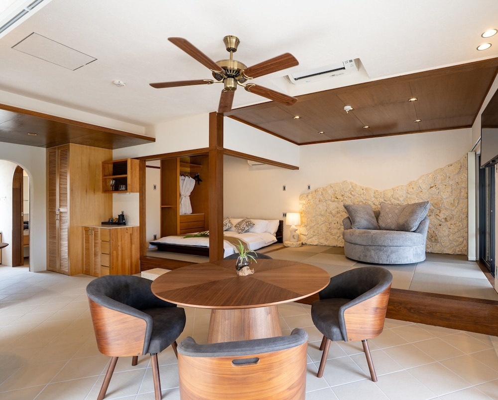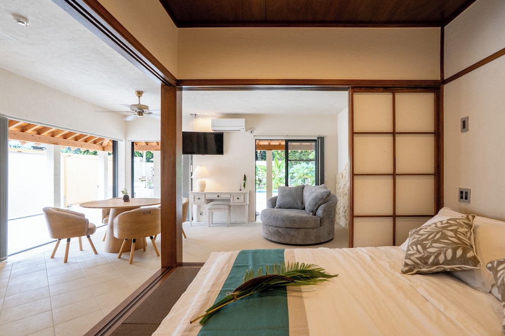 Modern Amenities: Our spacious guestrooms feature private pools and furnished patios, ensuring a tranquil retreat. Stay connected with complimentary Wi-Fi while enjoying the convenience of in-room kitchenettes.