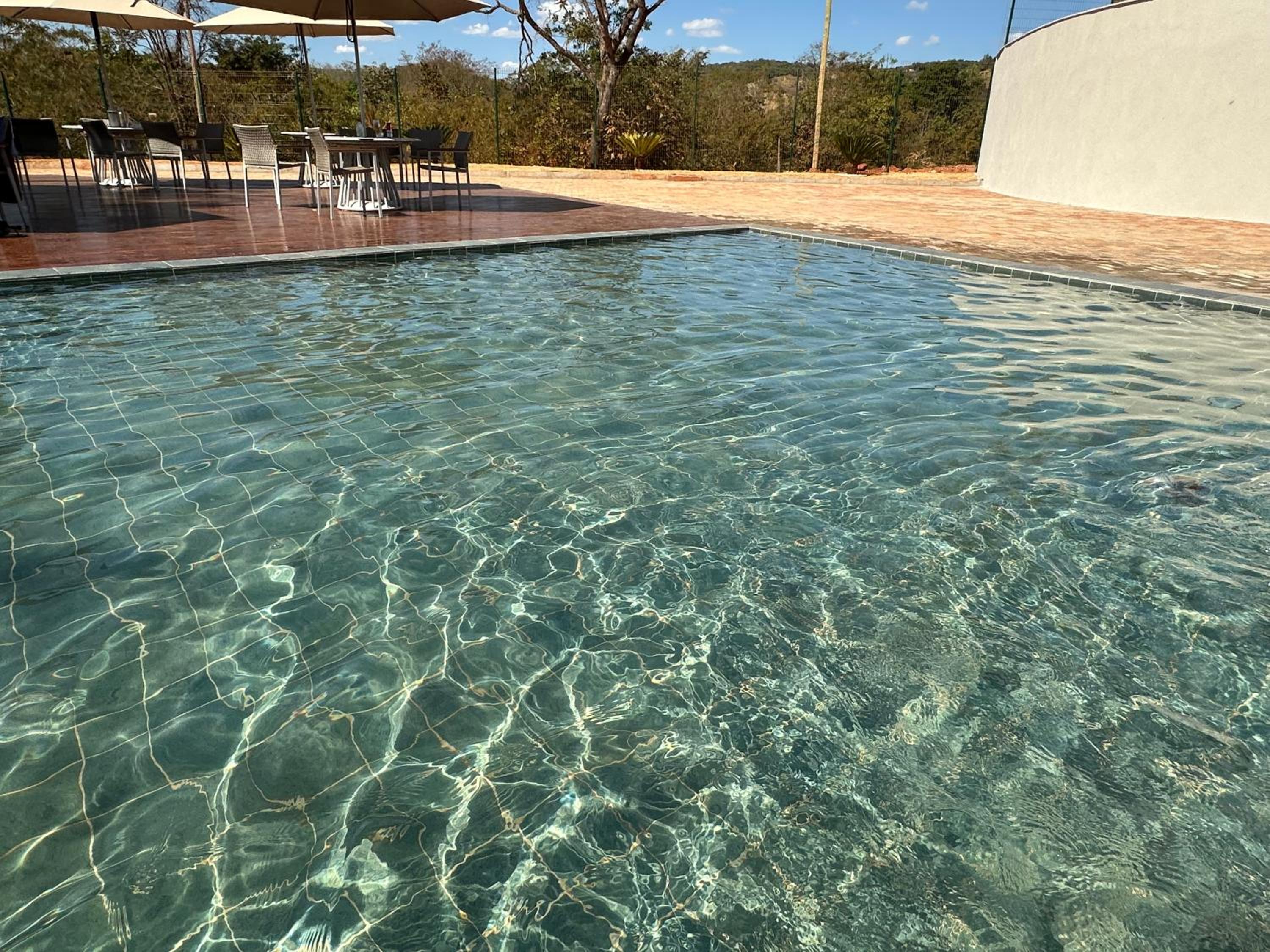 Poderiam melhorar a limpeza da piscina. Havia lodo na escada e boiando na água.