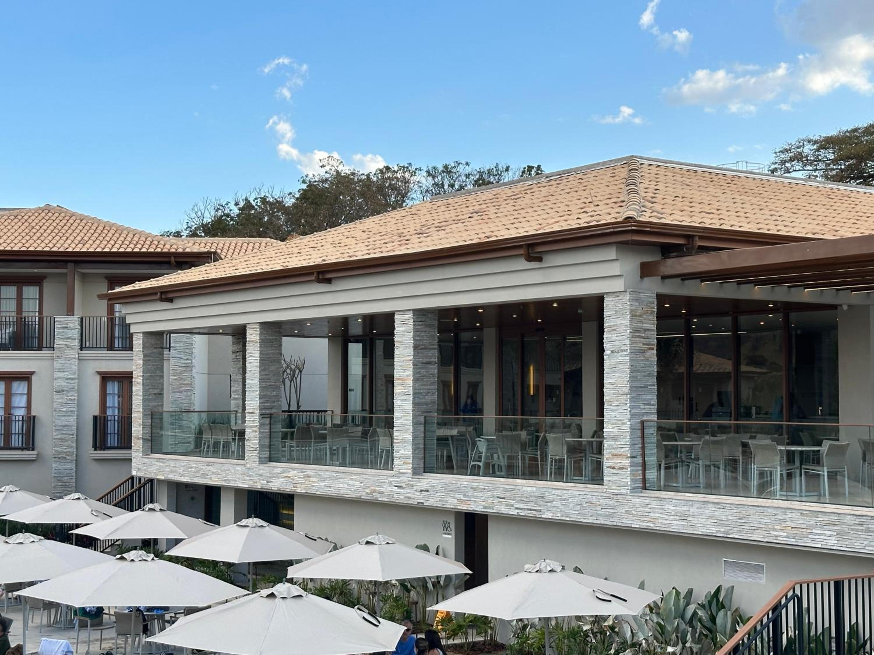 A limpeza do banheiro deixou a desejar. A comida do restaurante ( la carte) precisa melhorar.