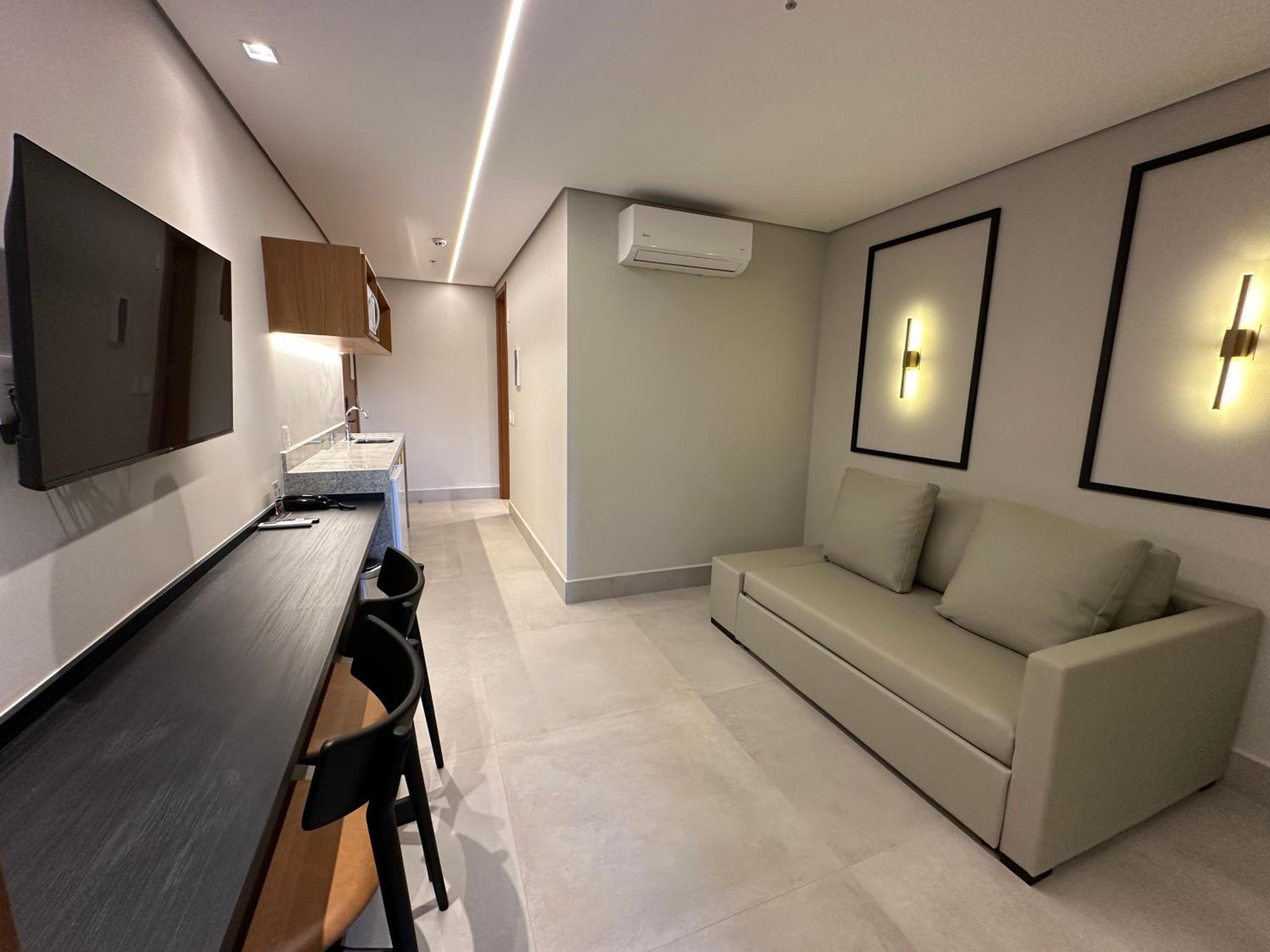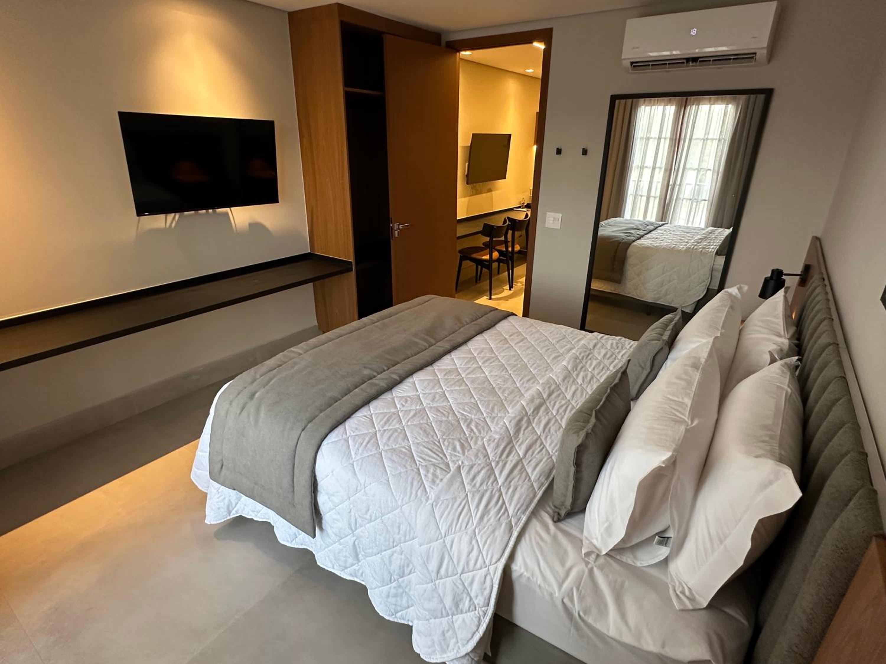 Cheguei e fique na fila do check in por 40 minutos . Poucos funcionários e despreparados . Liberou o apartamento e quando entramos não tinha realizado a limpeza do quarto com banheiro sujo e camas desarrumadas. Uma decepção .