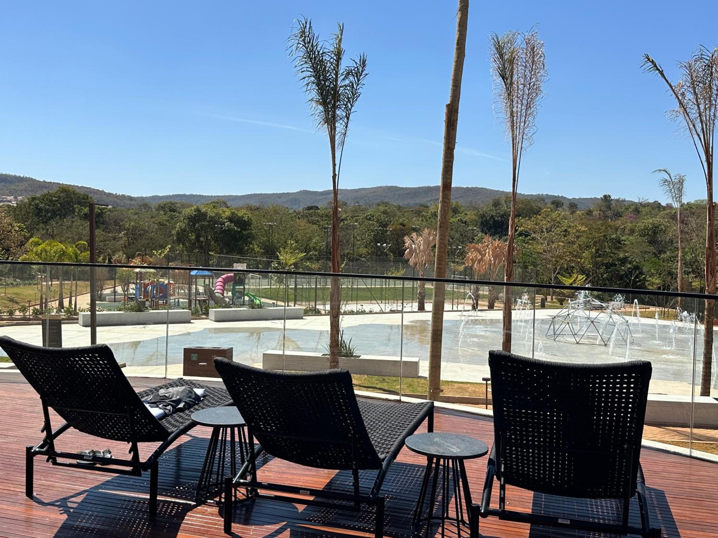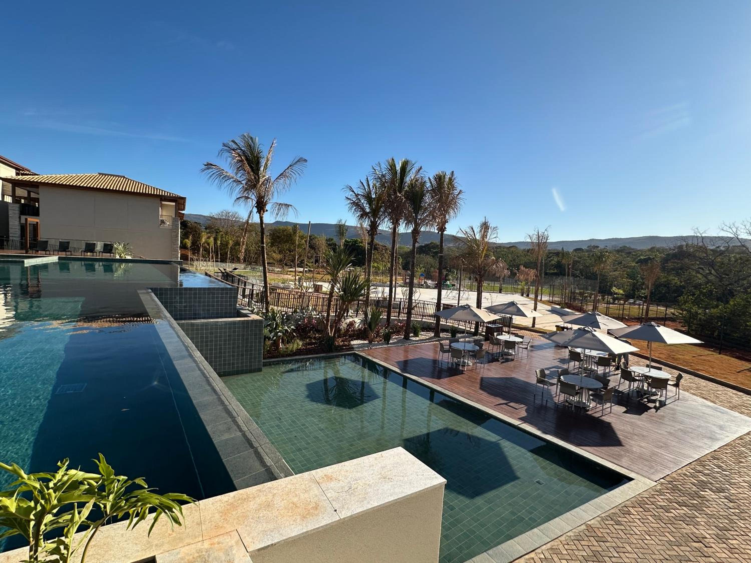 A área da Piscina nao tem muitas mesas e cadeiras.