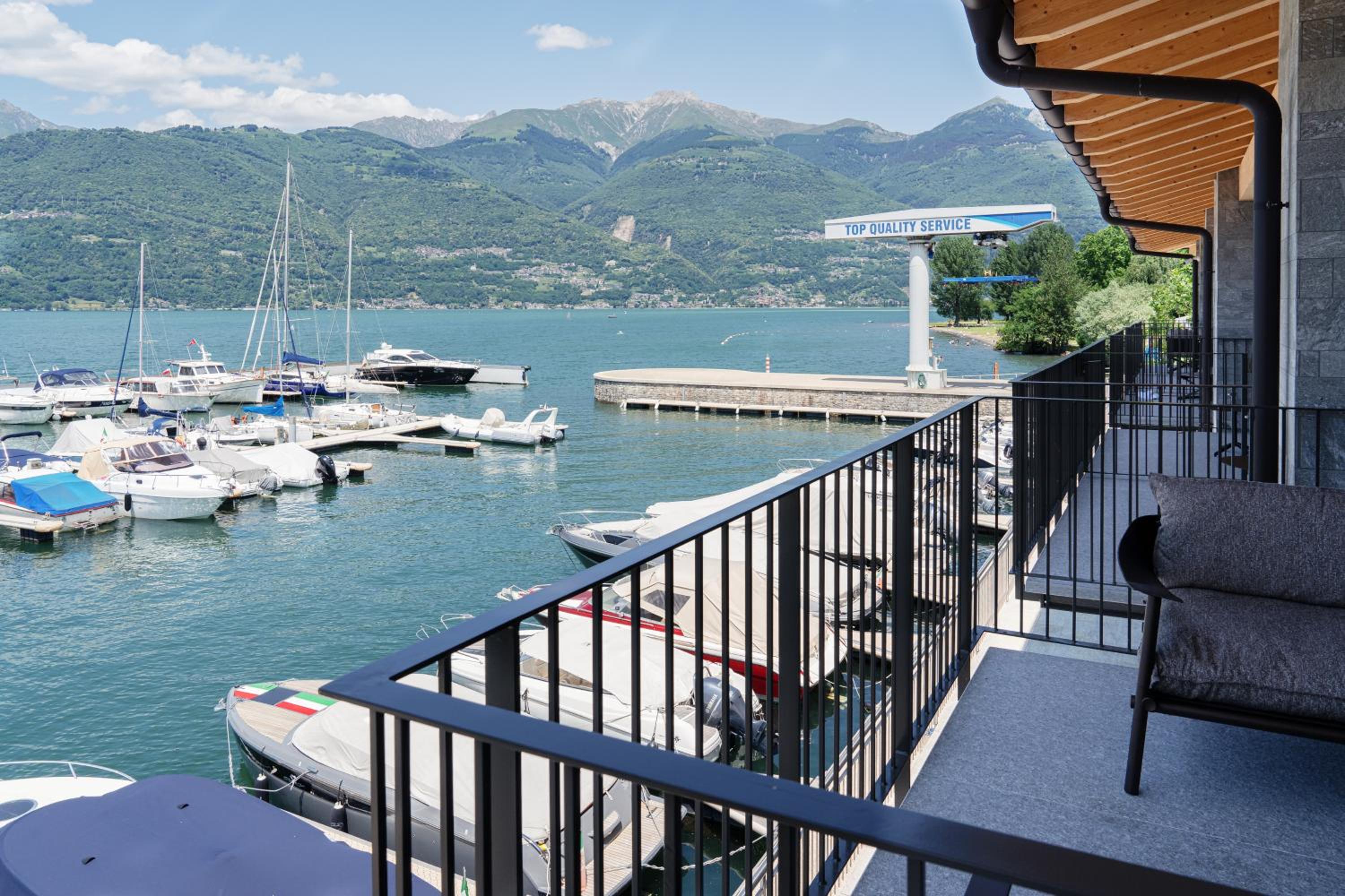 Traumlocation in Traumlage mit Blick auf die Marina und den Comer See. Sehr sicher gestaltet und modernste Anlage mit super Parkmöglichkeiten. Nettes Bistro in der Marina angeschlossen, das jetzt um diese Jahreszeit (September) Dienstag und Mittwoch Ruhetag hatte. Sehr gute Betten mit Ausblick auf den See (Zimmer mit Seeblick gewählt). Absolute Ruhe! Das Frühstück wird auf dem Zimmer nach Wahl und zu Zeiten, die man wählen kann, serviert. Perfekt, so dass man auch länger schlafen und auch auf dem Balkon frühstücken kann.