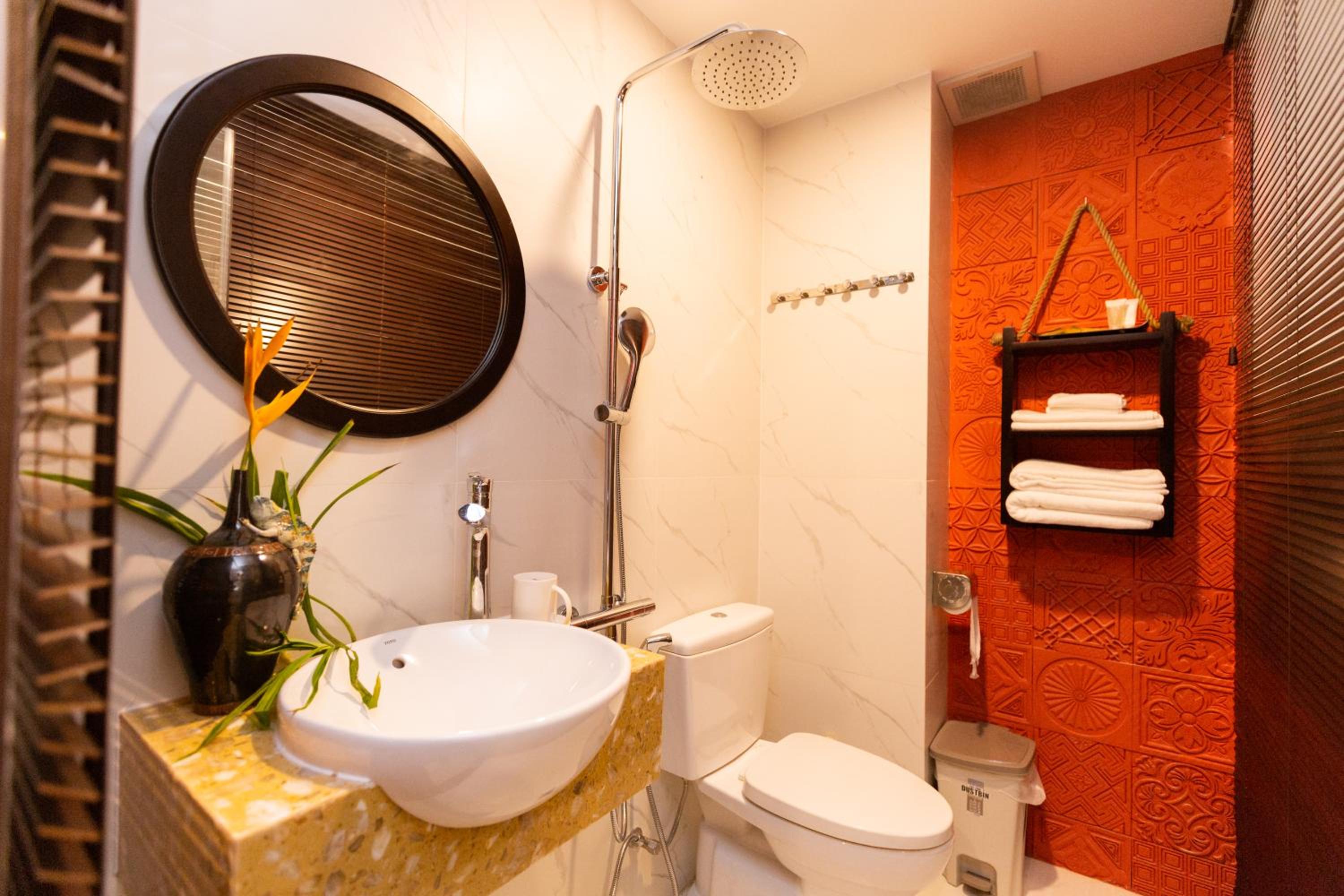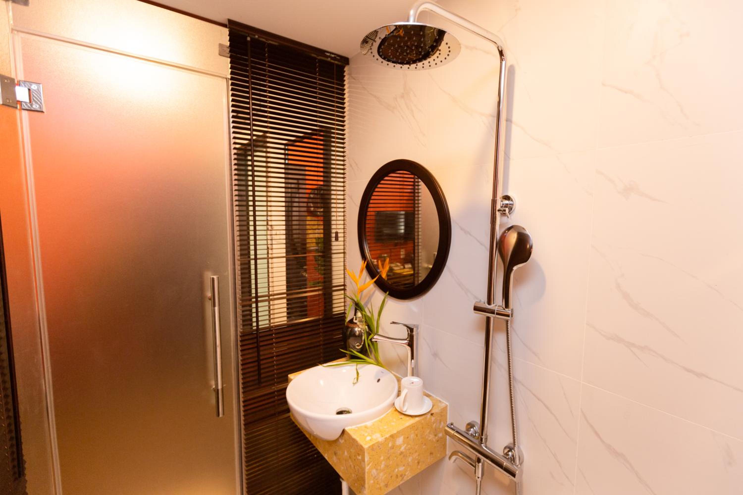 An sich hat mir alles gefallen, nur,.dass die Dusche zwischen Toilette und Waschbecken ist hat mich anfangs etwas erstaunt, scheint in Vietnam aber Gang und geben zu sein. Von daher nicht direkt was negatives. Mir persönlich gefällt es nicht so, kann aber auch sein ich den europäischen Standard zu sehr gewöhnt bin. 🙂