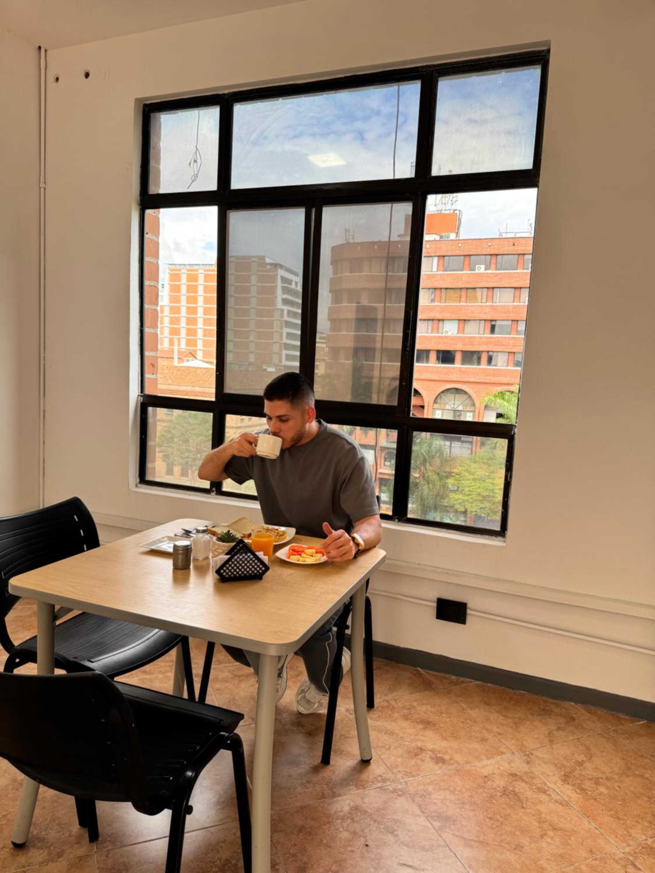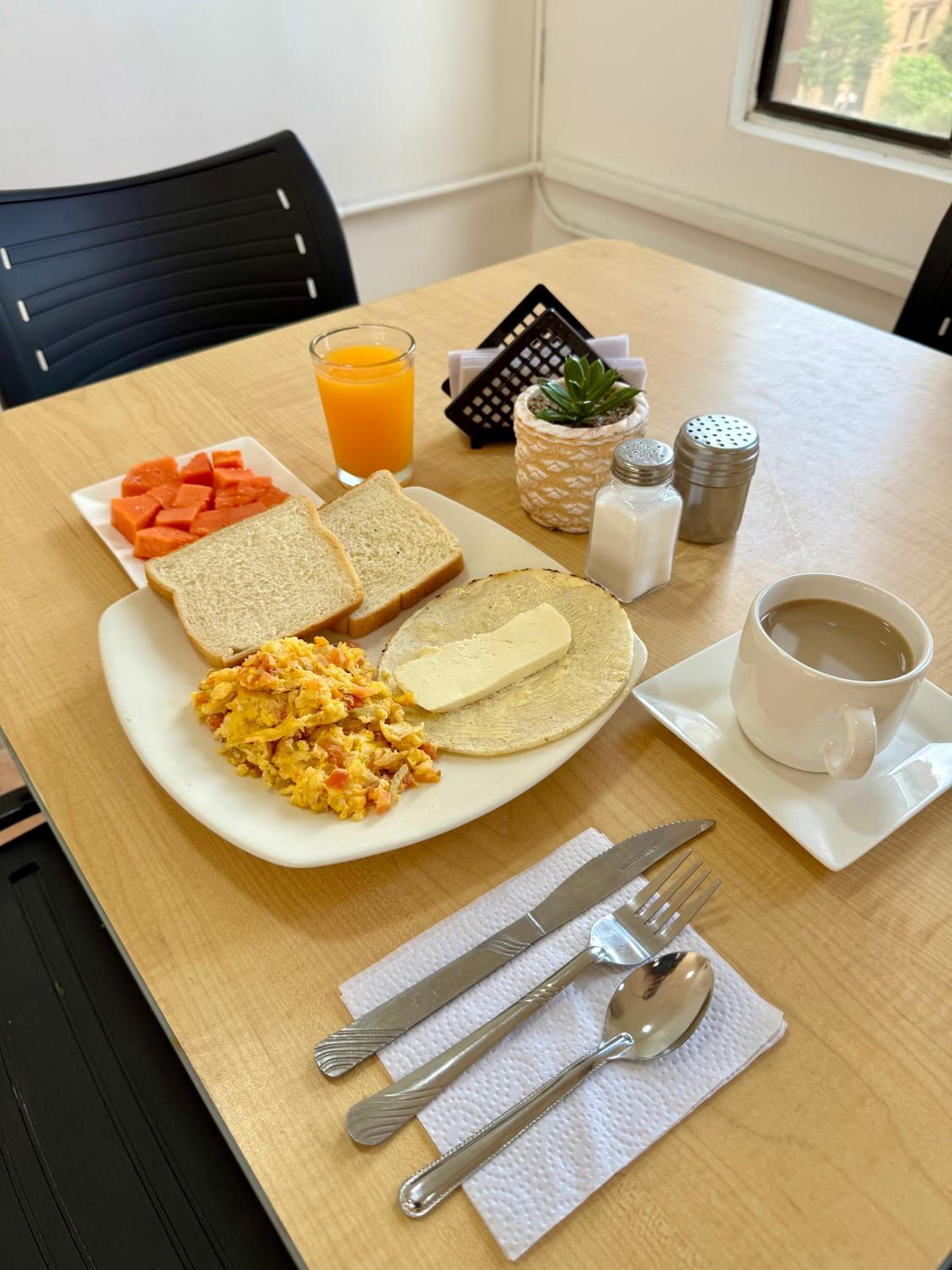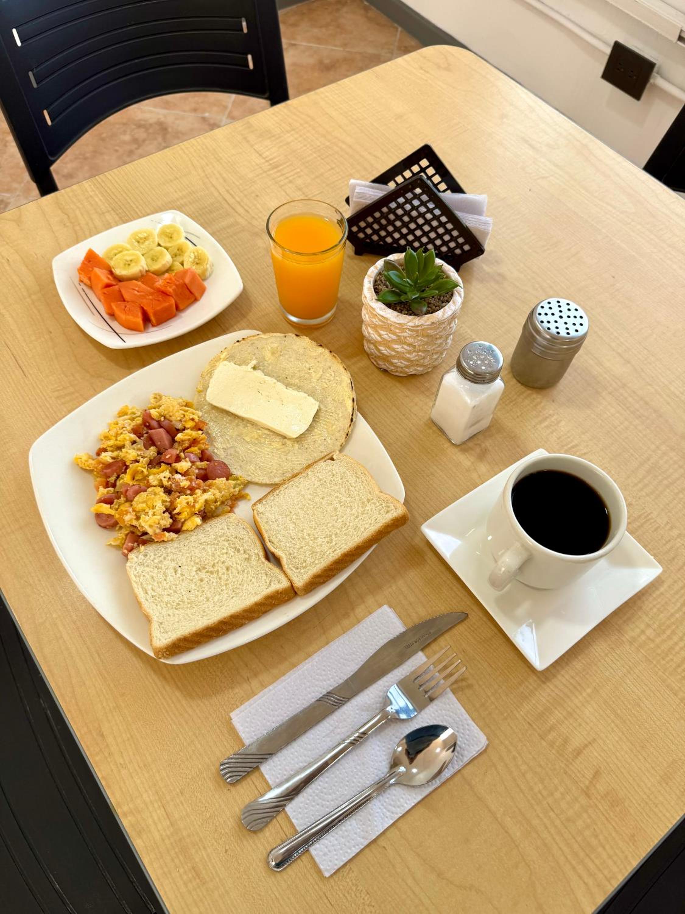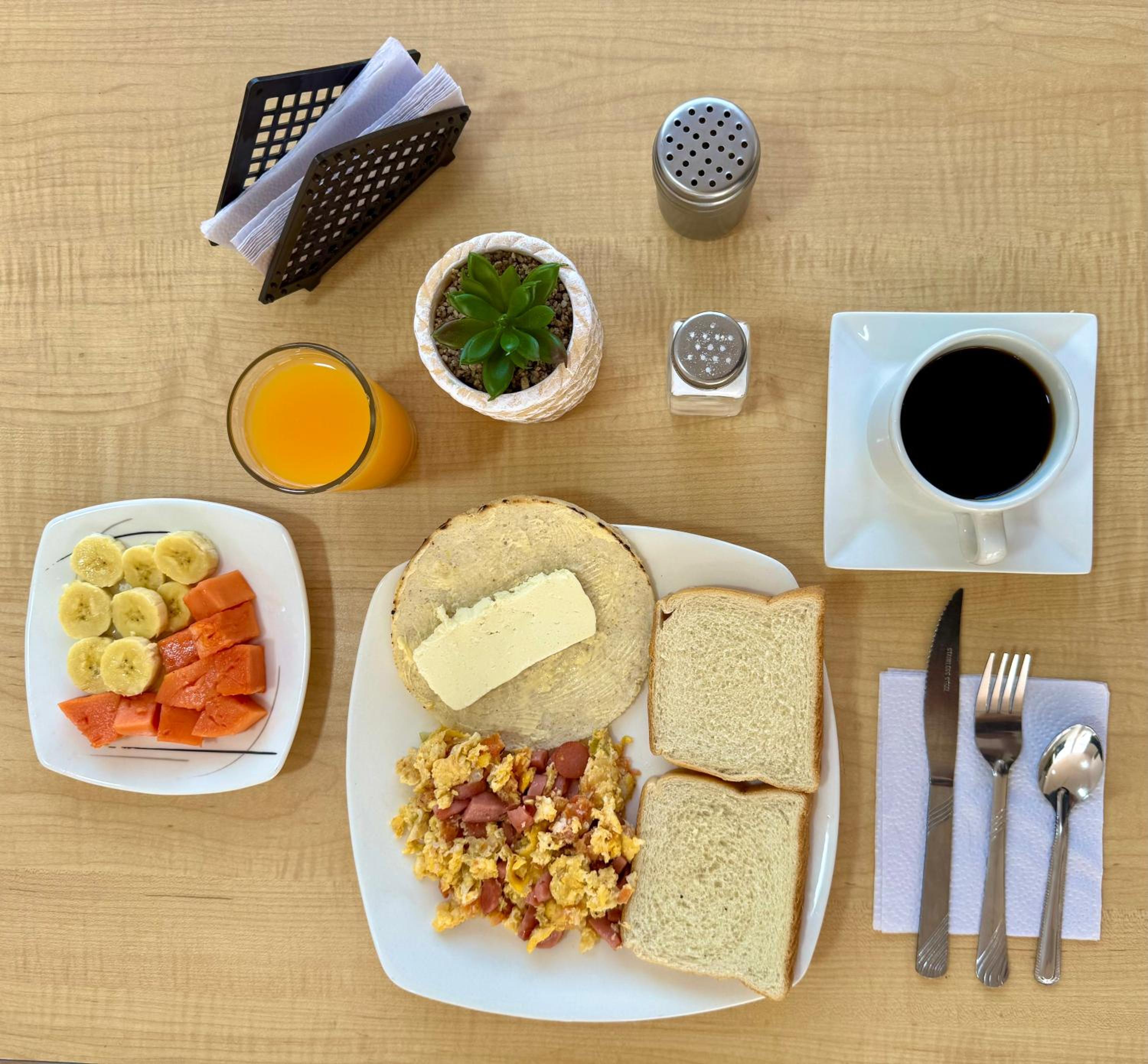 El desayuno no lo pude tomar, estaba esperando una hora y nada, me tuve que retirar