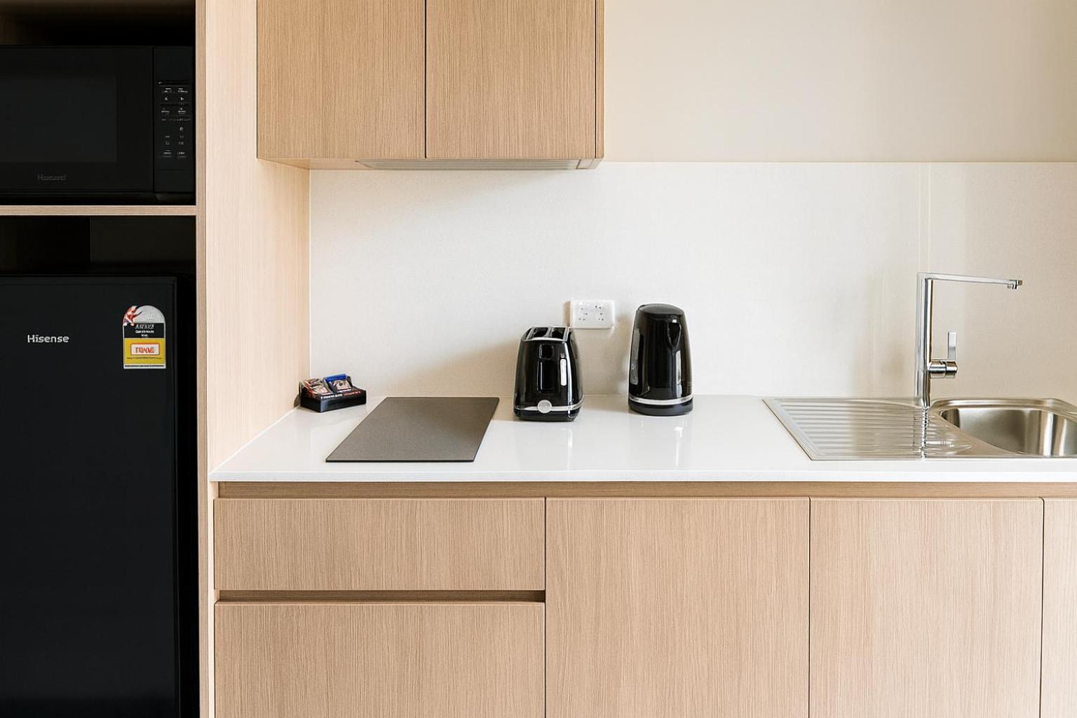 Clean & comfortable with good size fridge and cook top