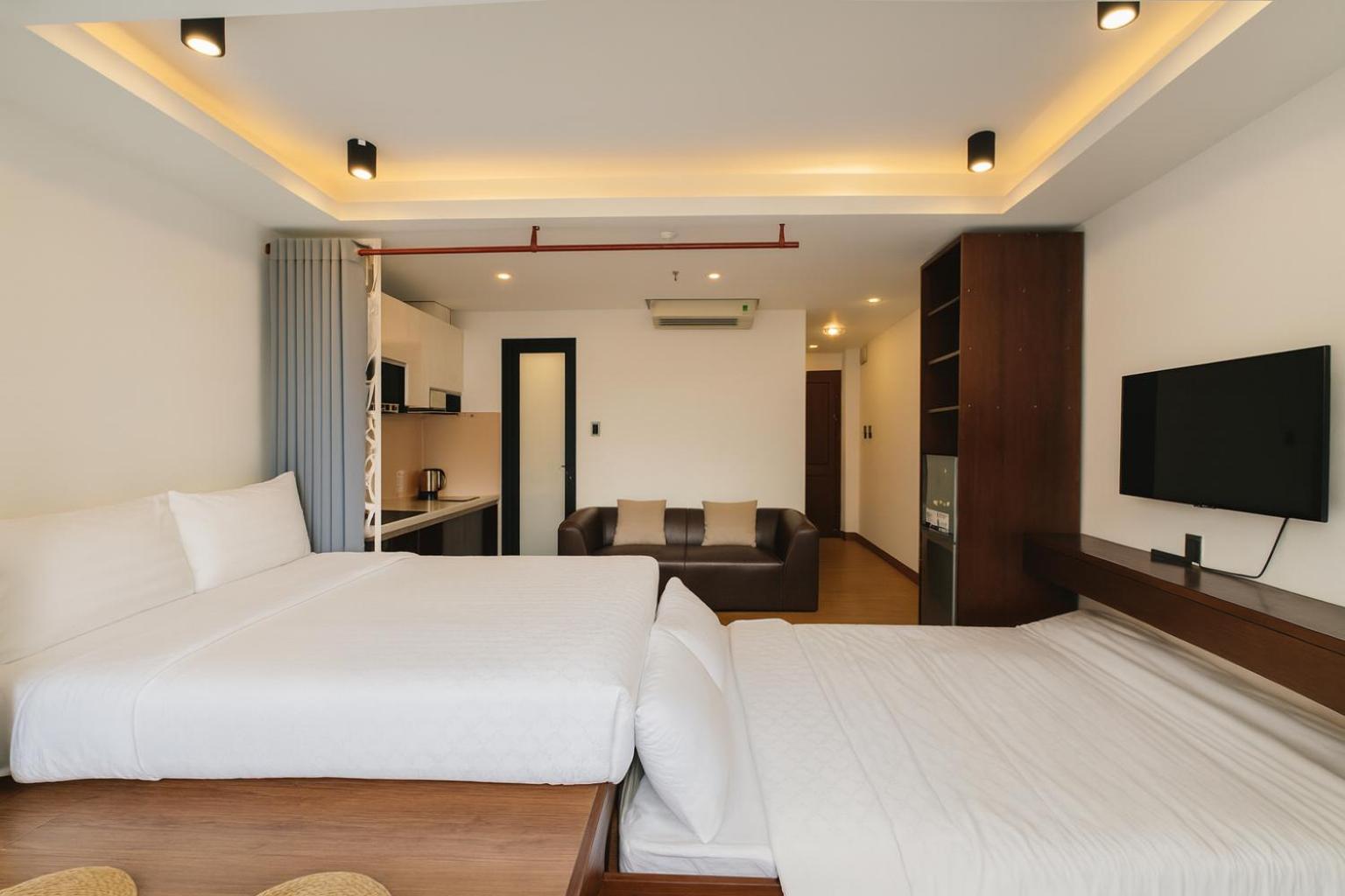 Nice place. We booked the 22 sqaure meter room. It felt more spacious. The staff was kind and helpfull. The wifi was fine we could work the whole week with no problem. Overall good stay. Not on the main road makes it feel little bit non noisier.