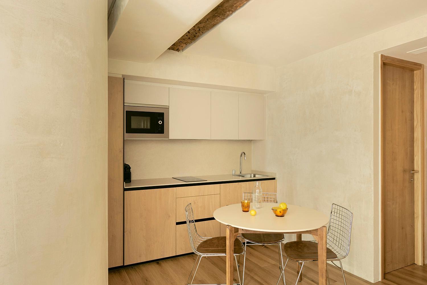 Stylish Accommodations: Enjoy our air-conditioned, elegantly designed units featuring chic parquet floors. Each space is equipped with a fully stocked kitchen, perfect for creating home-cooked meals, and a cozy dining area for gathering with loved ones.
