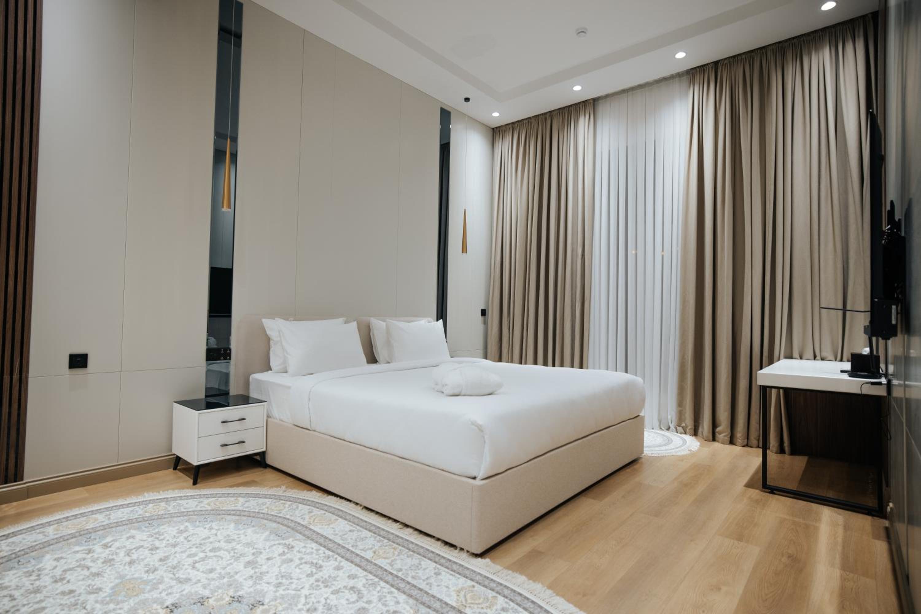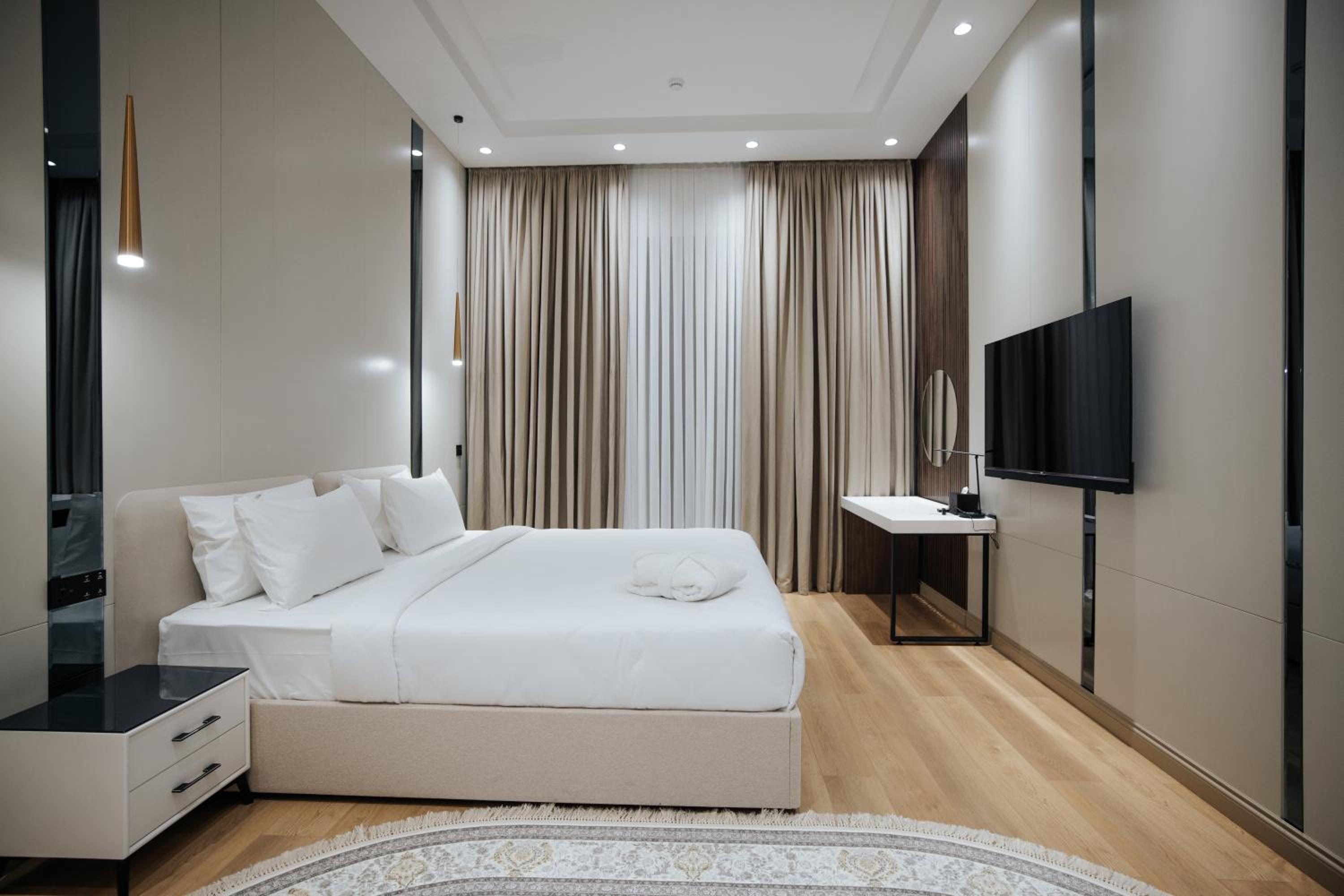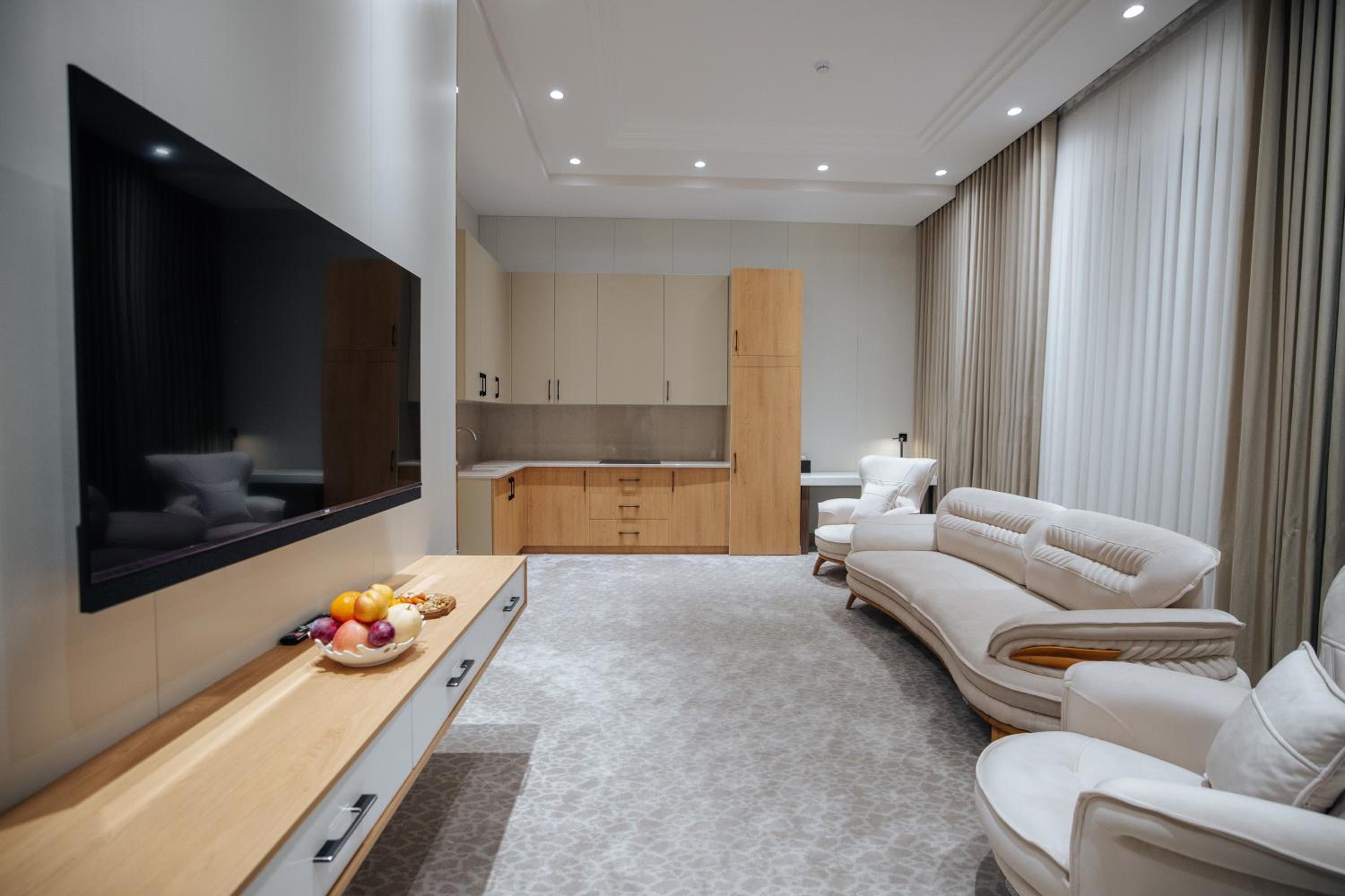 Luxurious Accommodations: Indulge in our air-conditioned rooms that come equipped with everything you need for a comfortable stay, including a minibar, flat-screen TV, and a private bathroom. Choose from rooms featuring kitchens for added convenience.