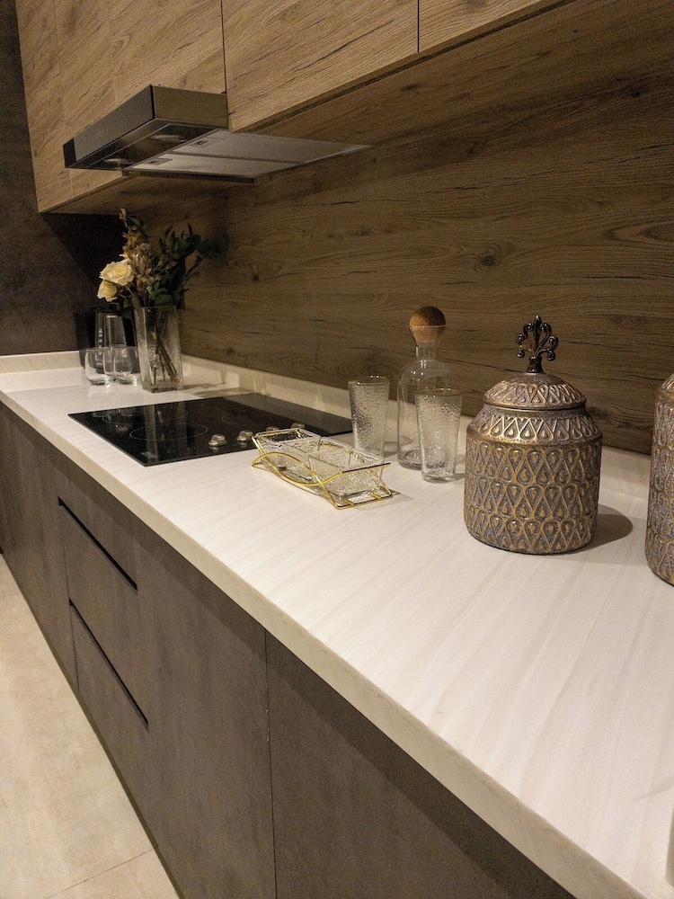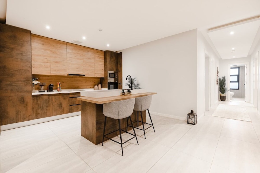 Relax in an air-conditioned apartment complete with a fully-equipped kitchen featuring a refrigerator and oven, perfect for preparing your favorite meals at home.