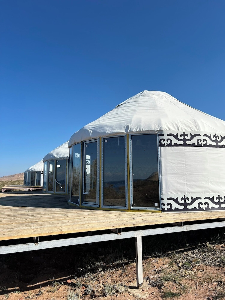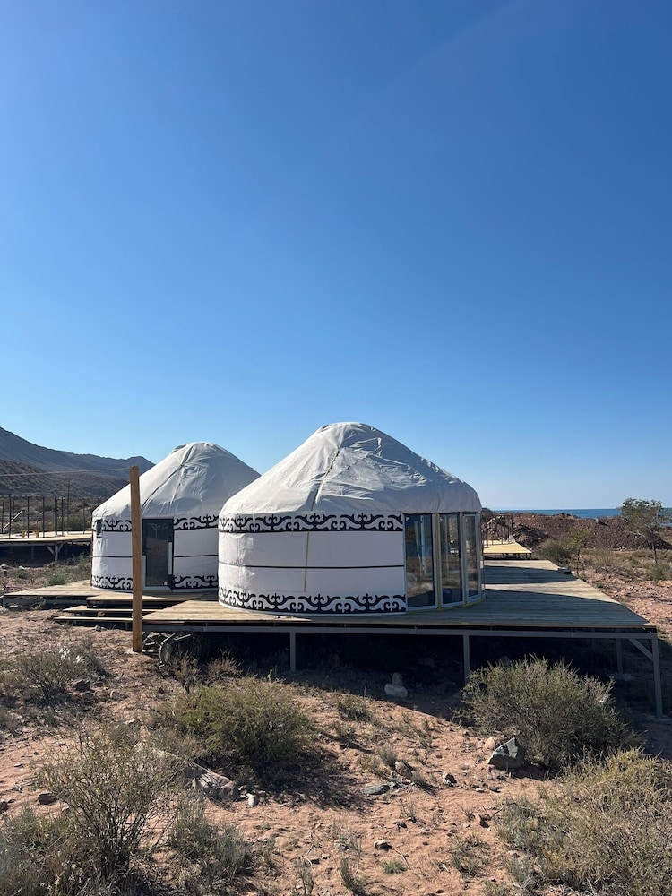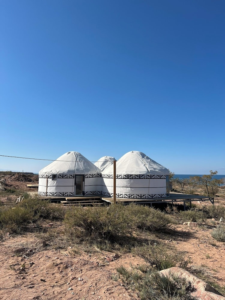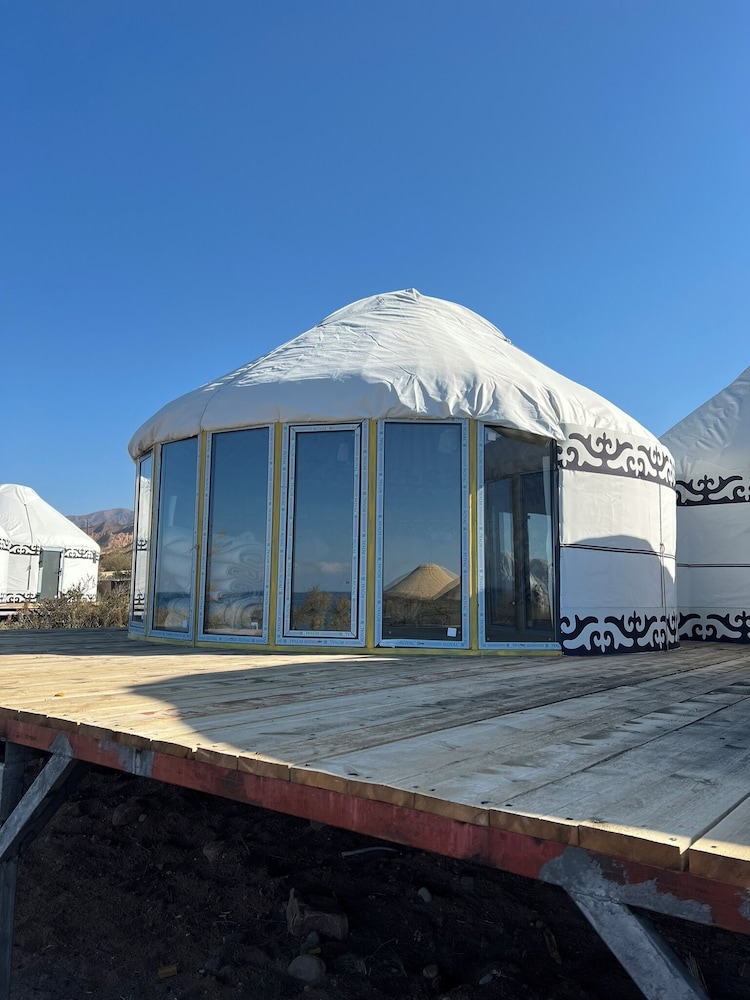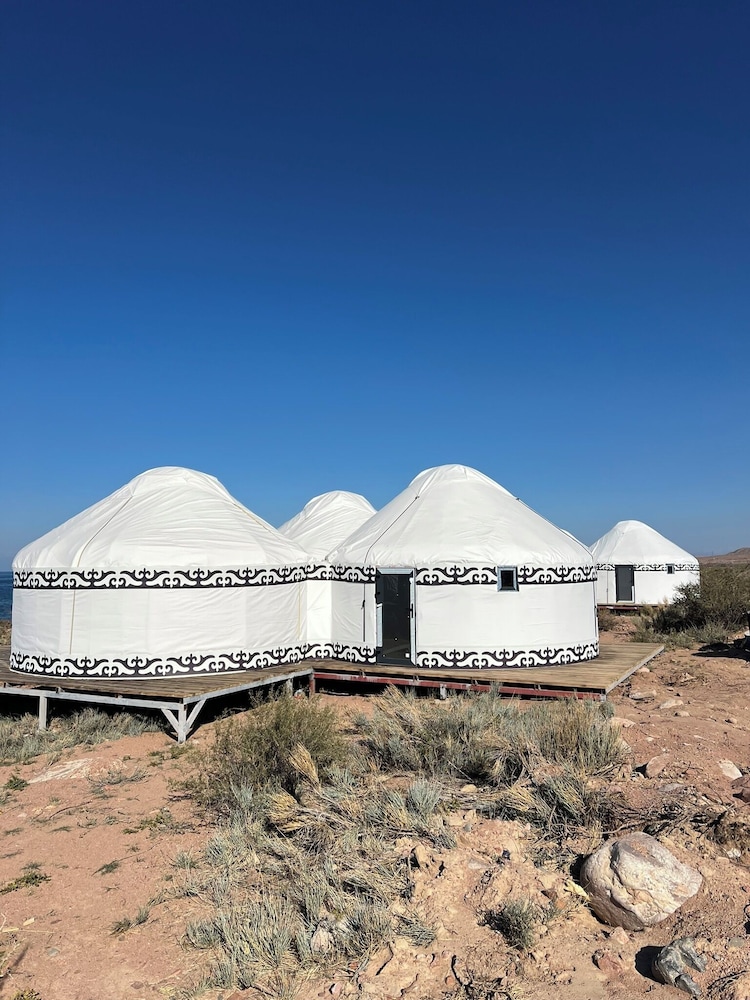 Experience the ultimate lakeside retreat at Oimo Tash Yurt Camp, where nature meets comfort.