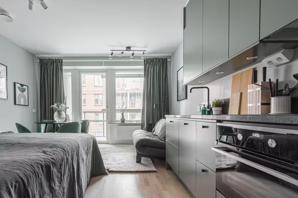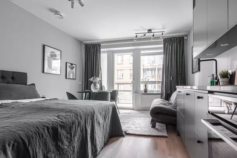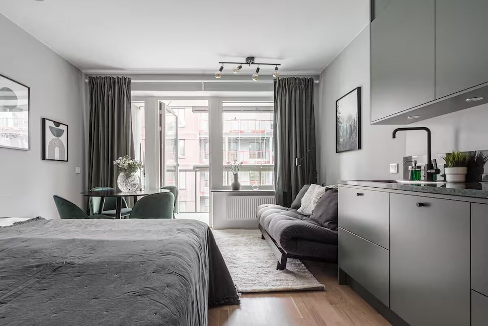 Experience a cozy retreat in the heart of Stockholm at Modern Studios by Karolinska Institutet.