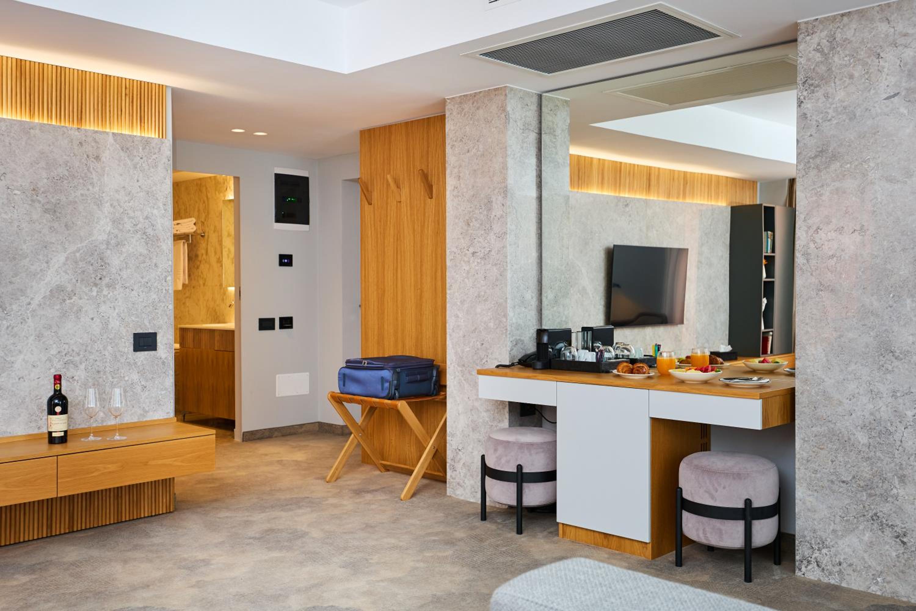 Our stylish guest rooms are designed for relaxation, featuring air conditioning, flat-screen TVs, and private bathrooms stocked with complimentary toiletries. Enjoy stunning city views from select rooms or unwind in a cozy seating area.
