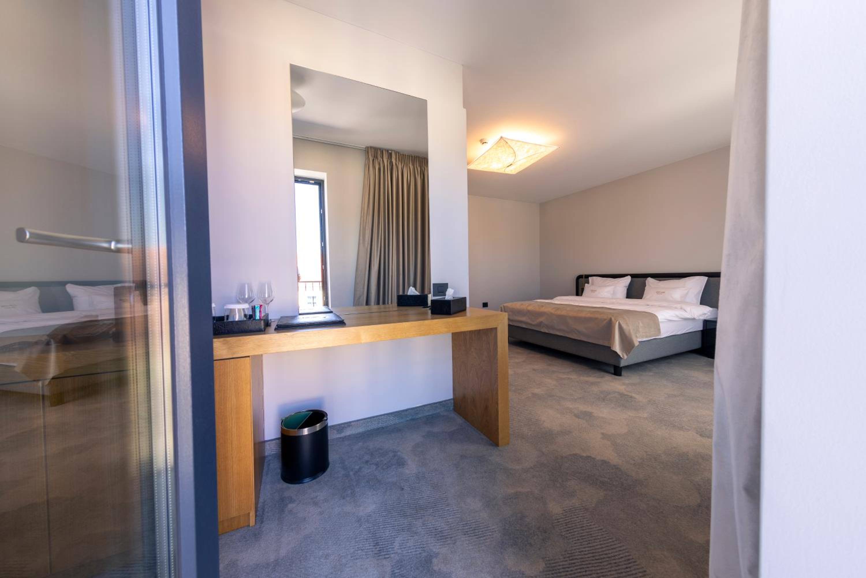 Locatia in cetate. Amenajari interioare de calitate exceptionala. Dimensiunea generoasa a camerei. Baia utilata modern. Restaurantul cu mancare foarte buna. Am stat in conditii aproape similare, adica mai putin buna, cu 200 euro, deci pretul a fost excelent pentru ceea ce se ofera.