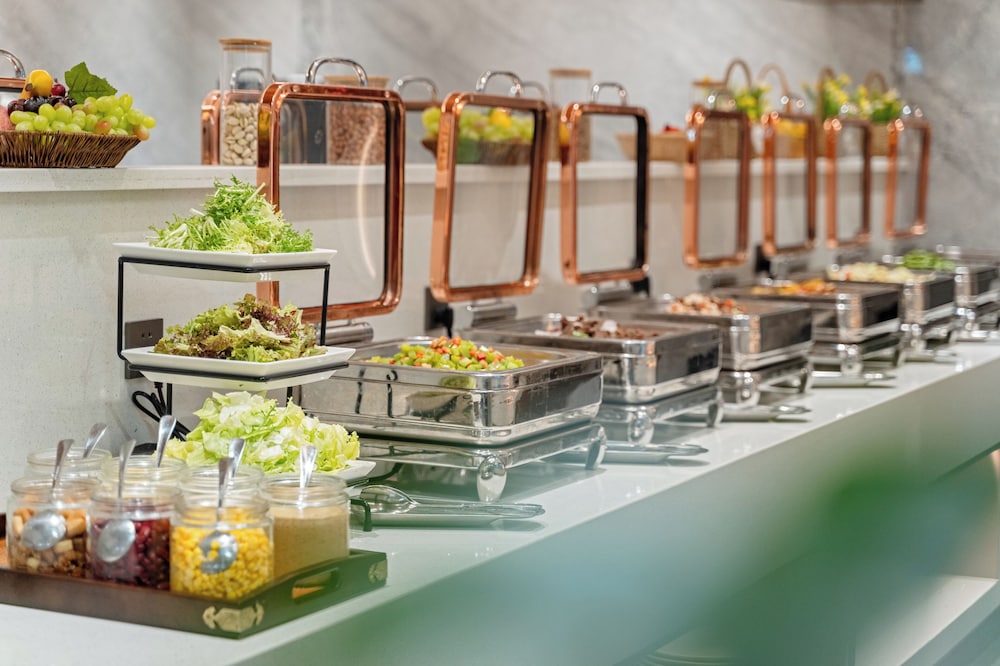 Indulge in a delectable meal at our restaurant, featuring self-serve breakfasts daily from 7:00 AM to 10:00 AM. Enjoy the perk that children aged 6 and under eat free!