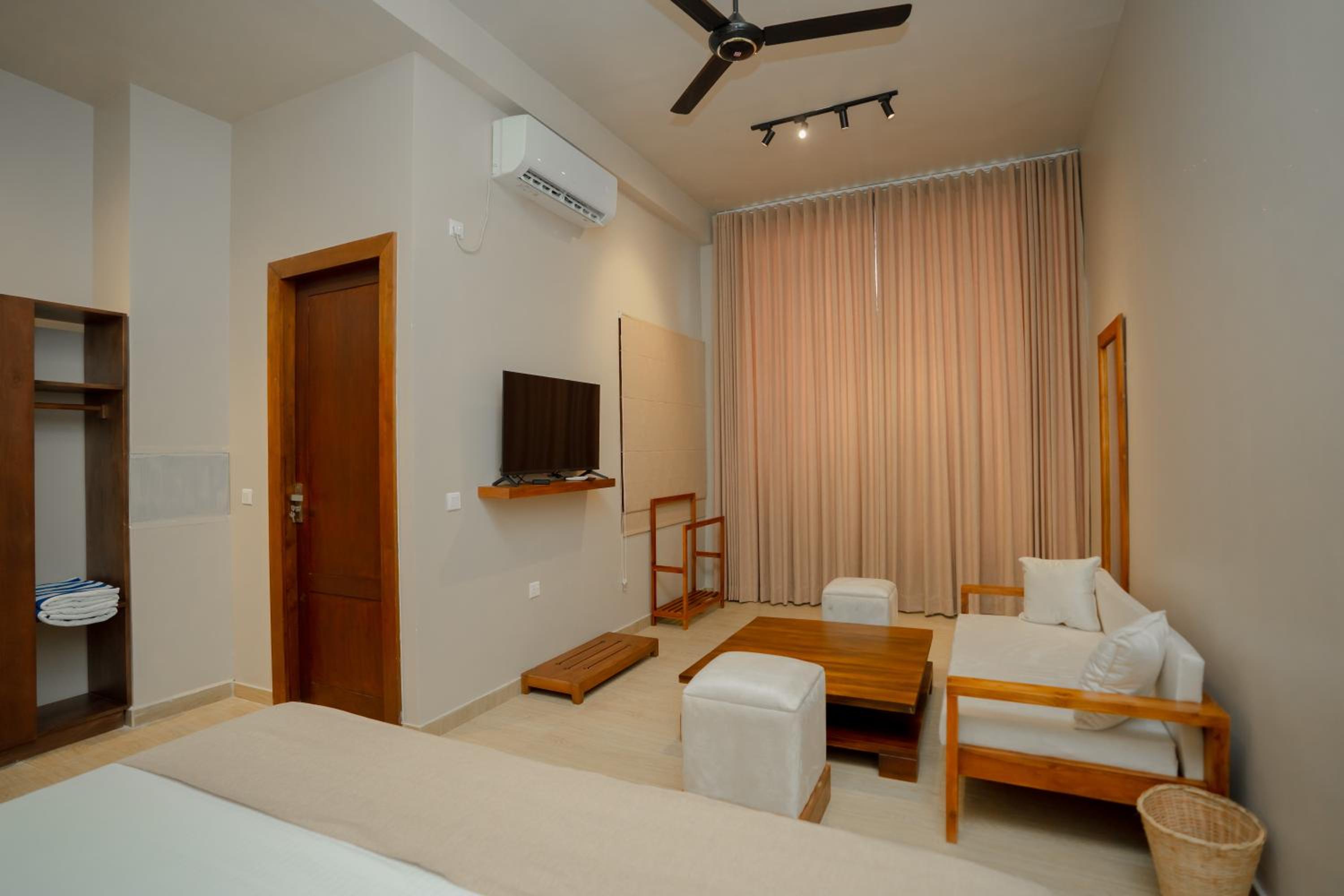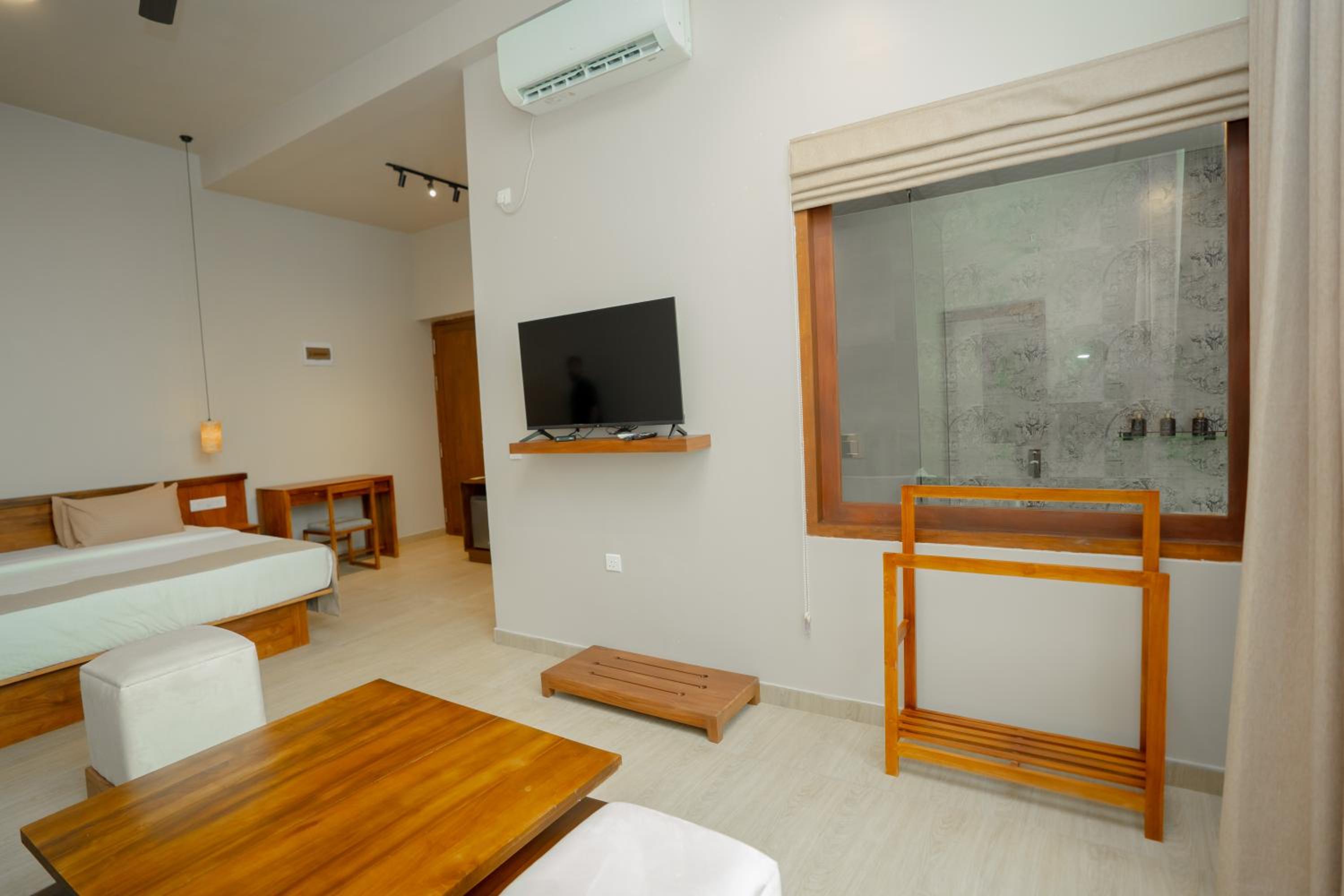 Enjoy air-conditioned rooms equipped with modern amenities such as a minibar, fridge, and flat-screen TV, ensuring a peaceful stay. Each room features a private bathroom and cozy closet for a homely feel.
