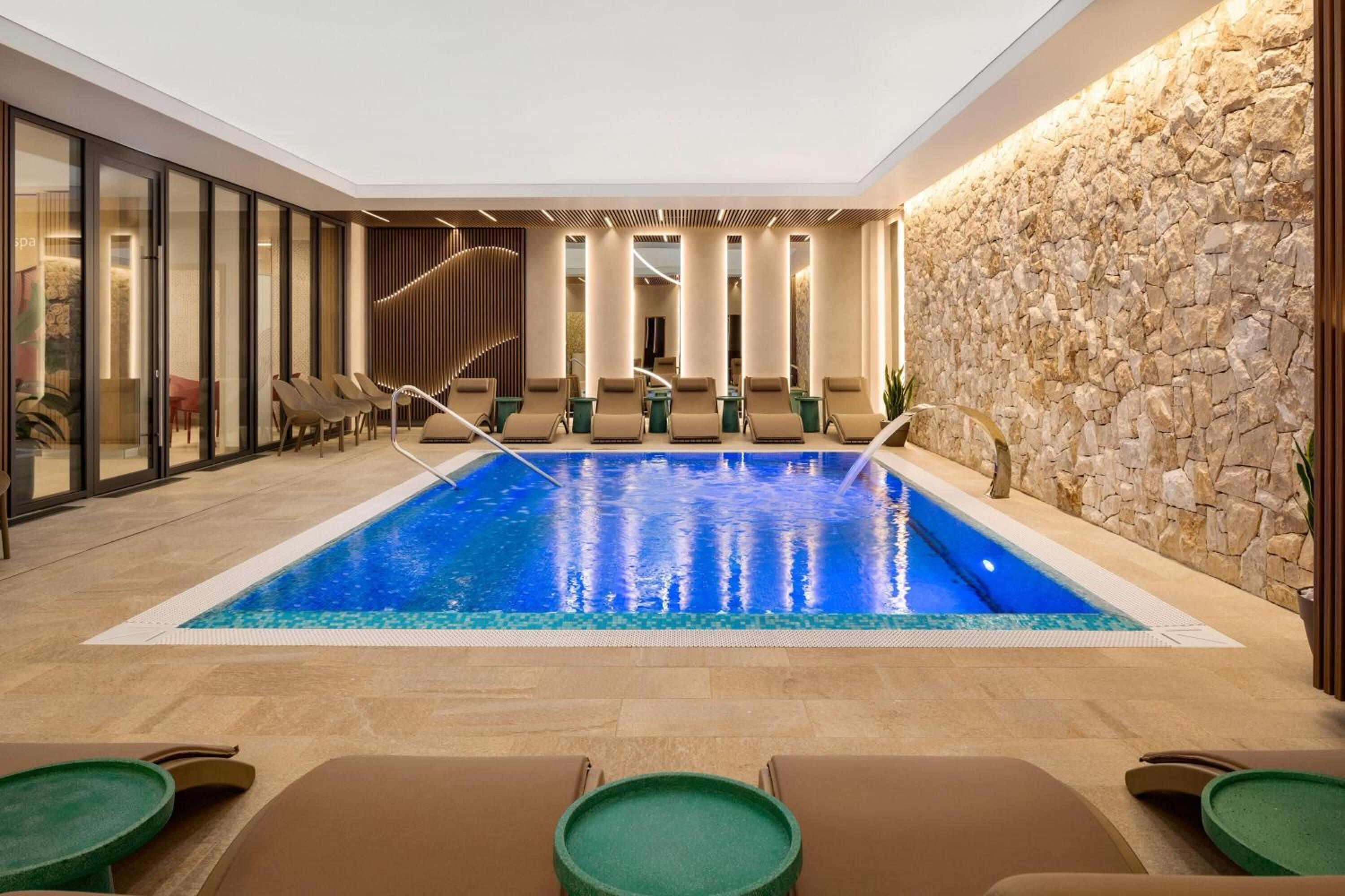 Unwind in our luxurious spa and wellness center, featuring a fitness center, sauna, and hot tub, ideal for rejuvenating your mind and body after a long day.