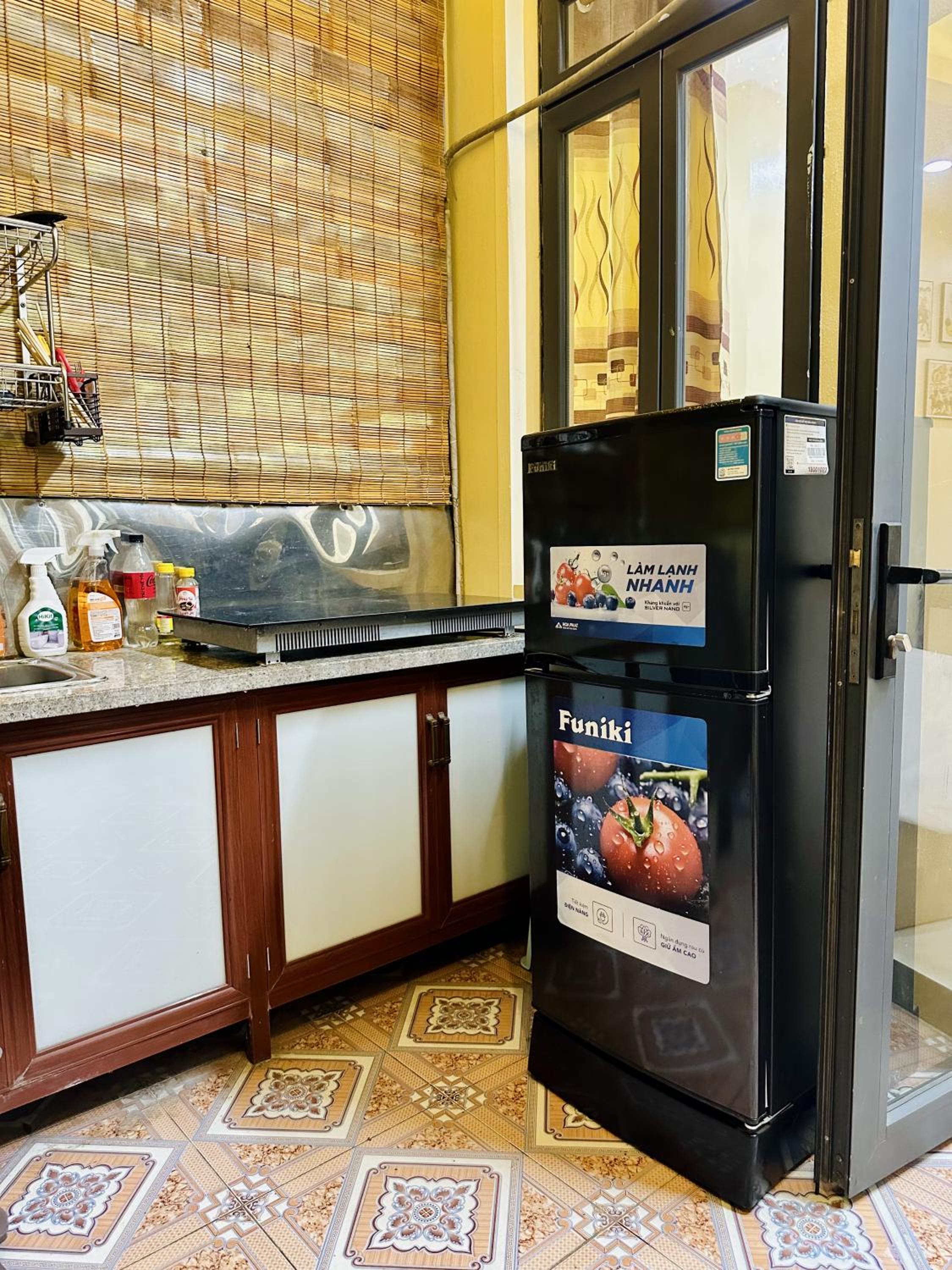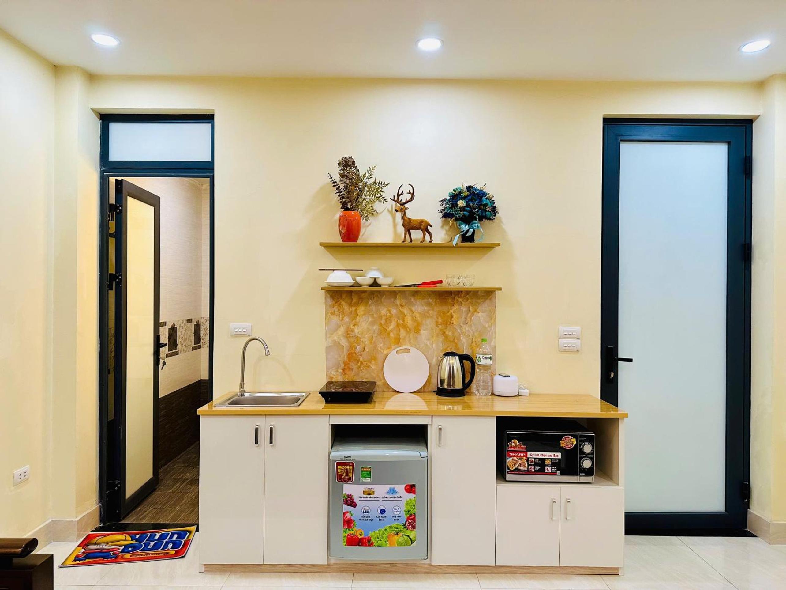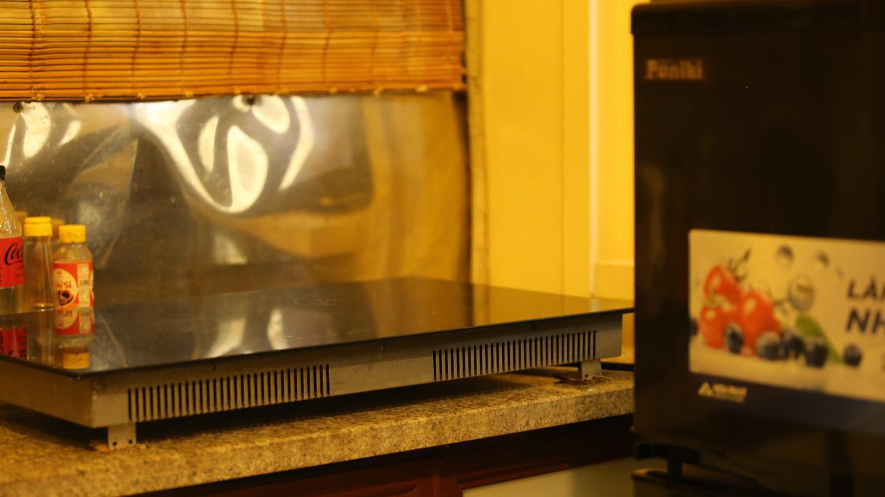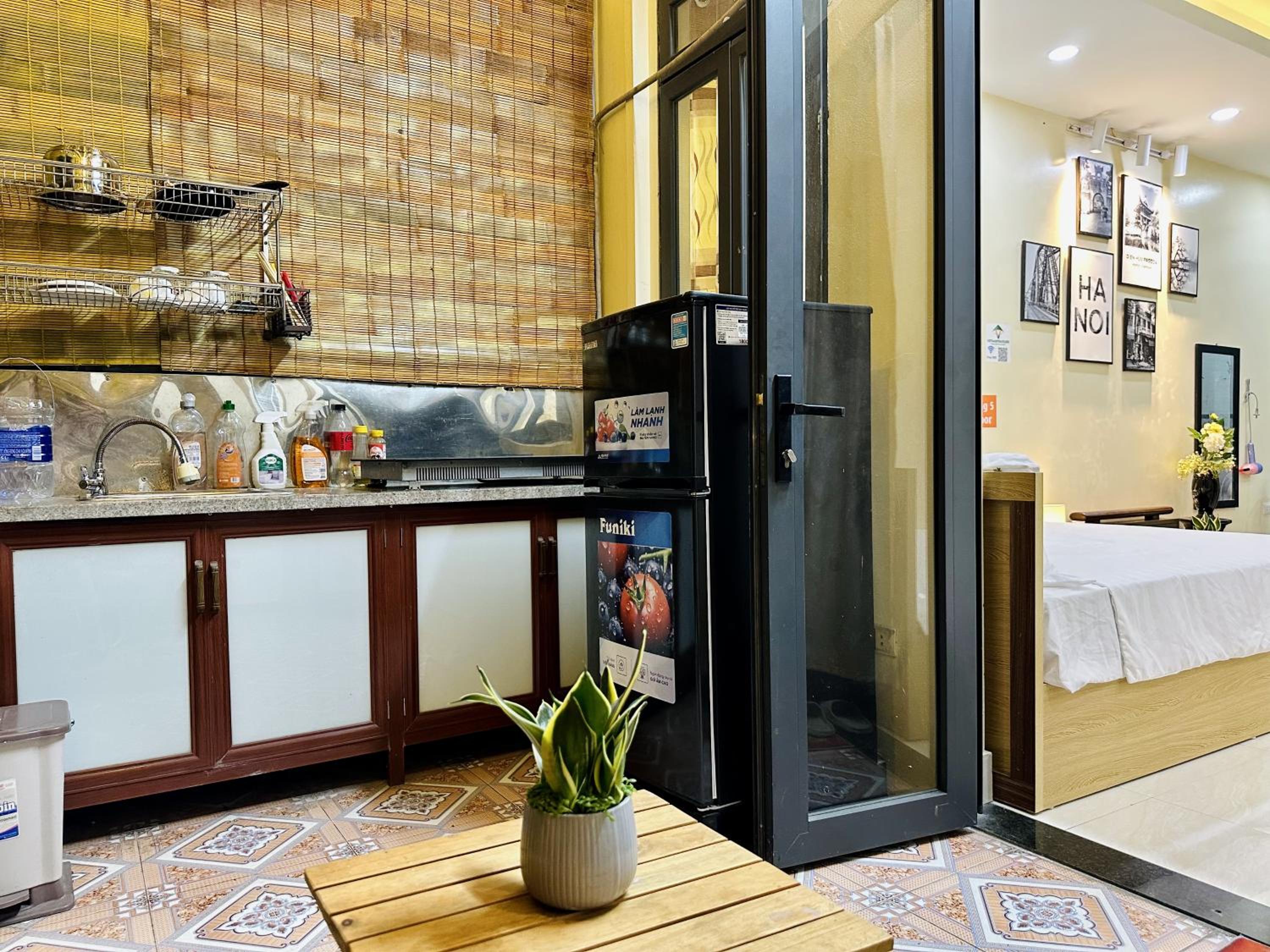 Very clean and modern. Full kitchen, washing machine and everything outside on the balcony. Location is great in the centre of Hanoi.