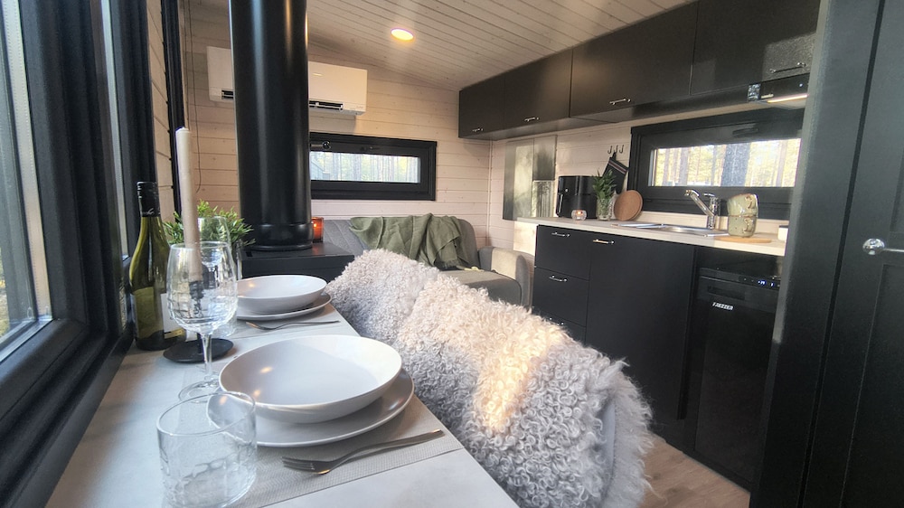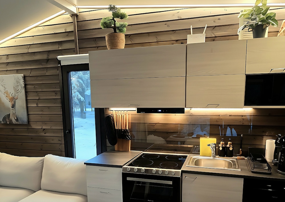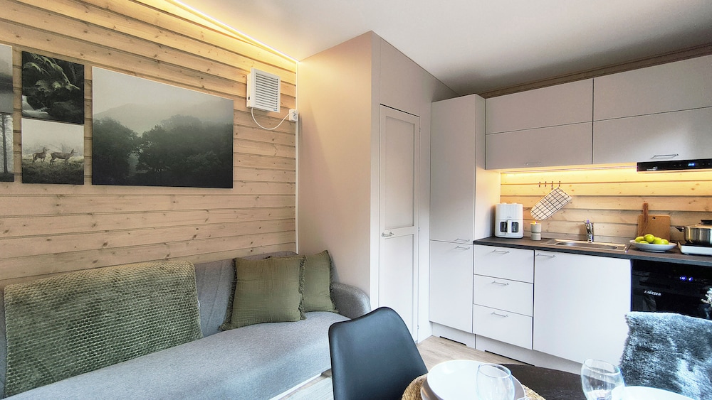 Relax in one of our 12 individually decorated guestrooms, featuring inviting fireplaces and heated floors. Each kitchen is well-equipped with modern appliances, including refrigerators and stovetops, perfect for cozy dinners after a day on the slopes.