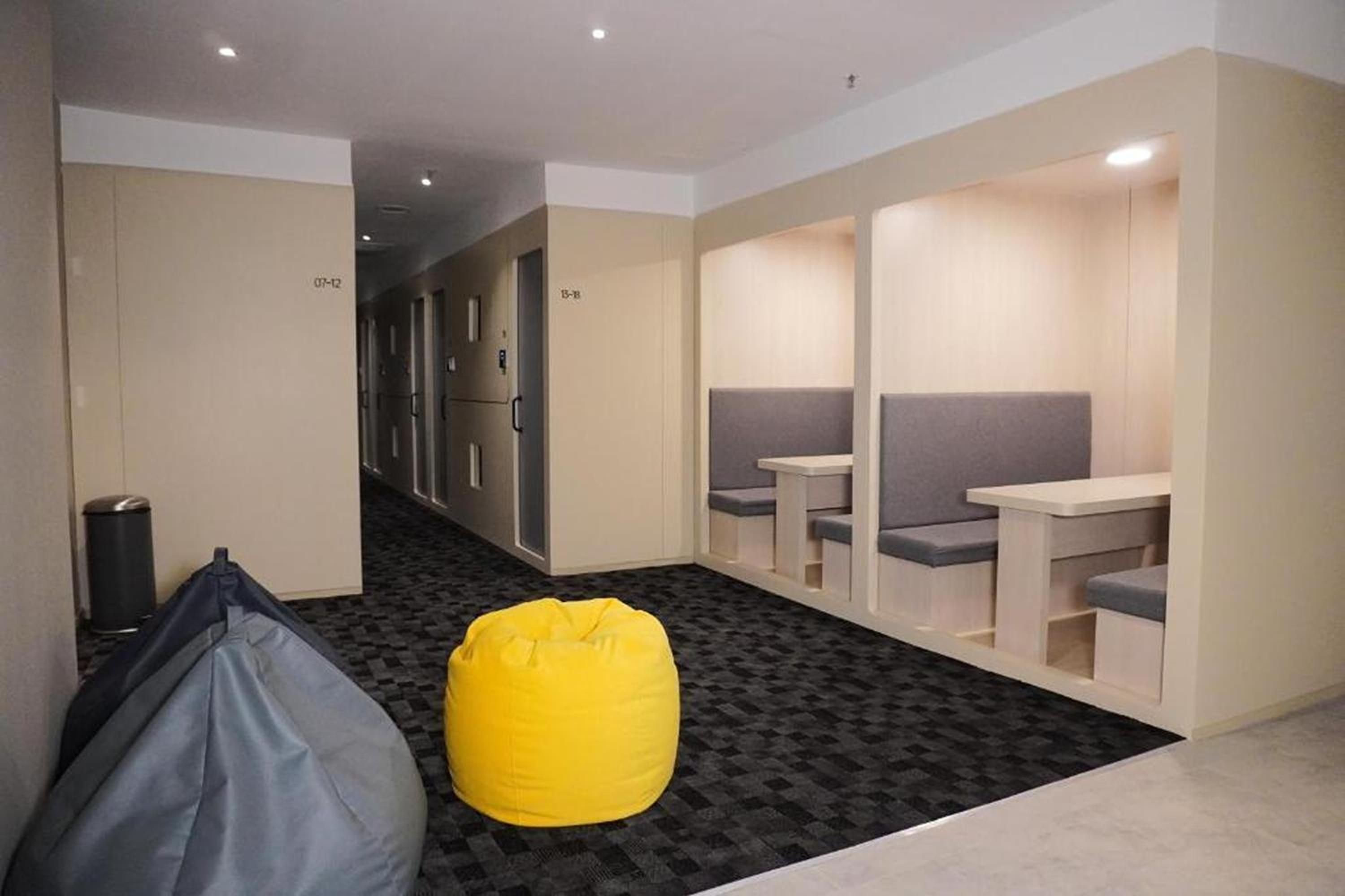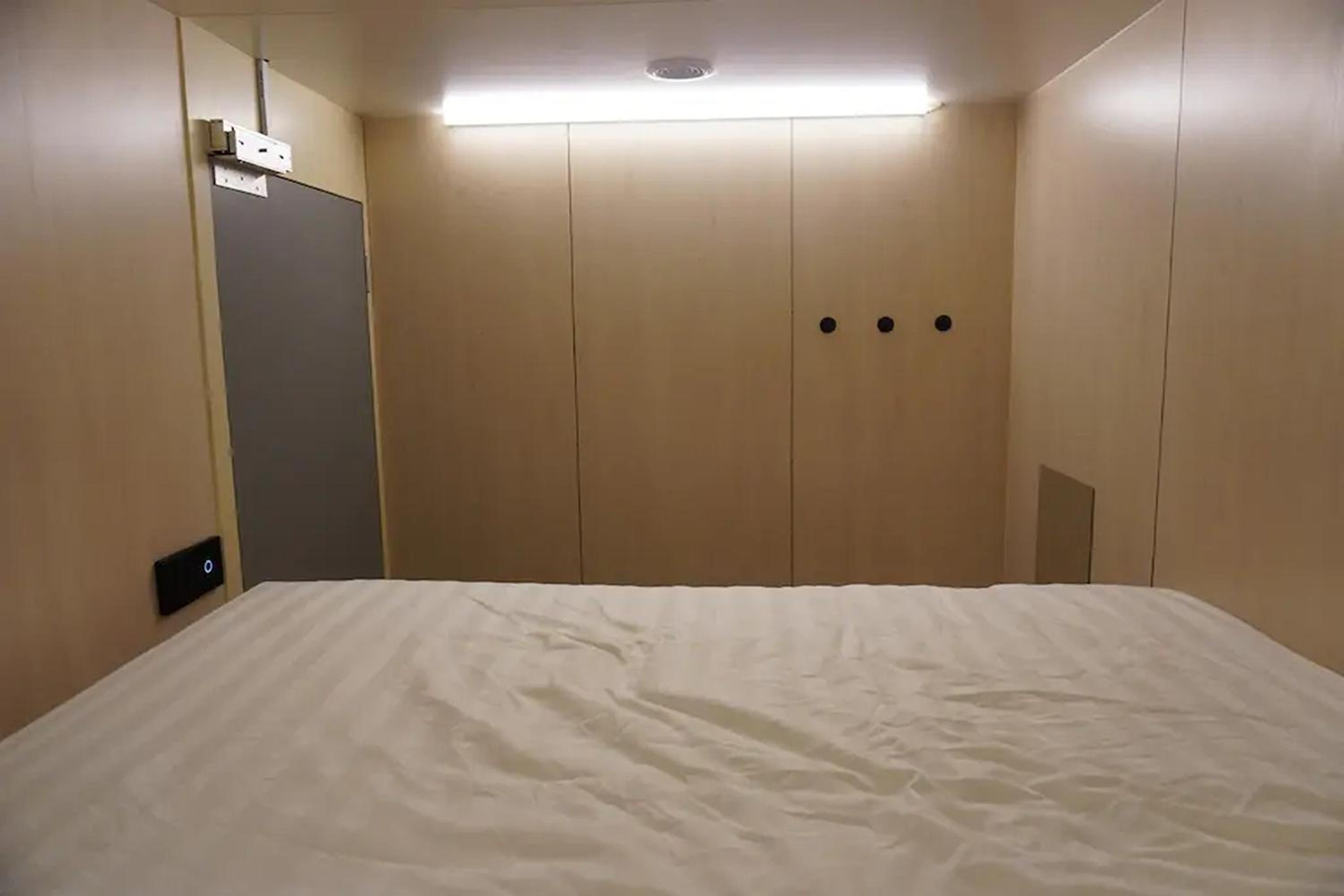 Experience a restful night in our air-conditioned capsule rooms, designed for both comfort and convenience, featuring shared bathrooms for a hassle-free stay.