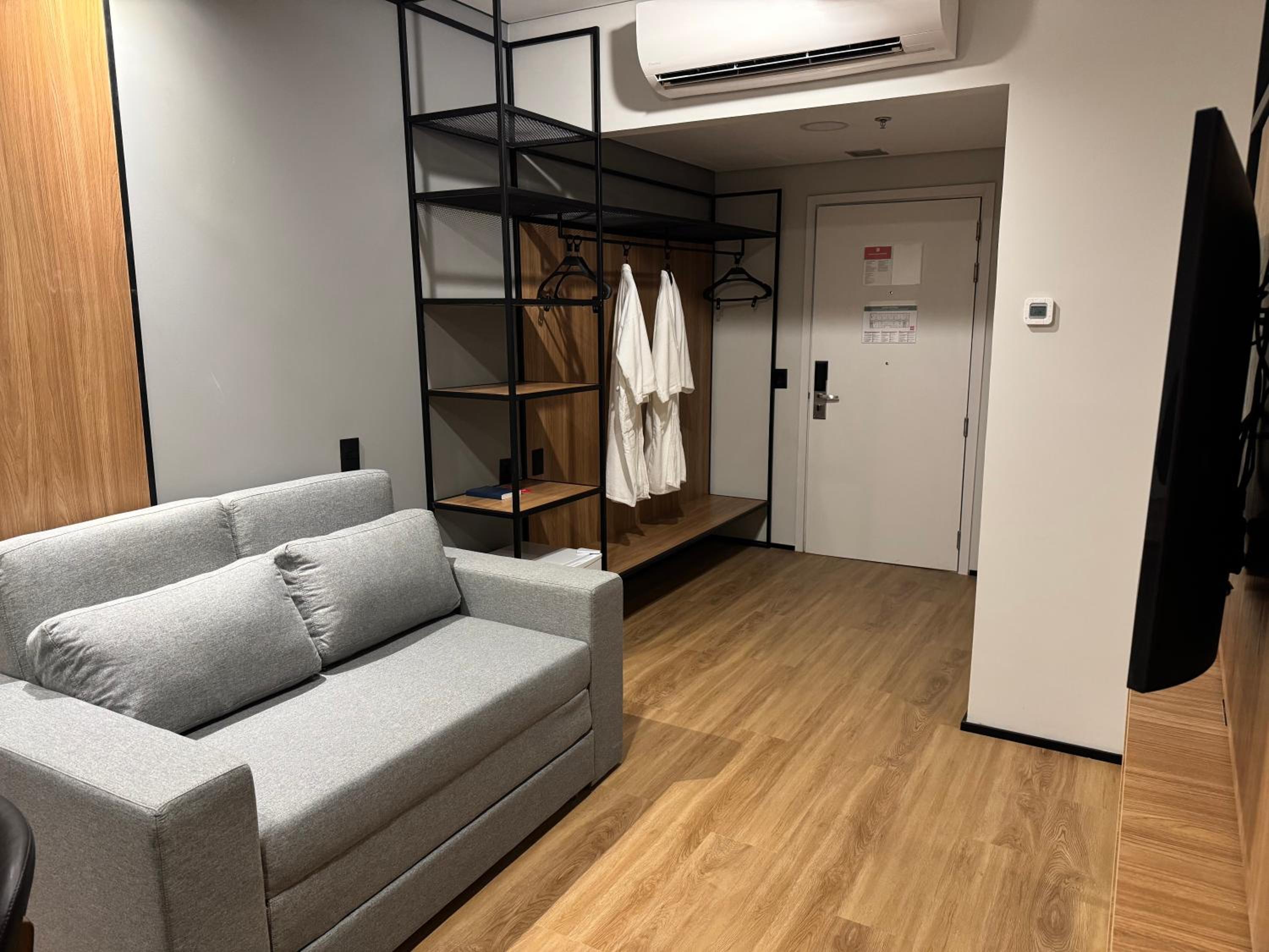 Hotel novo, quarto moderno, limpo e com bom tamanho para a categoria. Café da manhã muito bom, com bastante variedade de itens. Atendimento cordial.