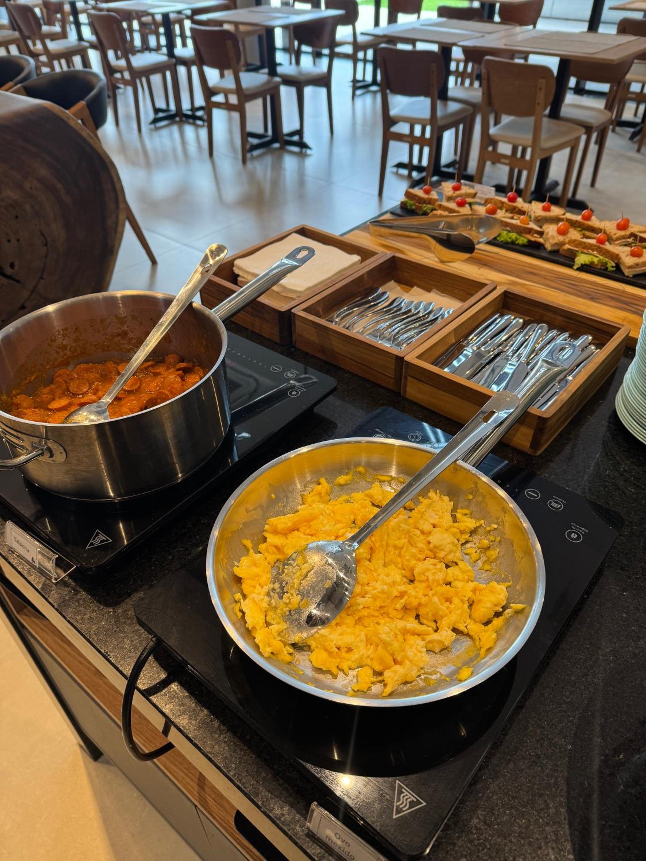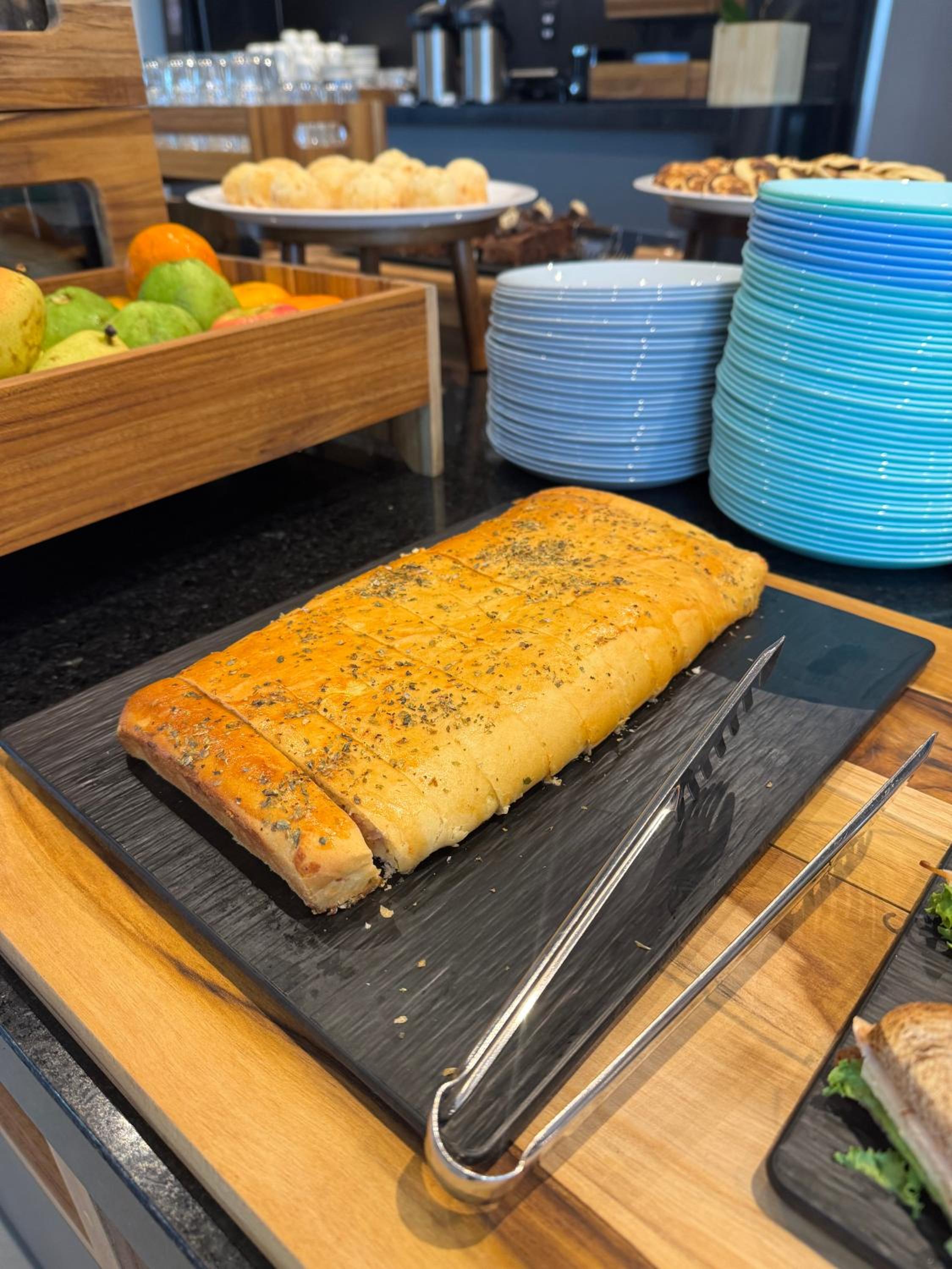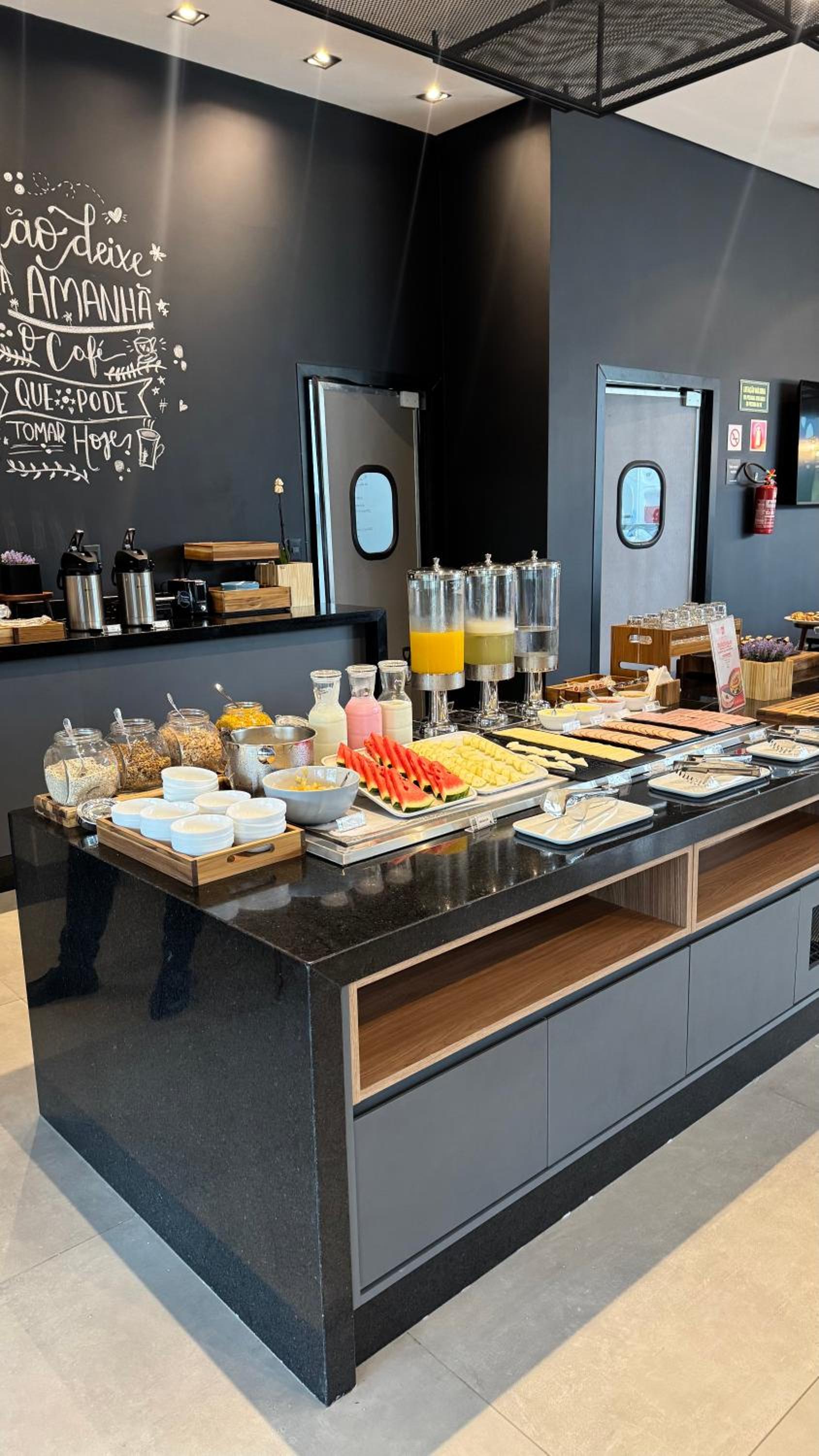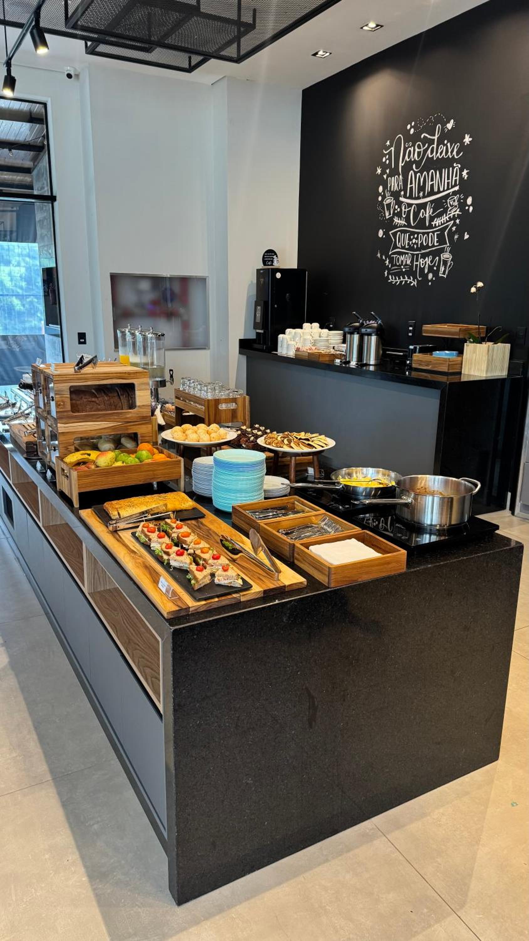 Café da manhã saboroso, porém deixo como sugestão ampliar a variedade de itens oferecidos. Senti falta de mais opções no buffet.