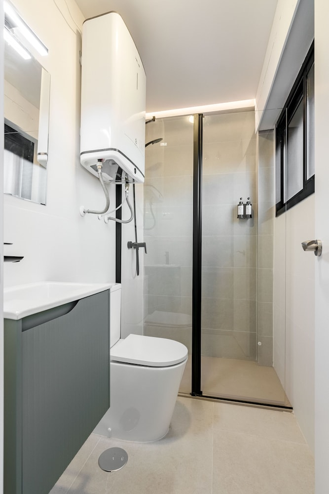 Enjoy clean and modern bathrooms featuring refreshing showers and hair dryers, ensuring you have everything you need for a relaxing stay.