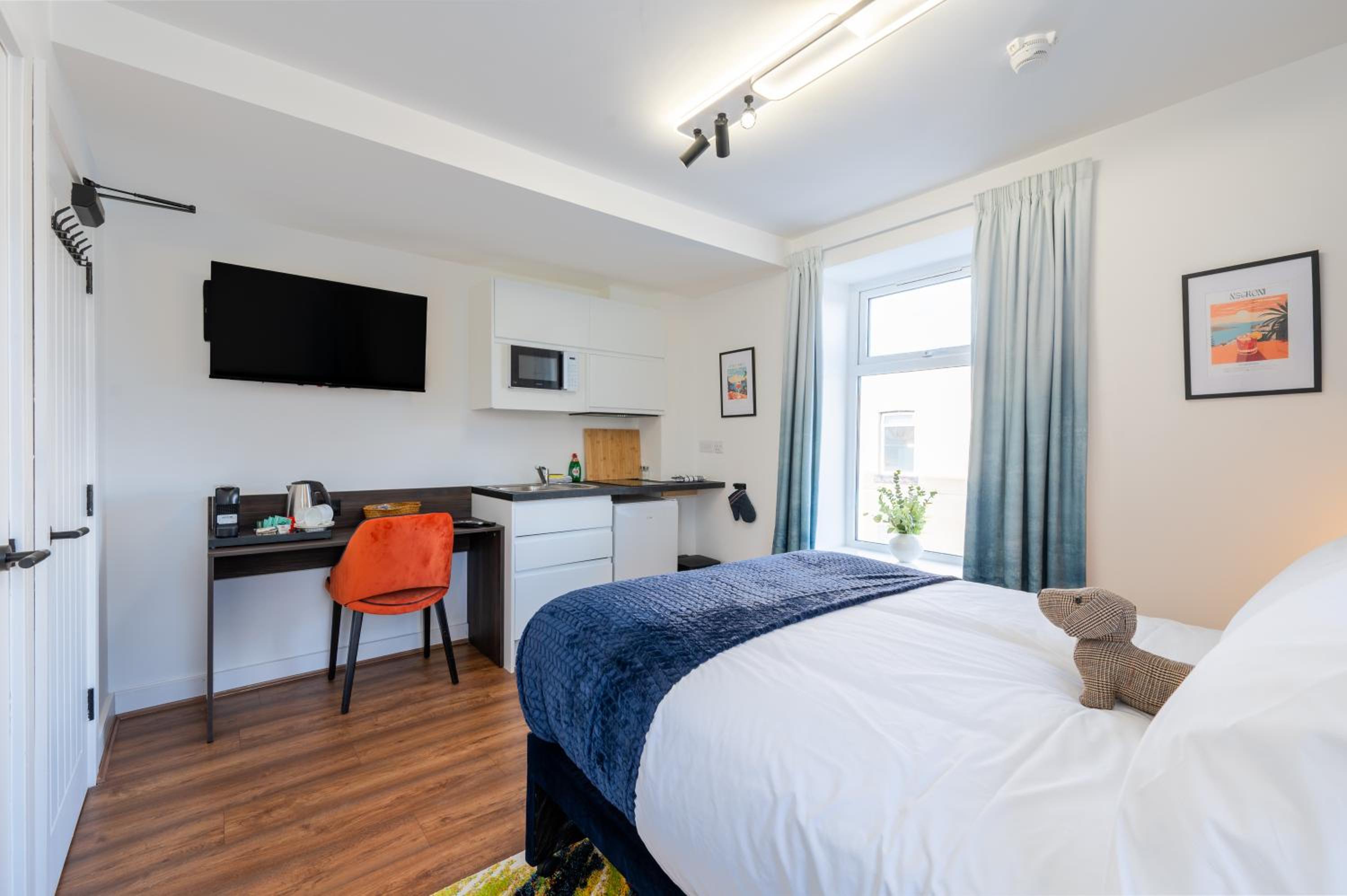 Home-Cooked Convenience: For guests who love to cook, our fully-equipped kitchenettes come complete with a microwave, coffee machine, and stovetop, making it easy to whip up your favorite meals at your convenience.