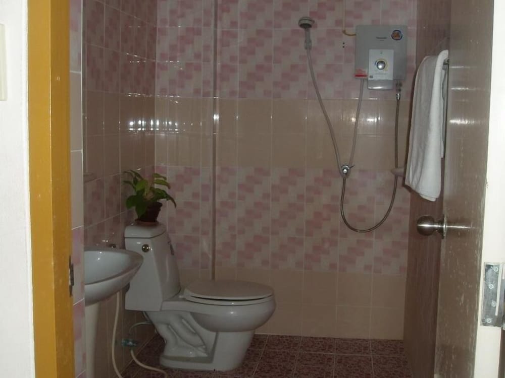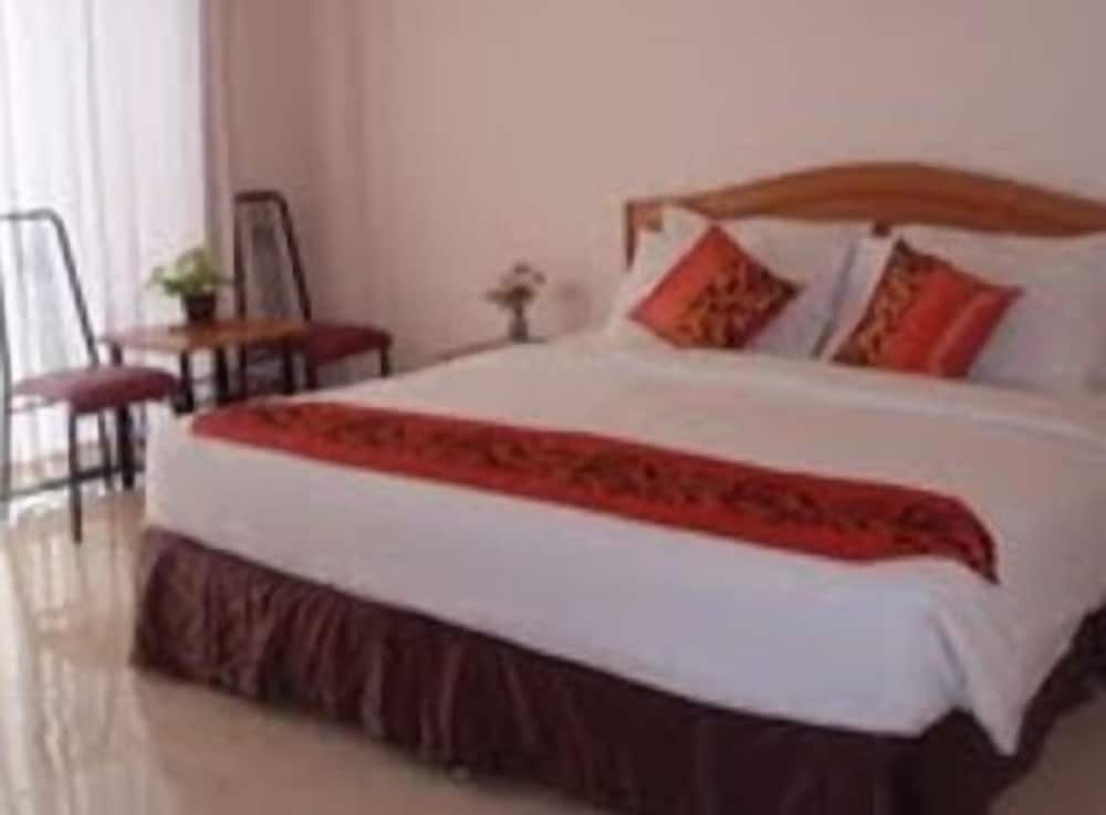 Hotellet ligger INTE där det visas på kartan. Med Tuk-tuk tar det ca 10 min till Ao Nang centrum. När vi kom fick vi välja på 2 rum, det vi valde var stort, enkelt och hade 1 queensize- och 1 kingsize-bed. rena lyxen. Hela hotellet var enkelt och städningen i allmänna utrymmen var sisådär. Badrummet innehöll en dusch där du står bredvid toaletten och duschar. Men det var rent på rummen och sängarna var bekväma. Frukosten var enkel, toast, ett stekt ägg, 2 små korvar, juice och pulverkaffe. Enkelt och hyfsat rent, billigt men ute i ingenstans.