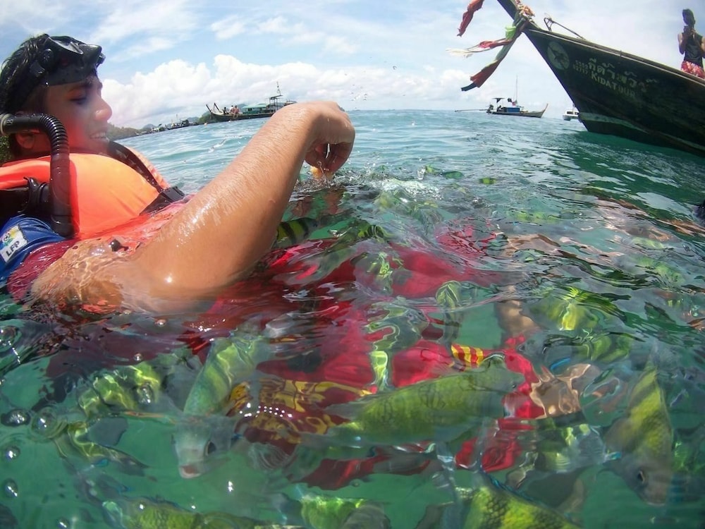 Kom från Krabi-flygplats till hotellet där vi spenderade tre nätter. Var en bit till au nangs huvudgata där allt hände på kvällen. Till stränderna var det också ganska långt. Lätt att ta sig framåt tillbaka med tuk-tuk, 100 baht per resa. Hotellet gav vad man betalade för. Inget varmvatten på vårat rum men rymligt och hade stor kyl. AC som kylde bra. Trevlig personal men tråkig frukost. Funkade fint som start ett par nätter, rekommenderar dock bungalows i Thailand om man vill leva halvsnålt men mysigt trots att de nuförtiden kostar lite.