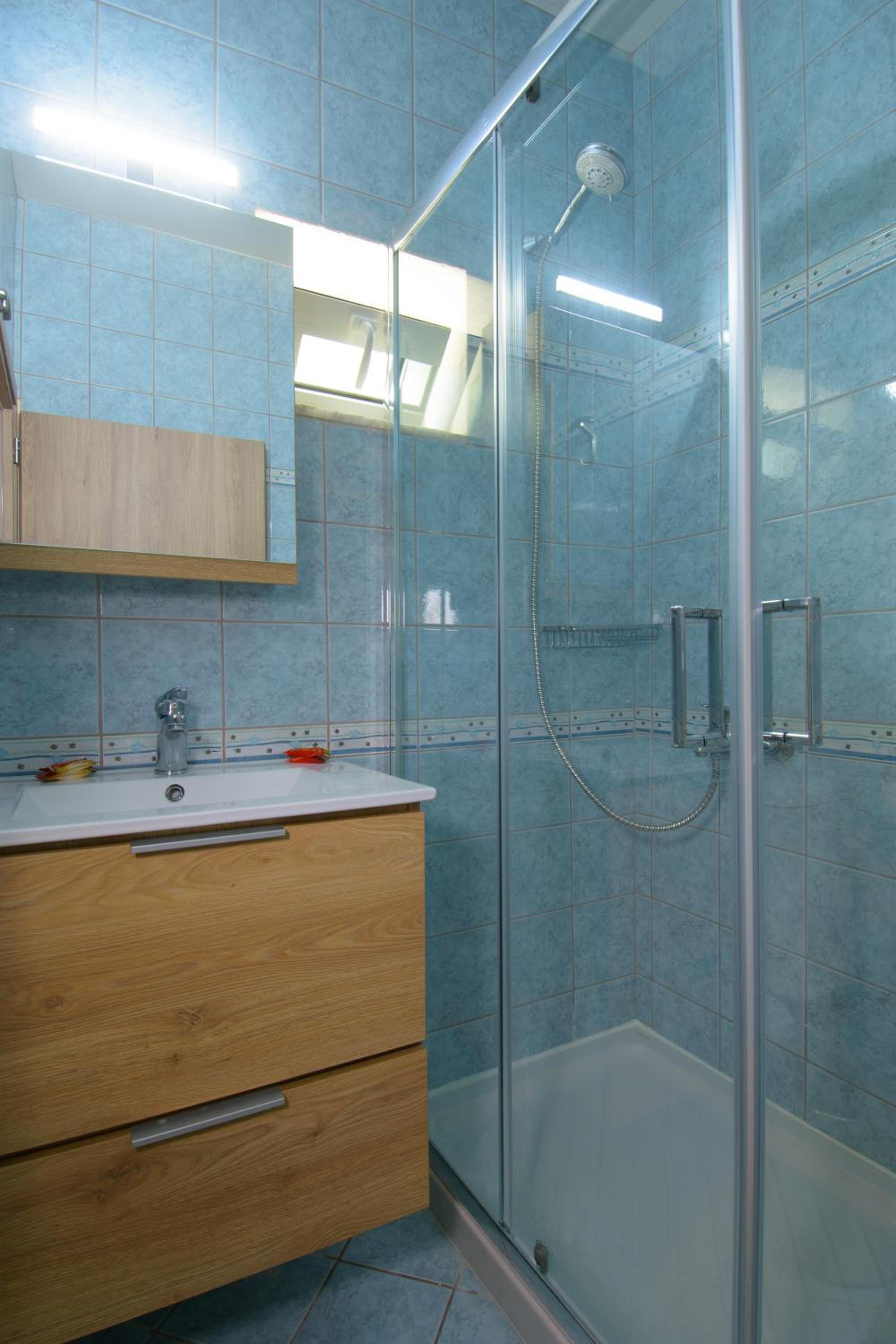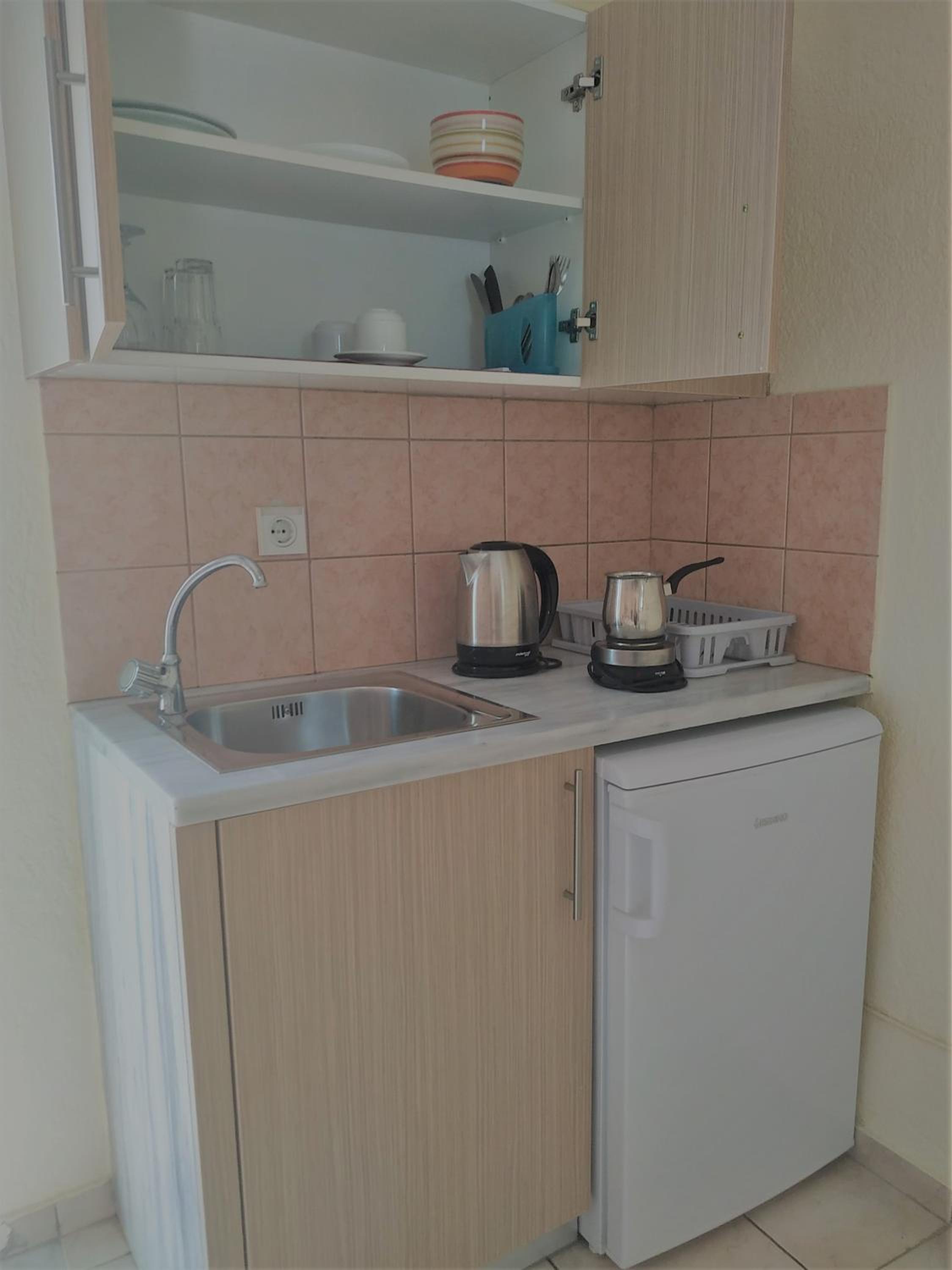 What a gem this is. Really nice size appartment with a large shower which does not flood everywhere. Good kitchen facilities & large comfy beds. The outside sitting area was a bonus. Maria our host was lovely & very helpful with restaurant recommendations, & places to visit. Opposite the property is a lovely sandy walk in beach, where the sea is so clean & warmest I swam in all of Crete, with free deckchairs. I can highly recommend this place.