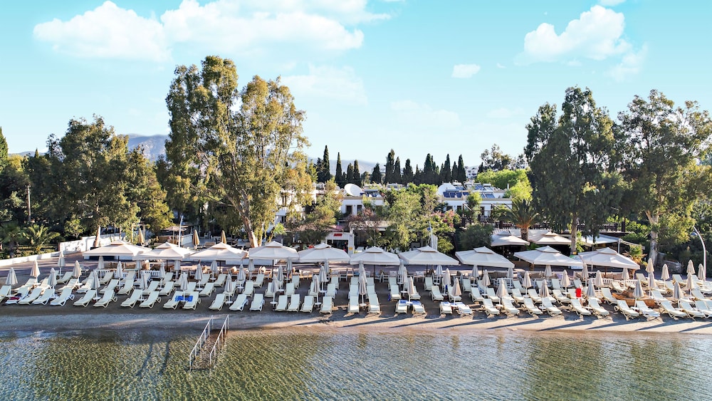 We had a wonderful stay at this hotel! The breakfast was fantastic, with a wide variety of both sweet and savory options. One of the highlights was the direct access to the beach, complete with comfortable sunbeds and umbrellas. The location is easily connected to Bodrum and Bitez via a public transport minibus. Everyone was incredibly welcoming and always available to help with anything we needed.