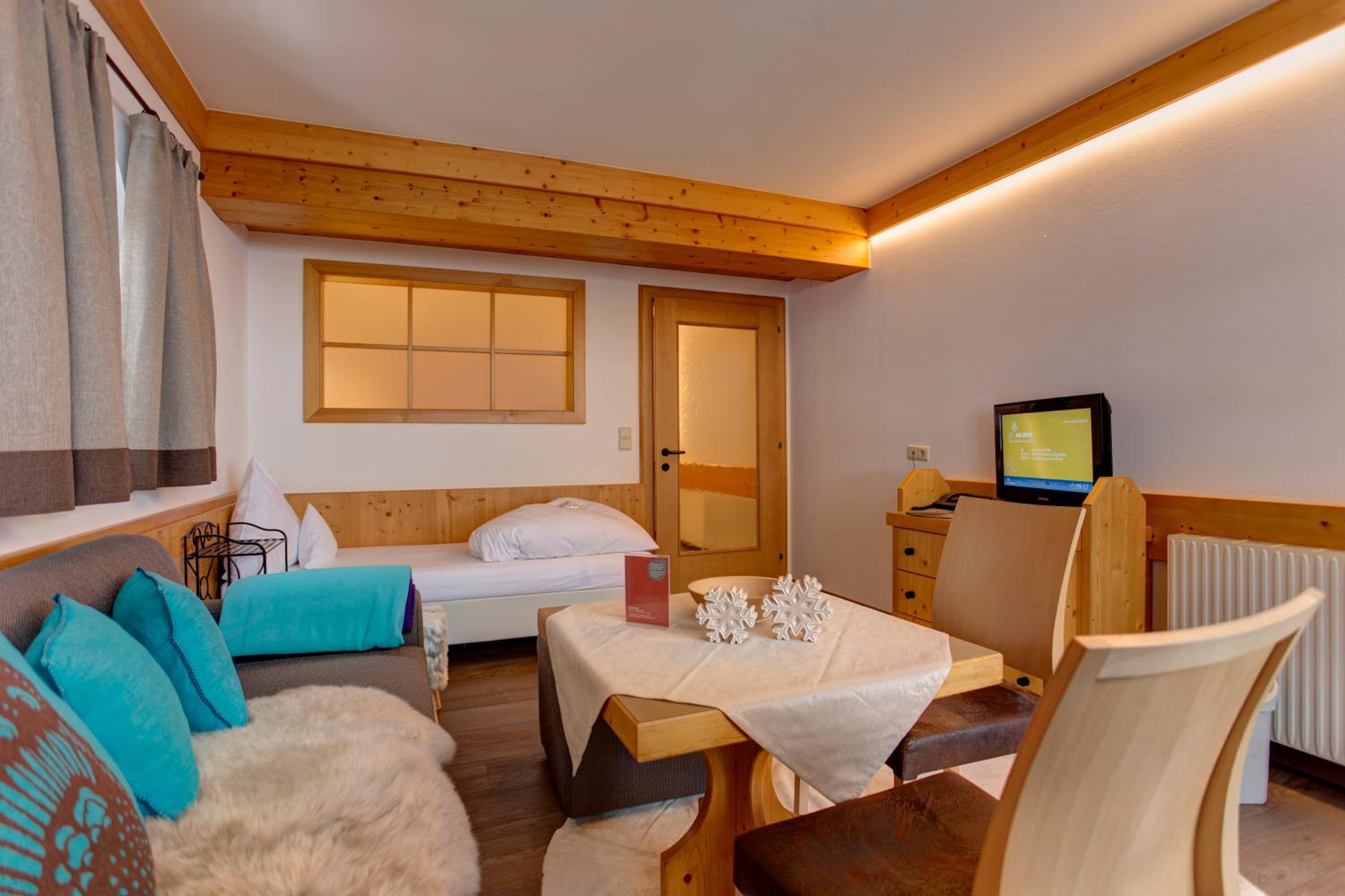 Avevamo la suite al quarto piano che era favolosa. Arredo di Tutto la struttura curata nel dettaglio ed in stile tirolese. Le ragazze della colazione molto gentili. L colazione che costa 18 euro a persona è strepitosa . Formaggi ottimo, torte fatte in casa addirittura erano presenti 3 diversi tipi di integratori effervescenti. La simpatia della proprietaria non spicca ma questo non incide sul voto della struttura .