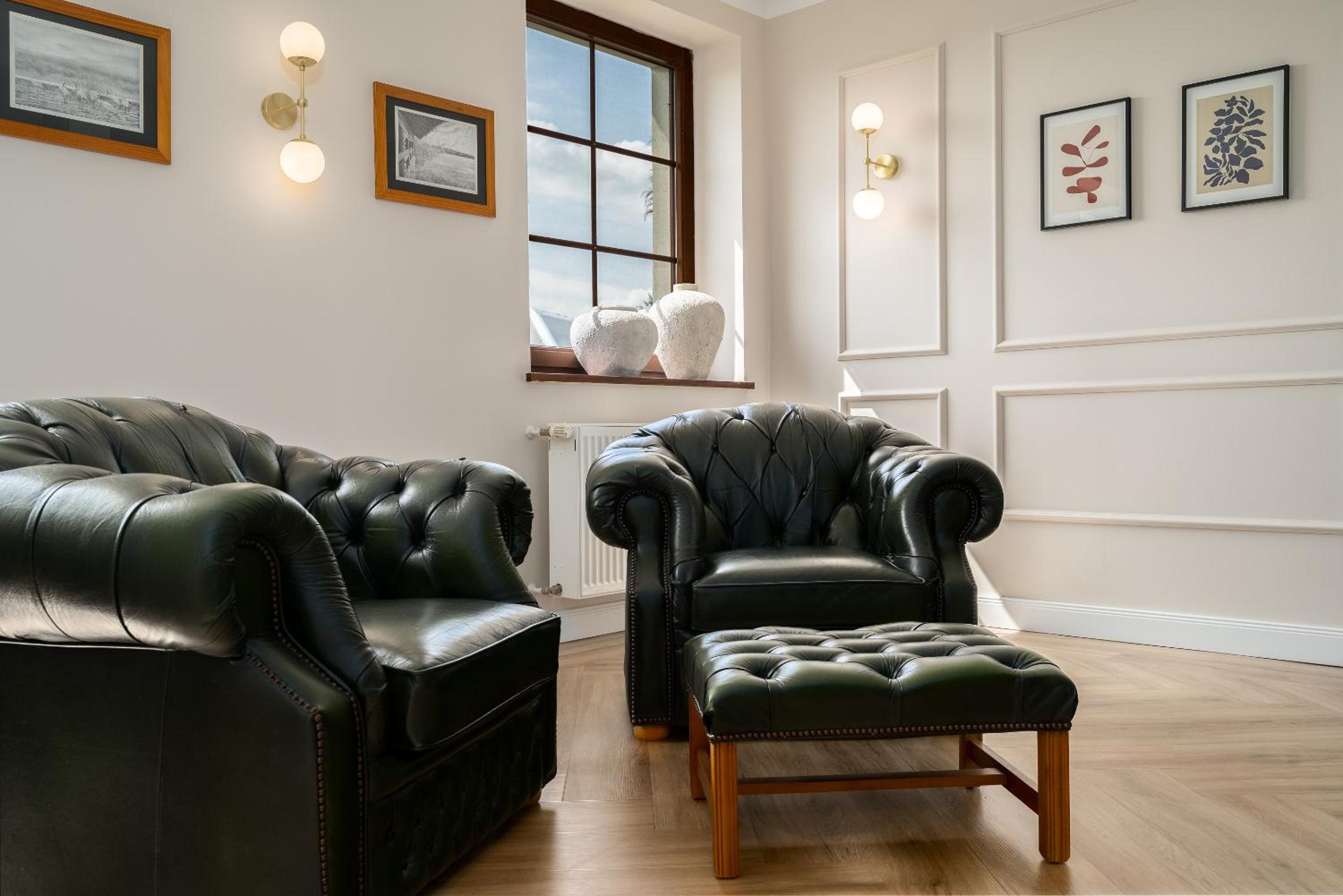 Scenic Views: Enjoy modern rooms with panoramic windows overlooking the serene garden and pond.