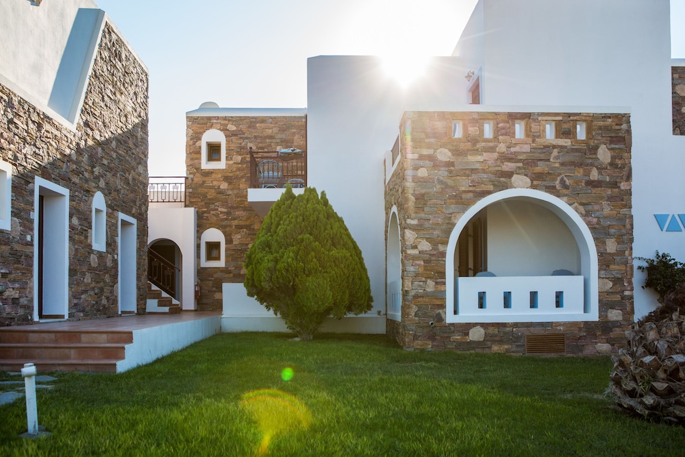 Most relaxing stay at the quiet end of Plaka. Well run hotel. The most beautiful beach for swimmers! We were fine here for three nights without a car. The bus runs from the port and stops right in front of the hotel. Multiple places to rent sunbeds on the beach and tavernas within walking distance.