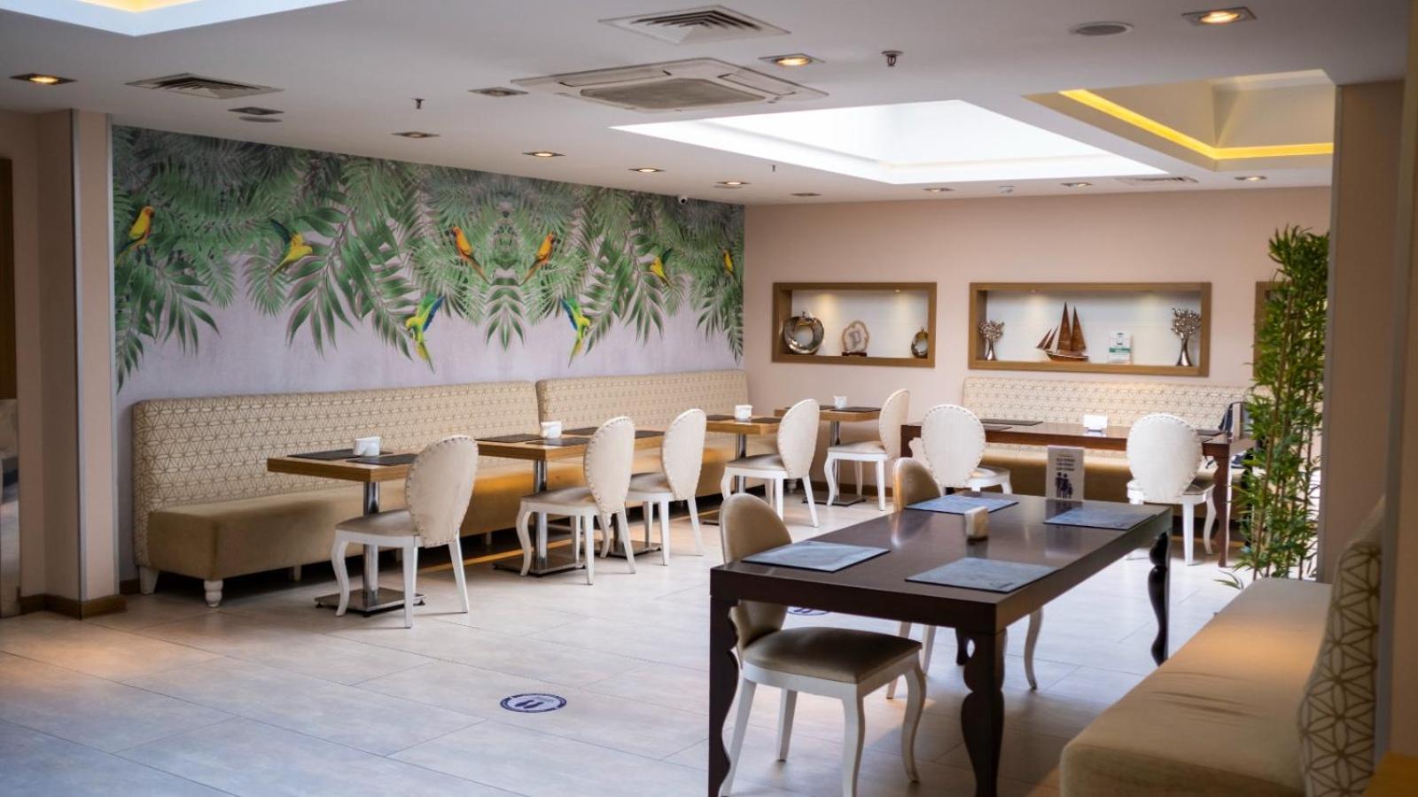Indulge in traditional Turkish and international cuisine at the on-site restaurant and unwind with a drink at the stylish bar. Benefit from 24/7 staff availability, tour desk, car rental, and dry cleaning services.
