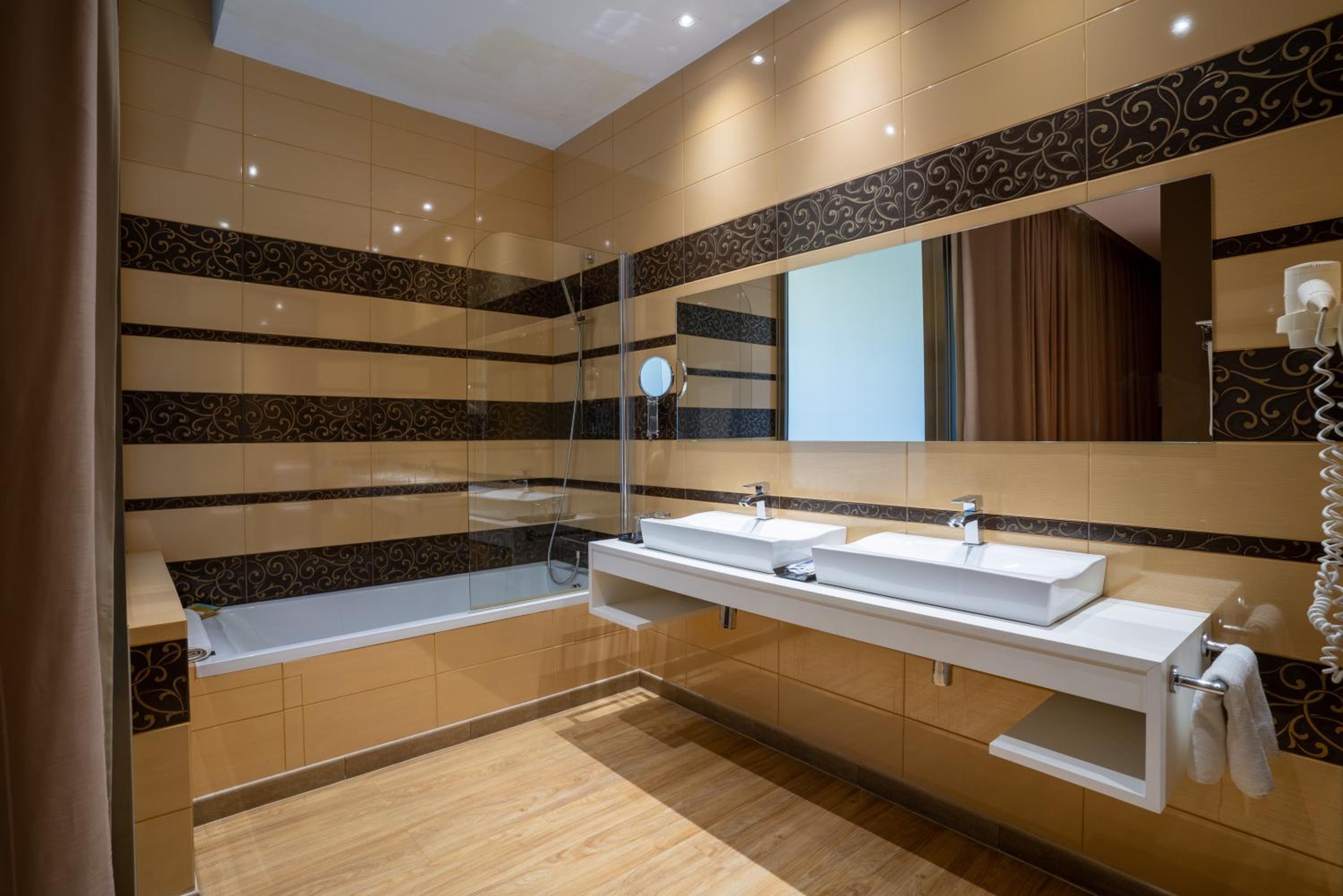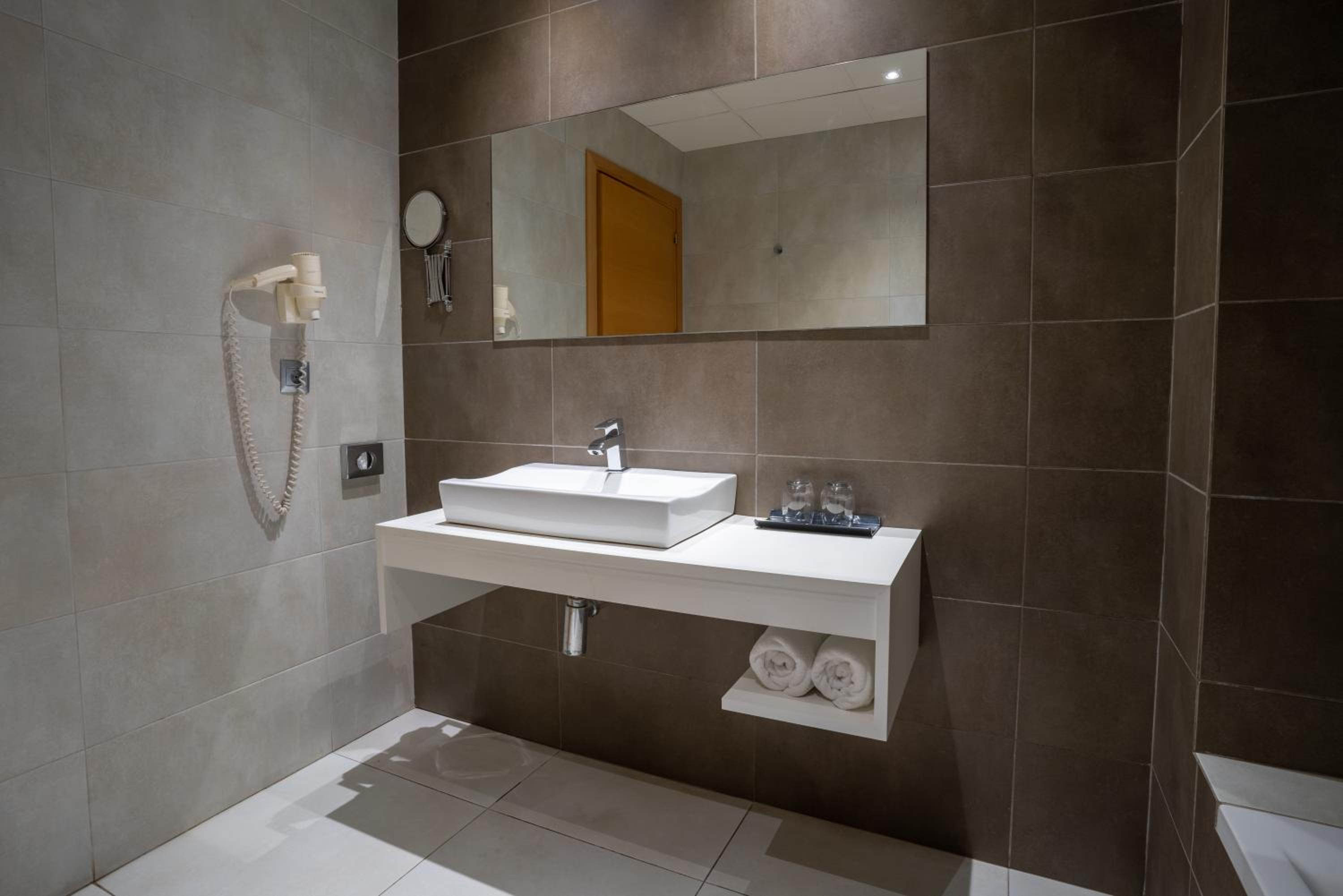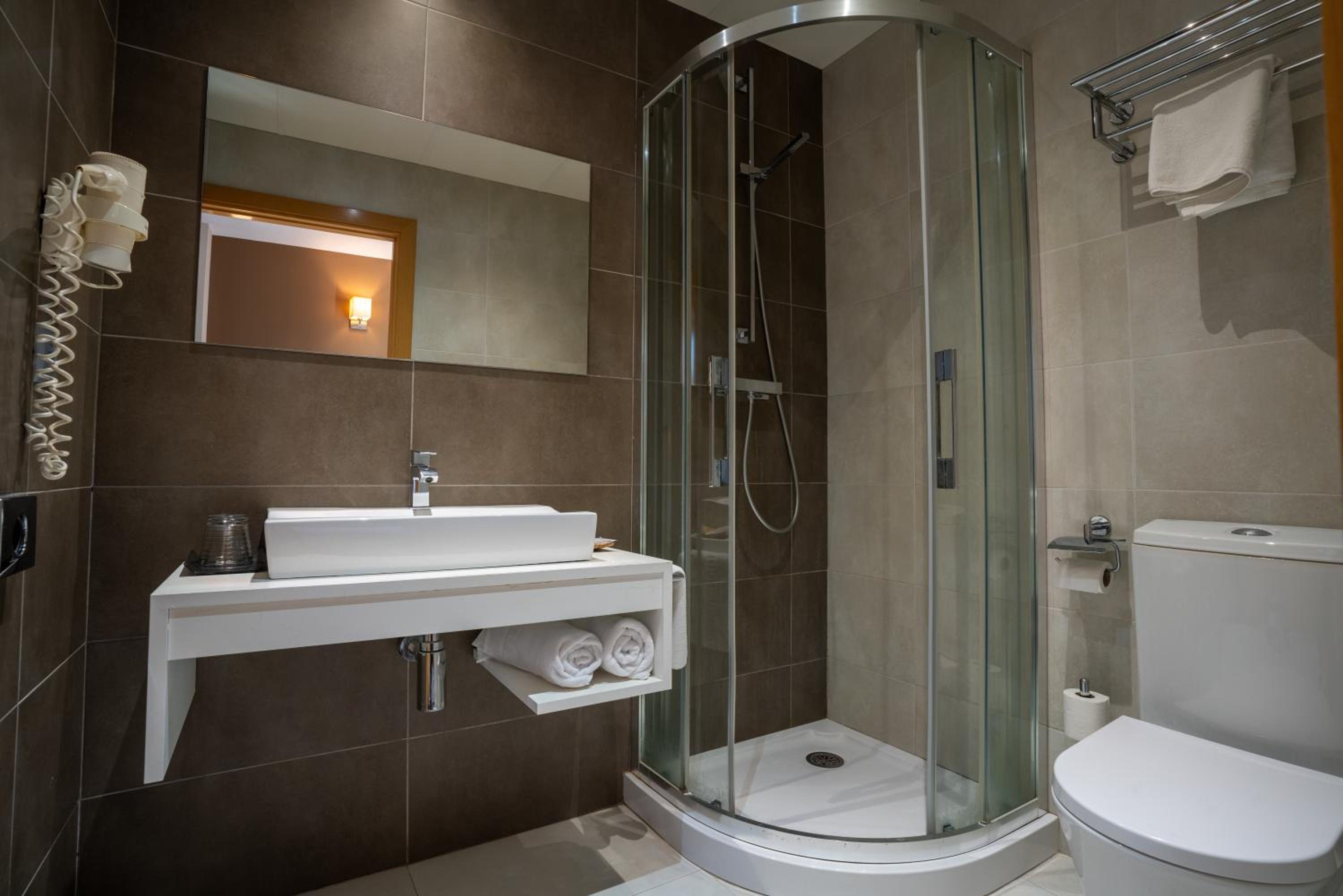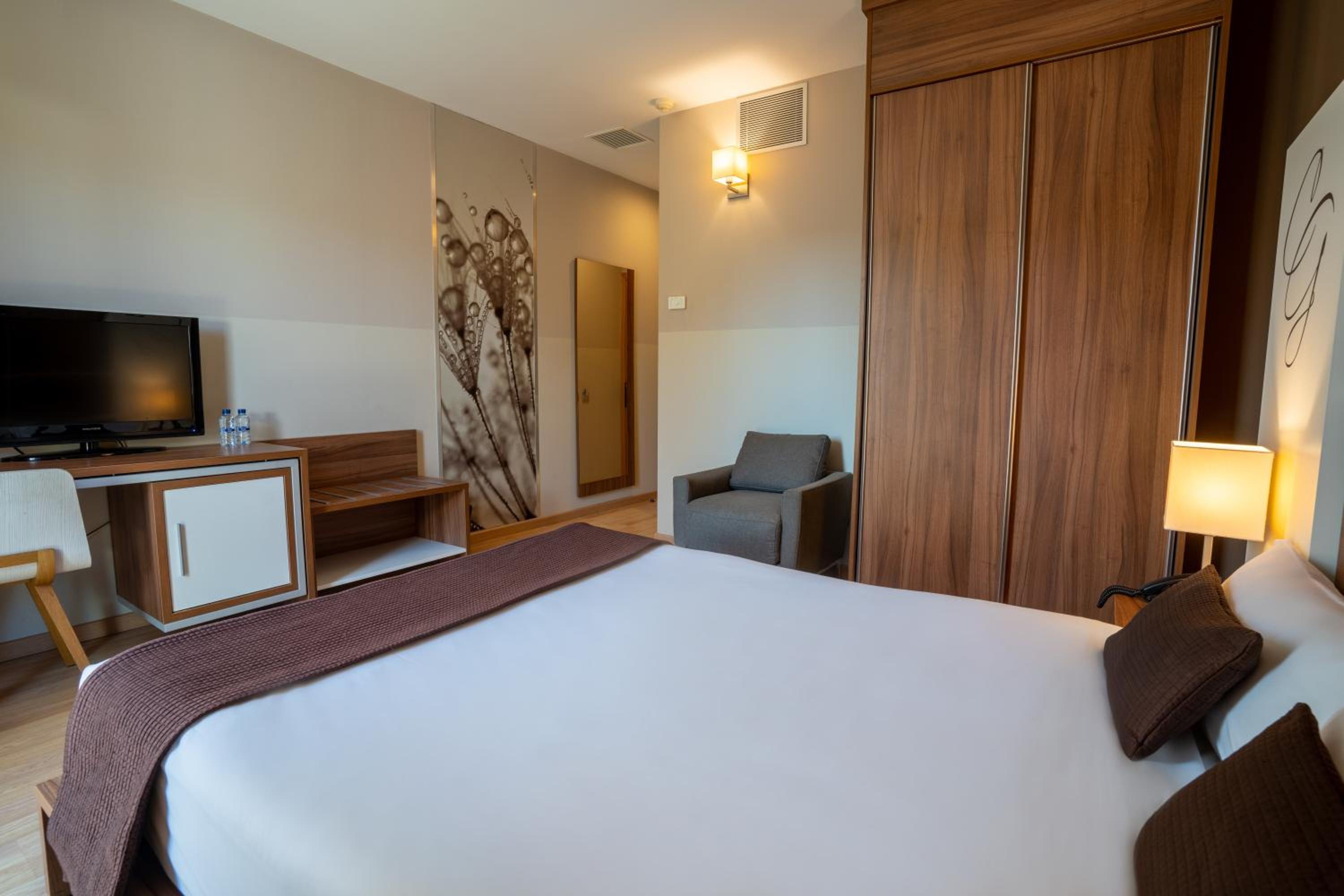 Each air-conditioned room features contemporary décor with wooden and chrome finishes, creating a stylish and comfortable ambiance. Guests can enjoy free Wi-Fi, a TV, and a minibar in every room, ensuring a convenient and relaxing stay.