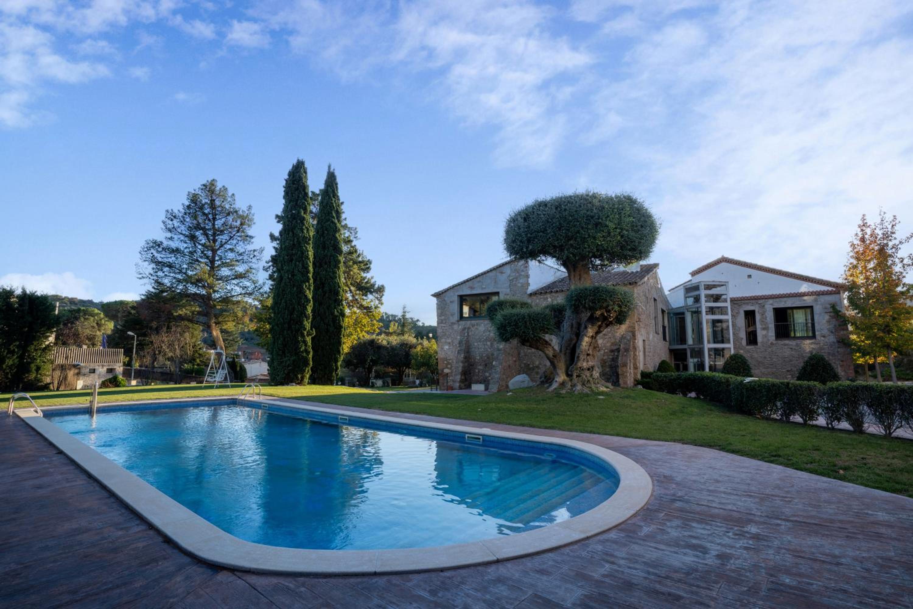 Hotel Golden Barcelona offers chic rooms with stunning views of the outdoor pool and Sierra Litoral Mountains. The picturesque setting in Vallromanés, surrounded by forest and gardens, provides a tranquil escape for guests.